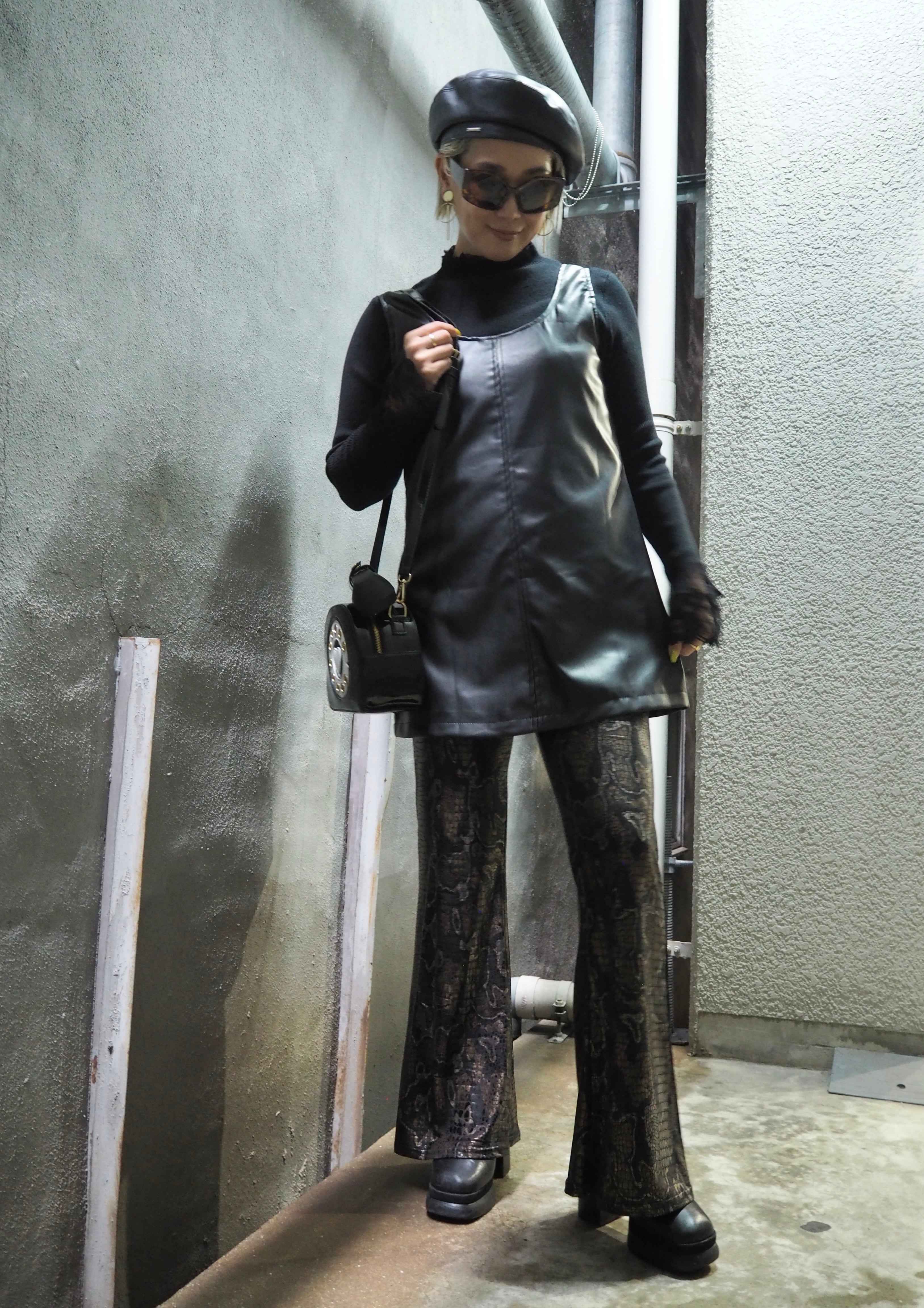 eco leather jumper mini one-piece ワンピース ワンピ ミニワンピ ジャンパースカート エコレザー 合皮 黒 ブラック