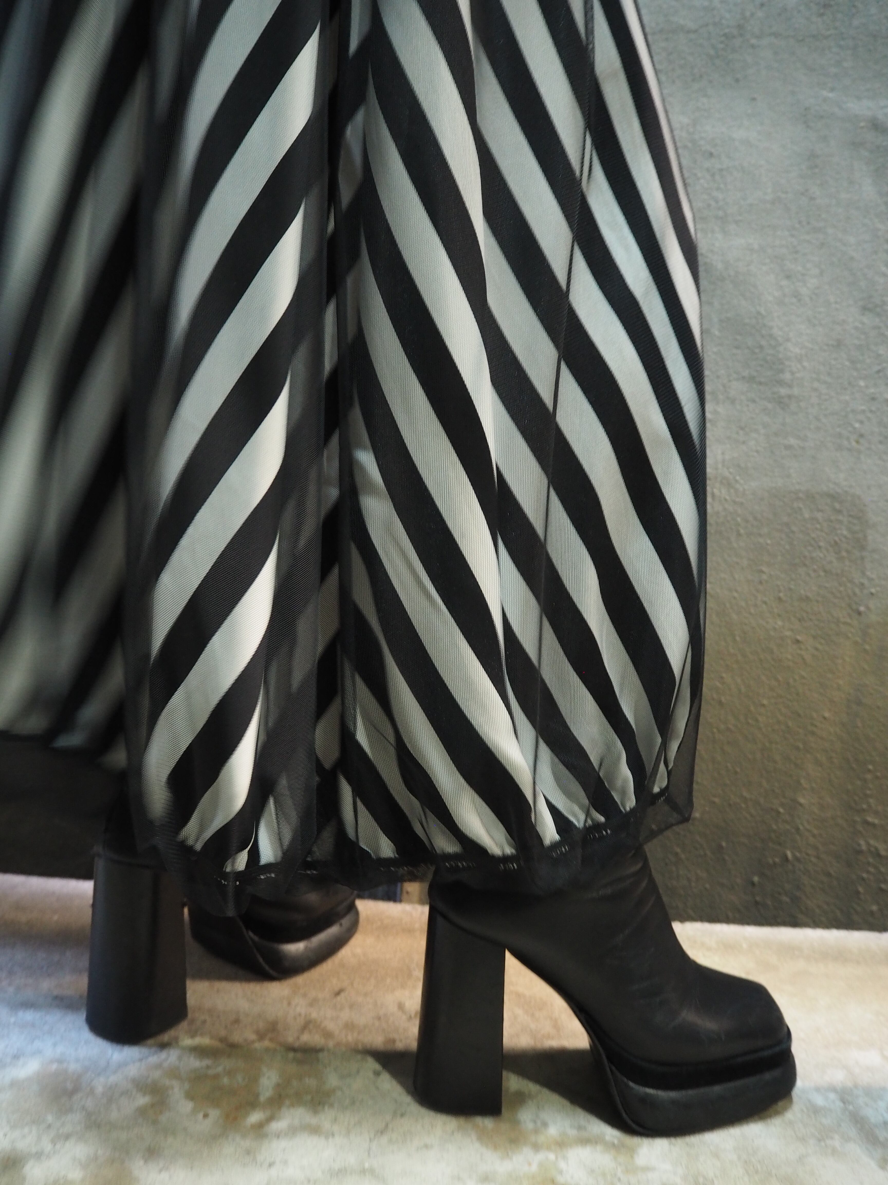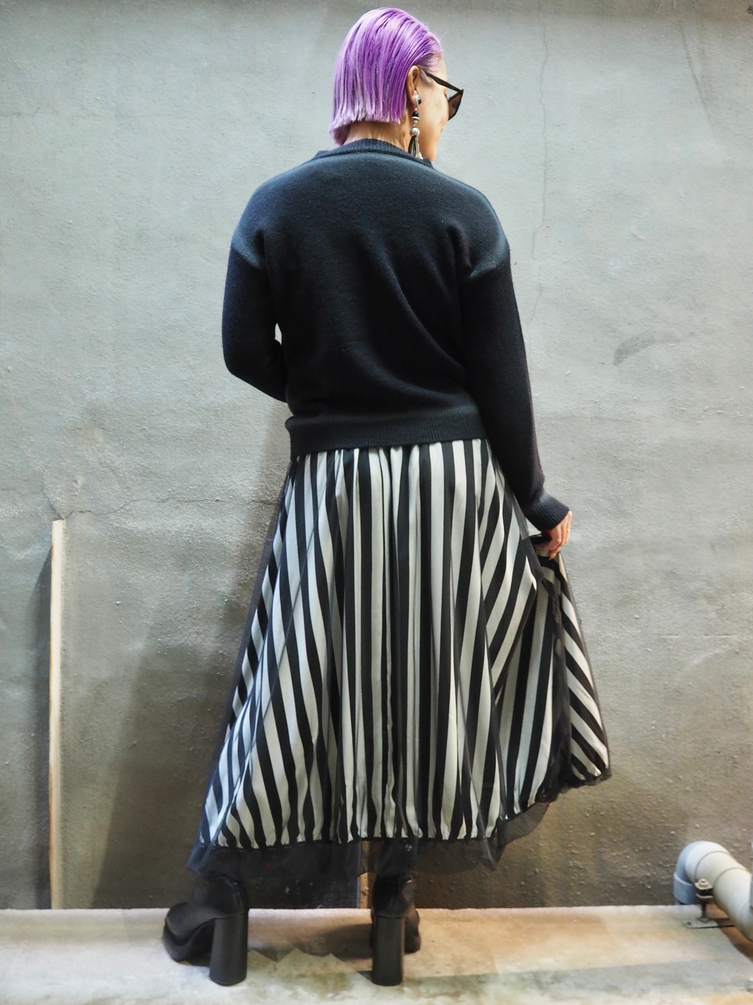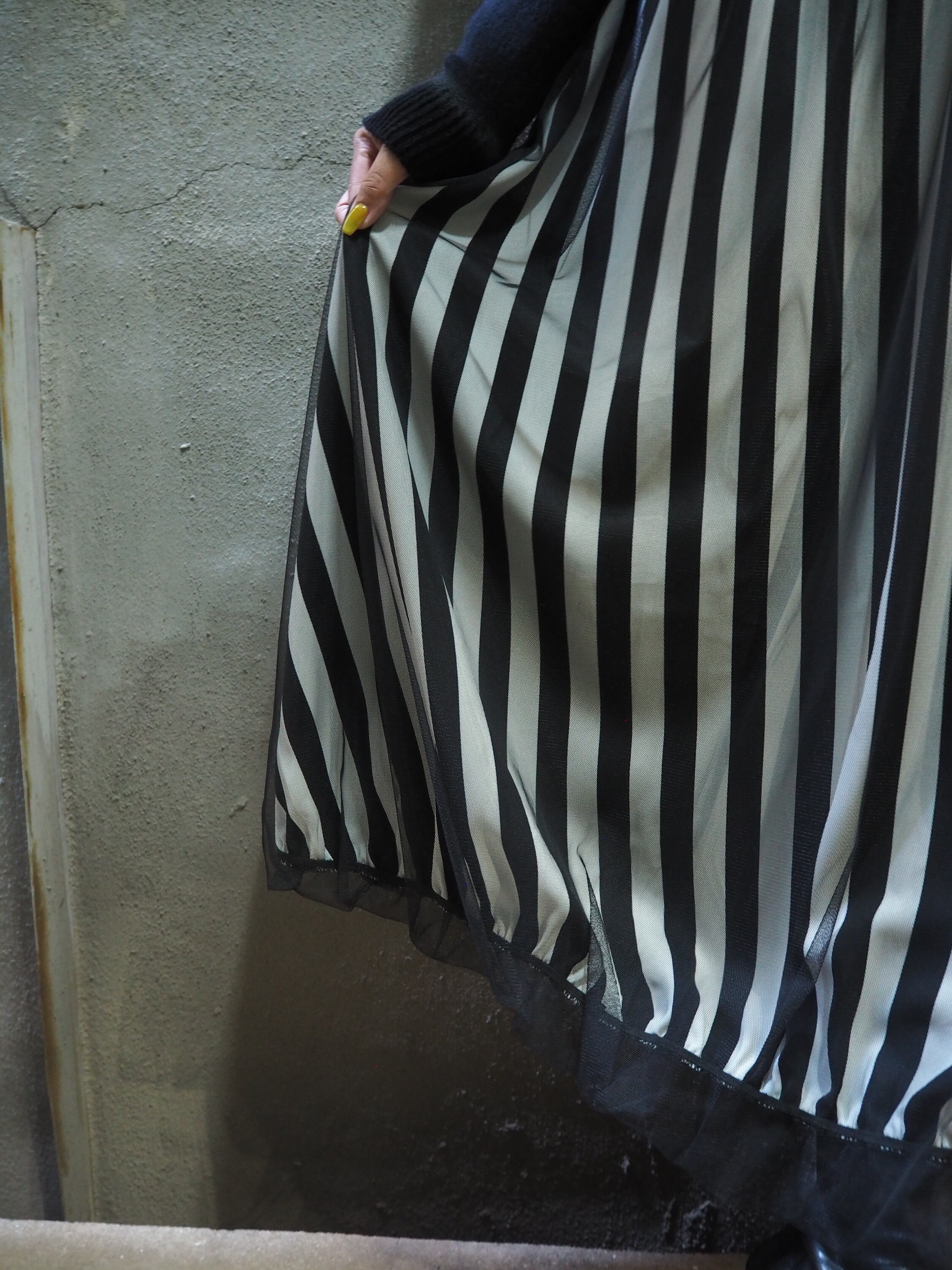 tulle mesh cover × print balloon skirt スカート バルーン チュール メッシュ カバー ゴムウエスト ドット ストライプ ウェーブ