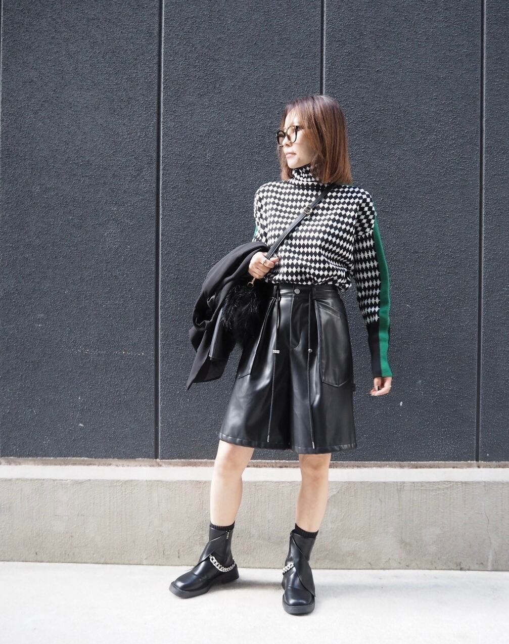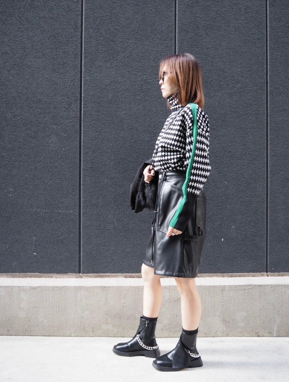 high neck × line sleeve design jacquard knit tops トップス ニット ハイネック ジャガード ライン入り 柄ニット 肌触り 着心地