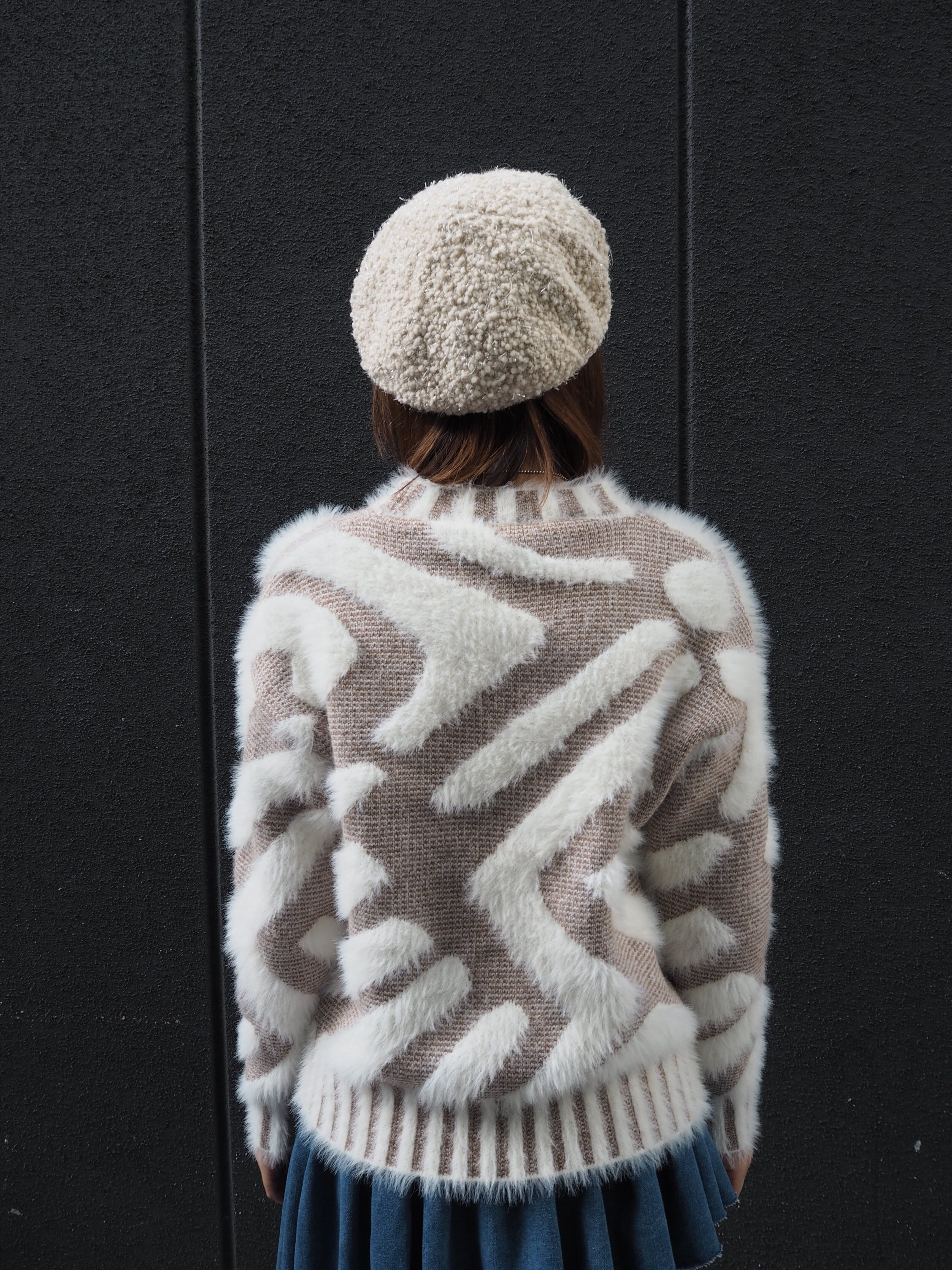 shaggy jacquard knit tops sweater トップス ニット セーター シャギー 柄ニット