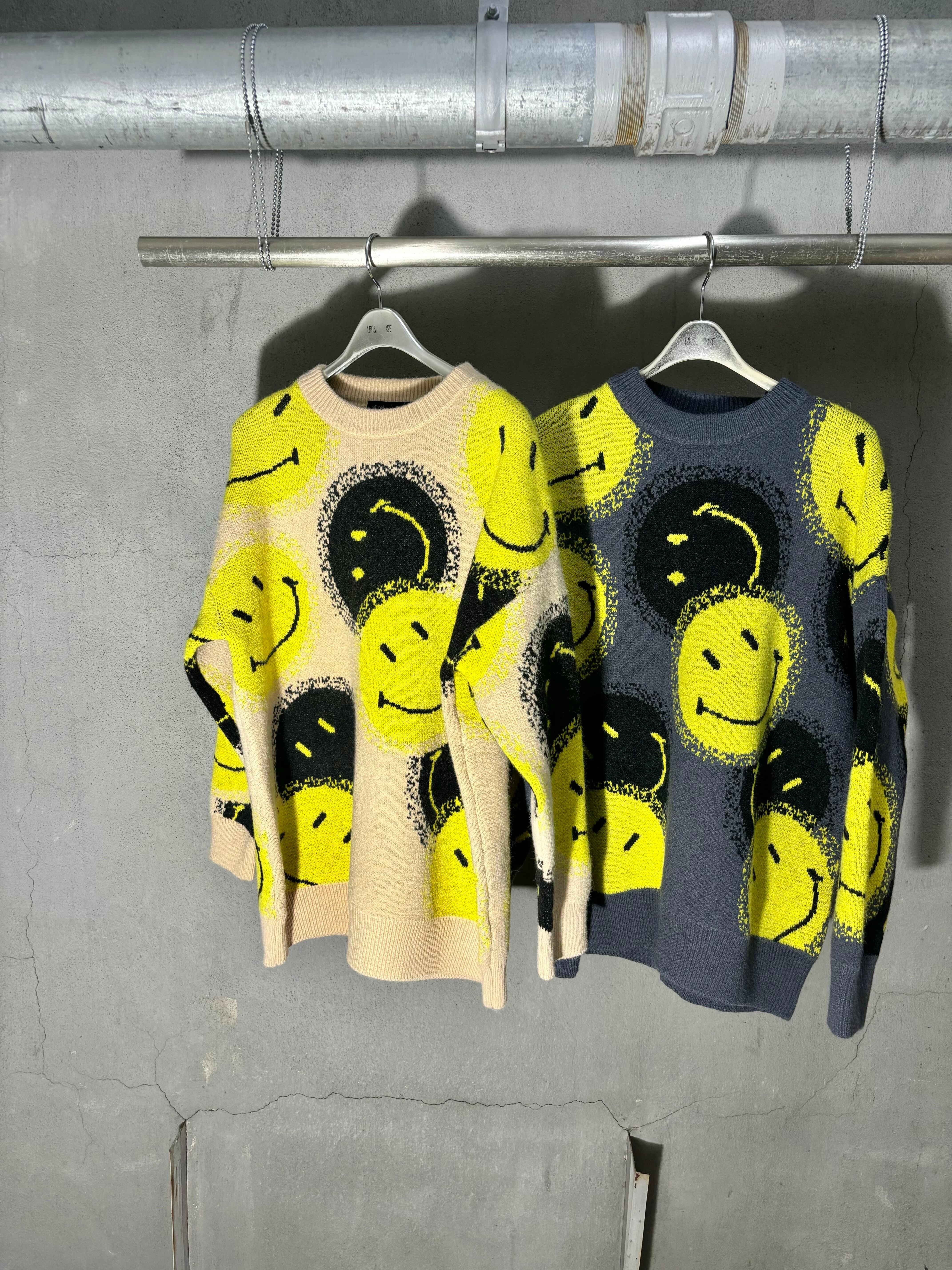 big smiley knit tops sweater ニット トップス セーター スマイリー ニコちゃん