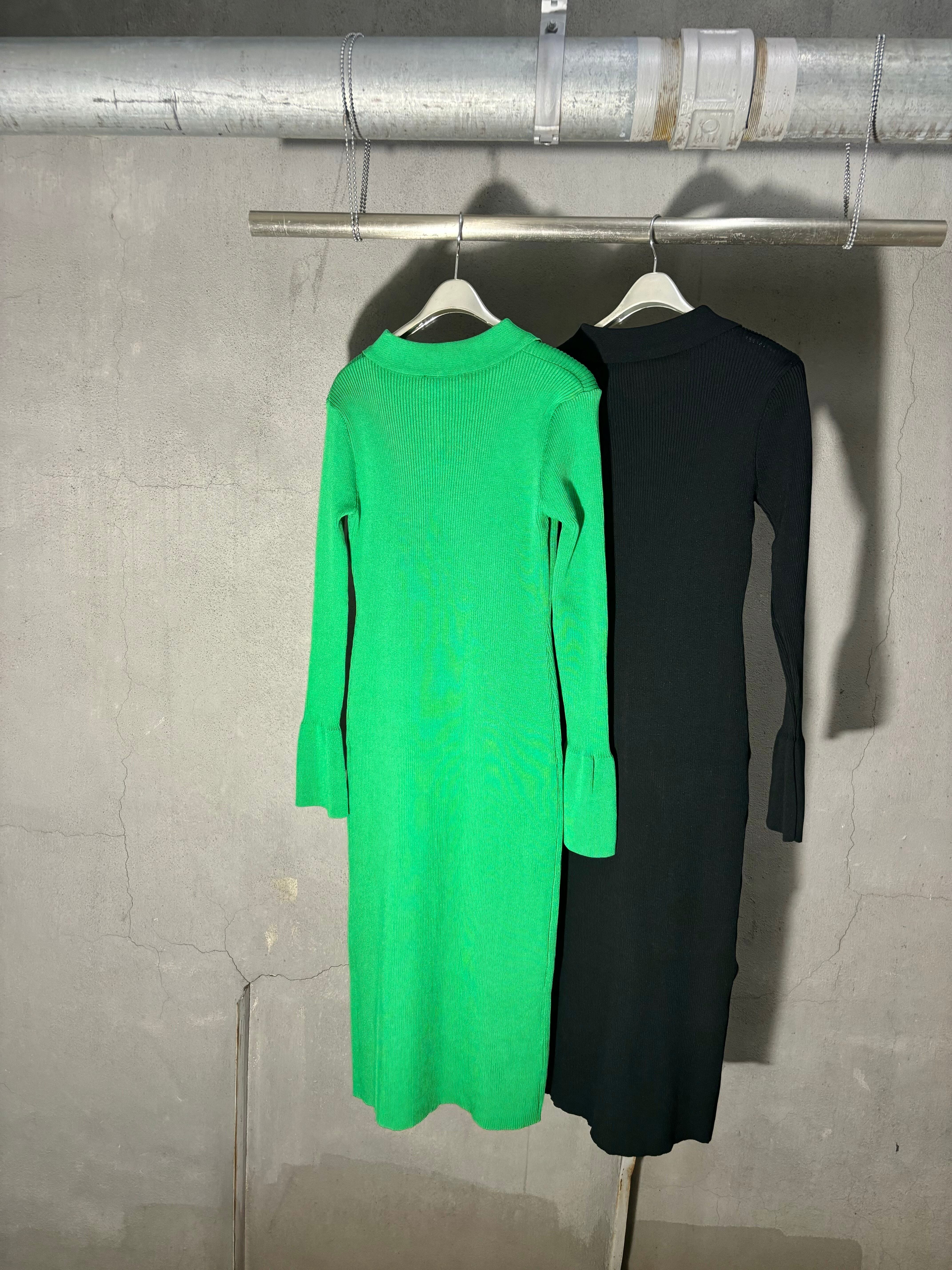 tight fit knit one-piece ニット ワンピース タイトワンピ 細身 襟付き