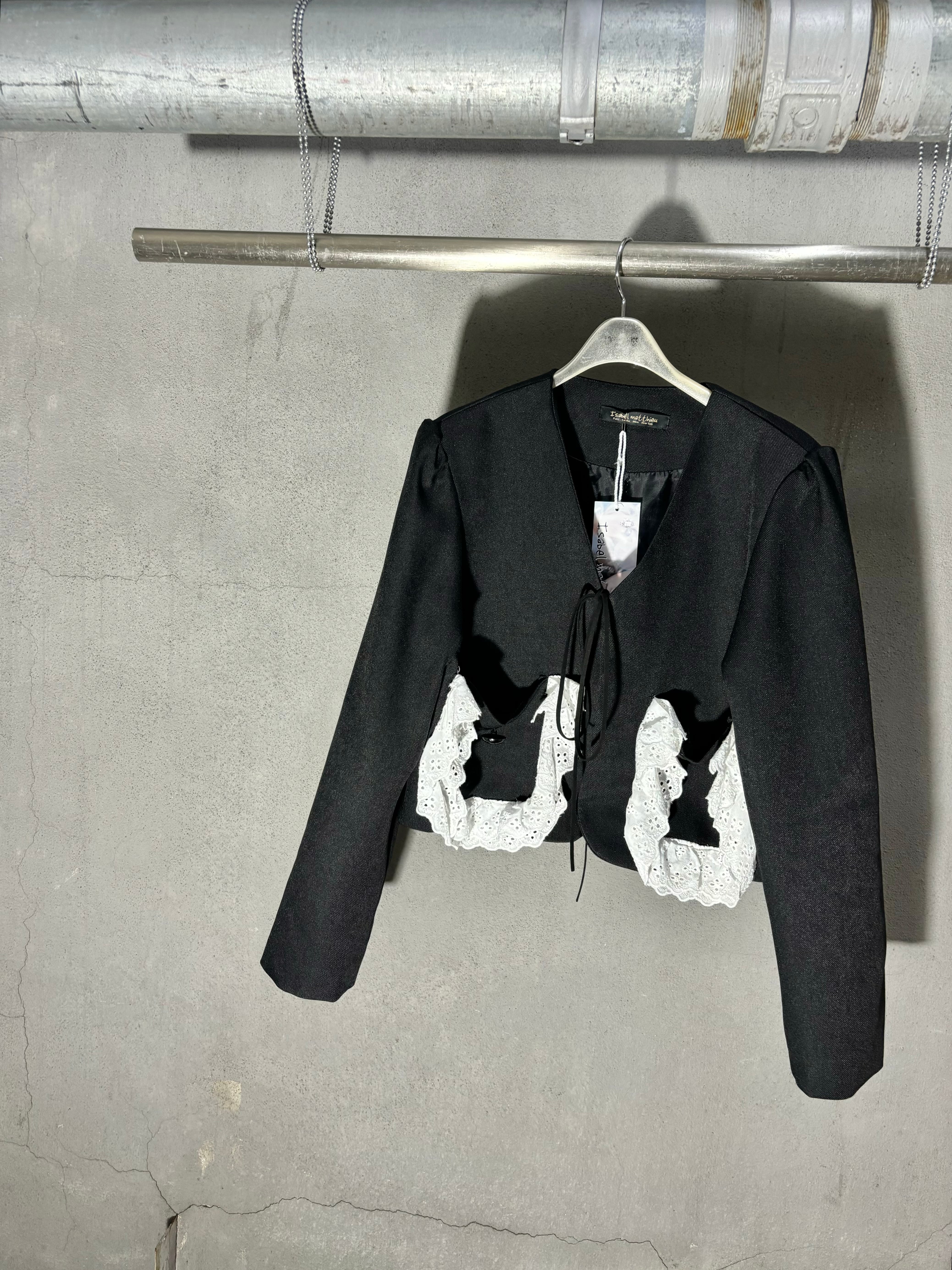 bi-color frill pocket design jacket ジャケットショート丈 レース ポケット 白黒 バイカラー