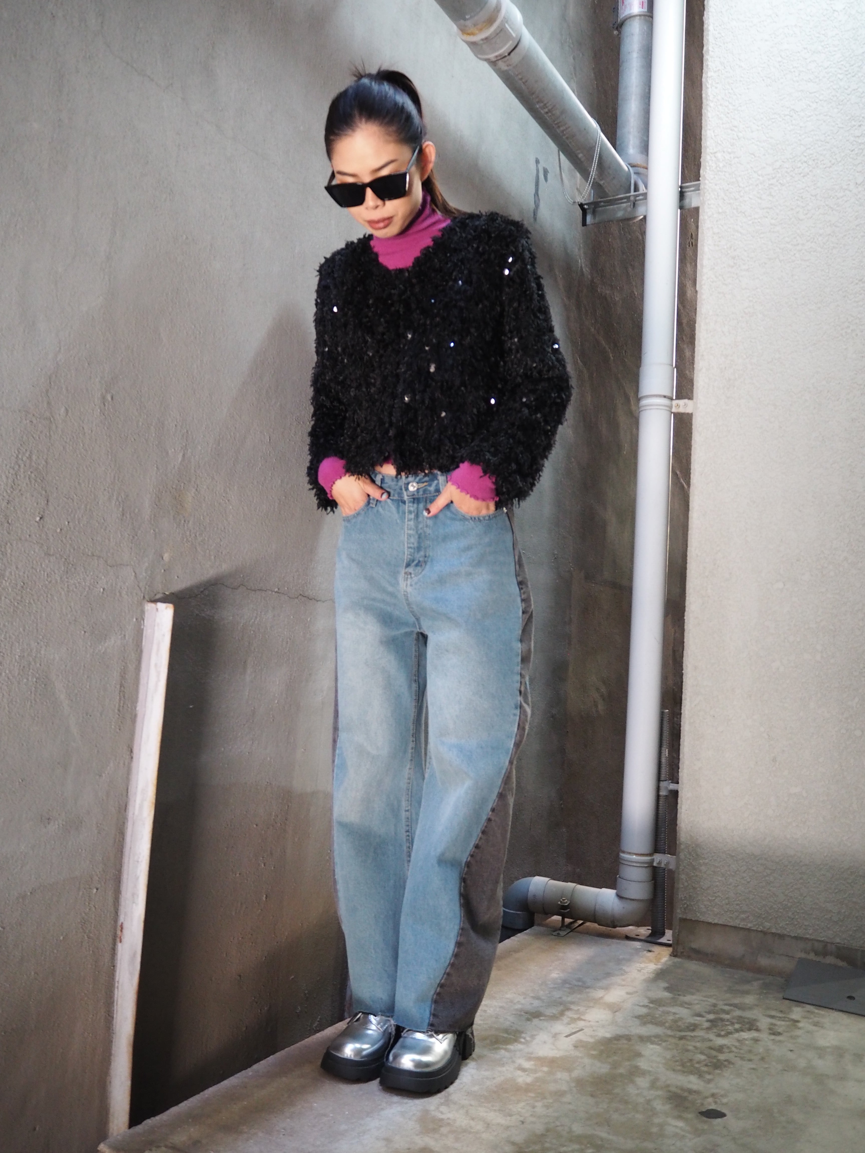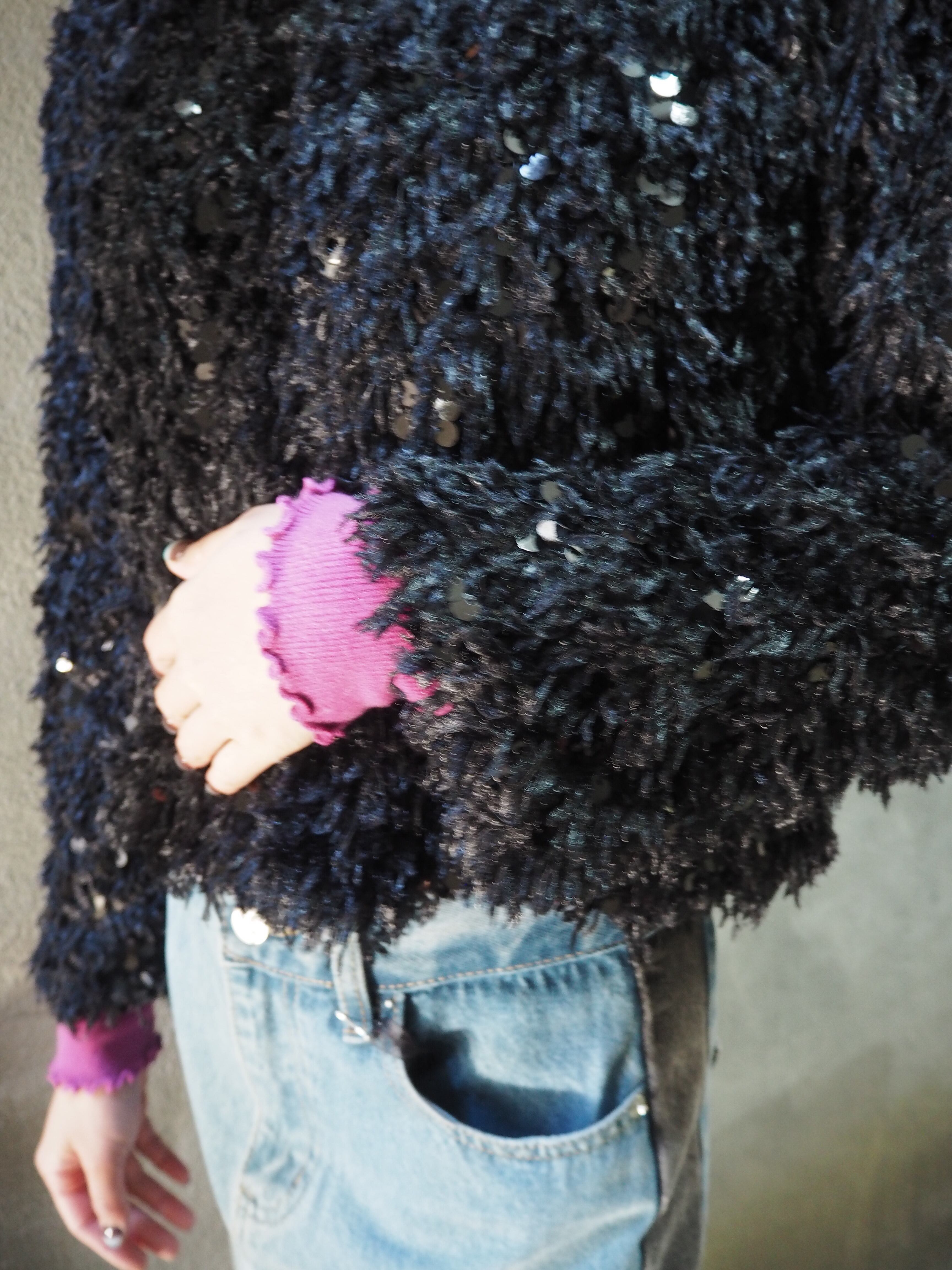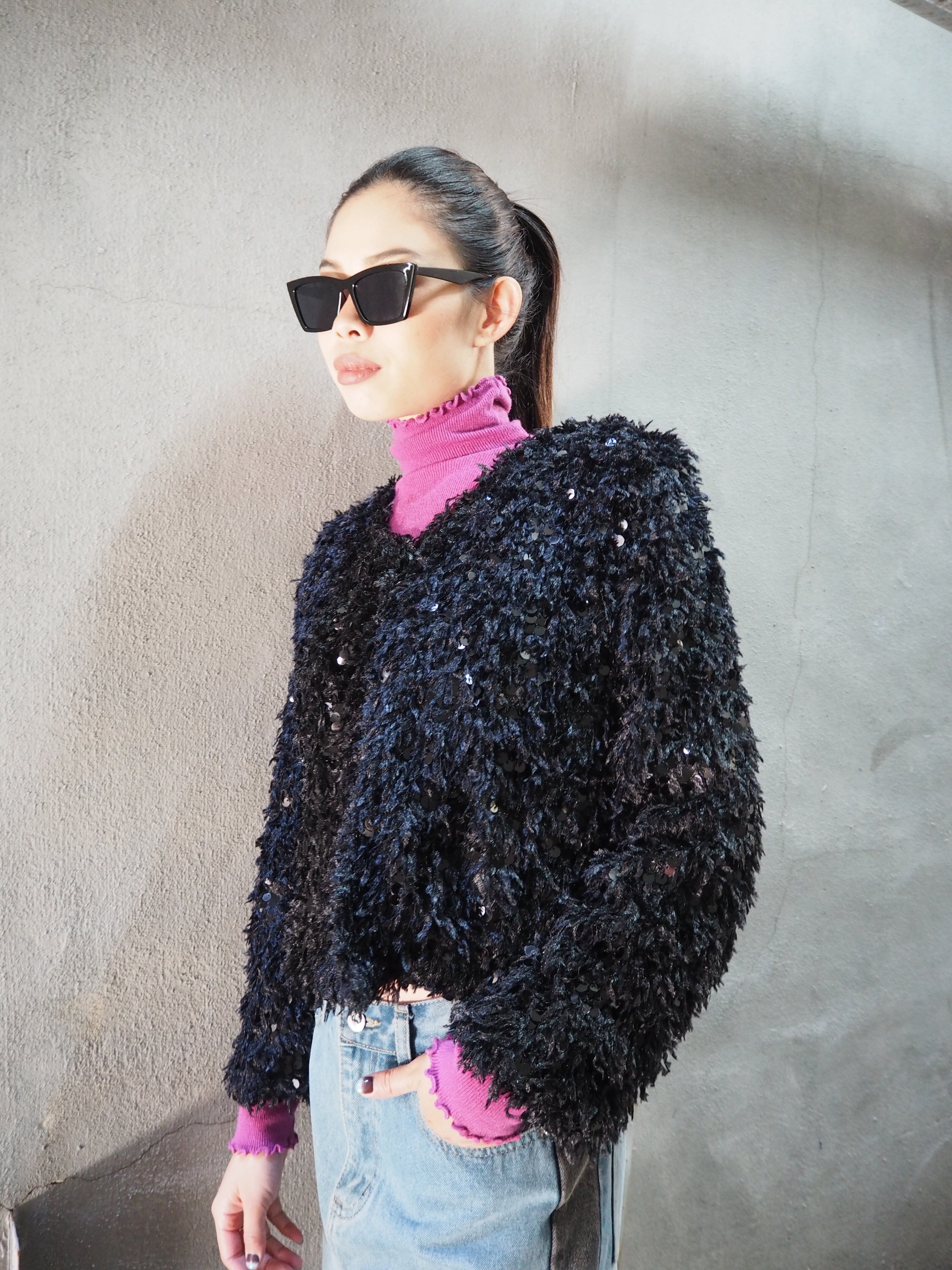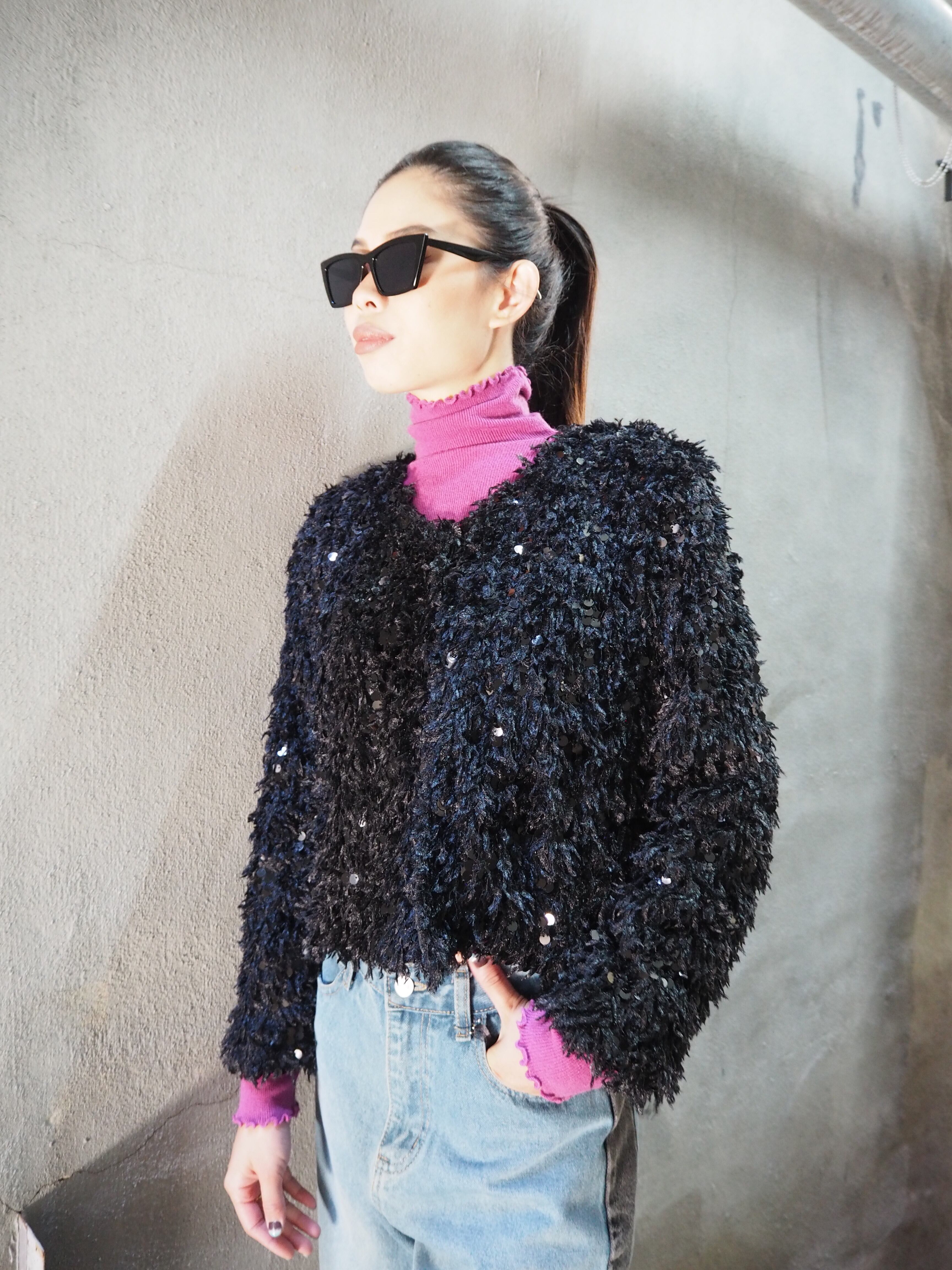 spangle shaggy short jacket ジャケット シャギー スパンコール ブラック 黒 キラキラ