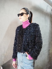 キラキラと輝くスパンコールが魅力のシャギーショートジャケット!