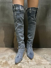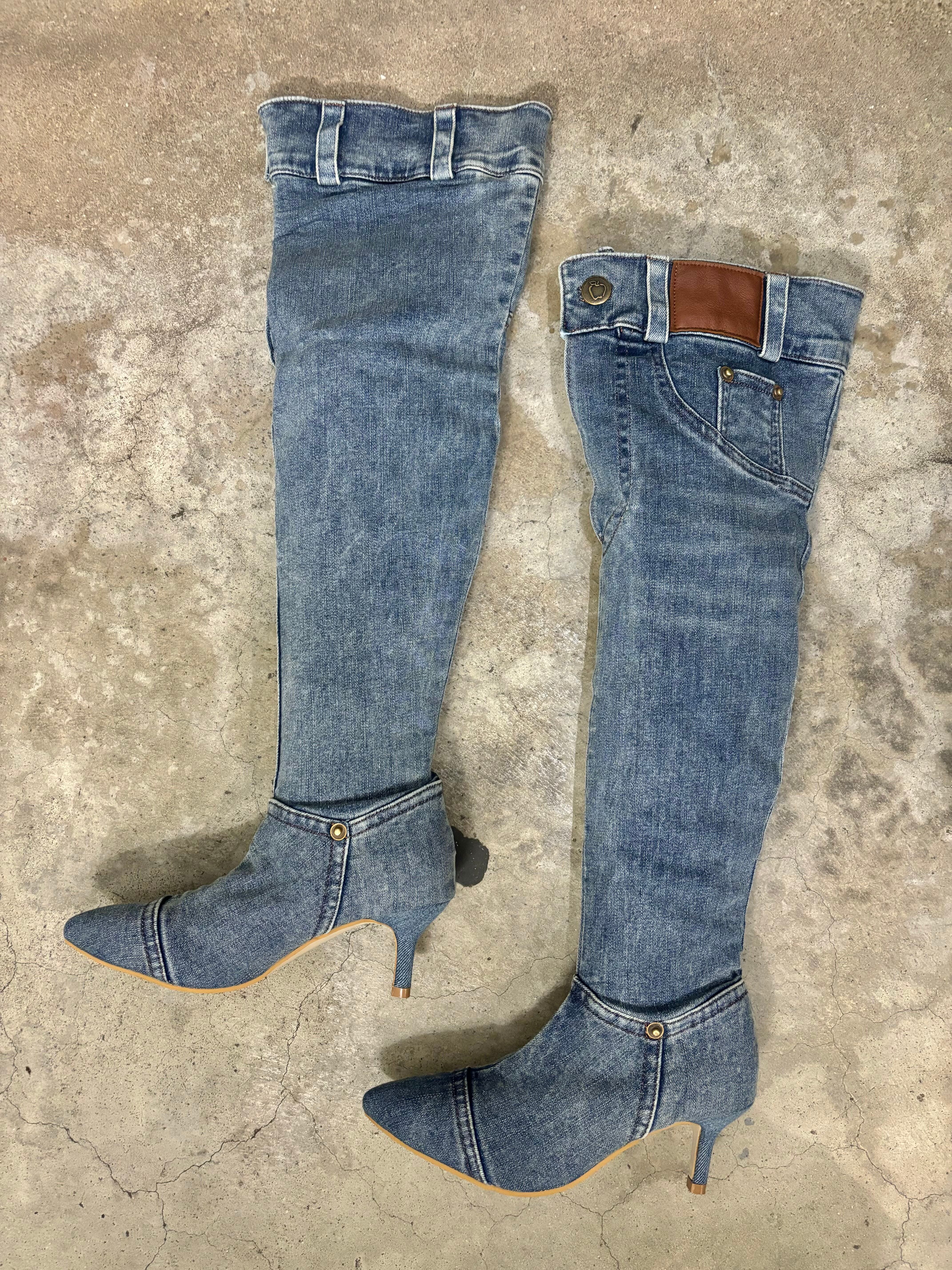 【再入荷】pin heel denim knee high boots ブーツ ロングブーツ ニーハイブーツ デニム ピンヒール ポインテッドトゥ