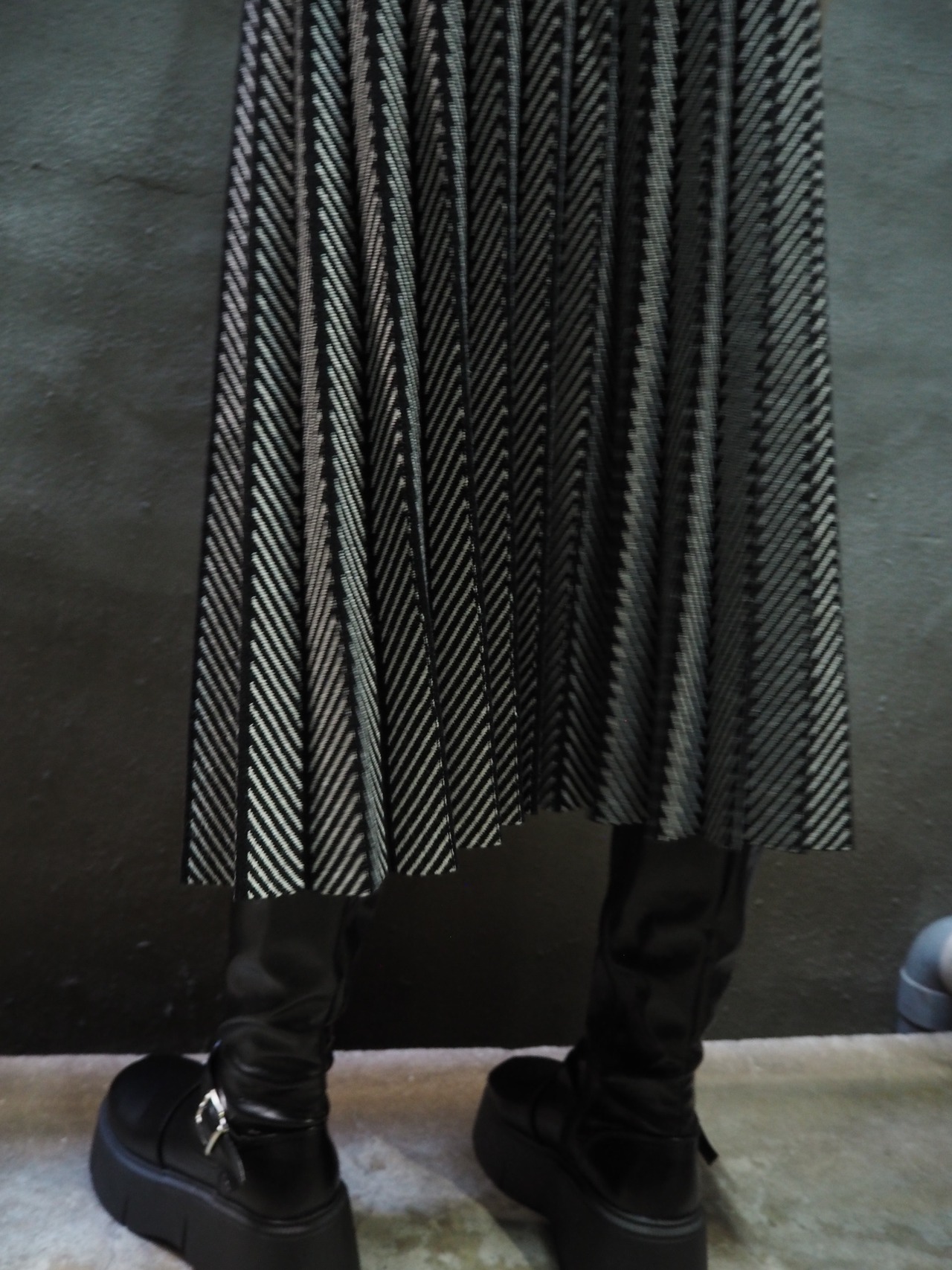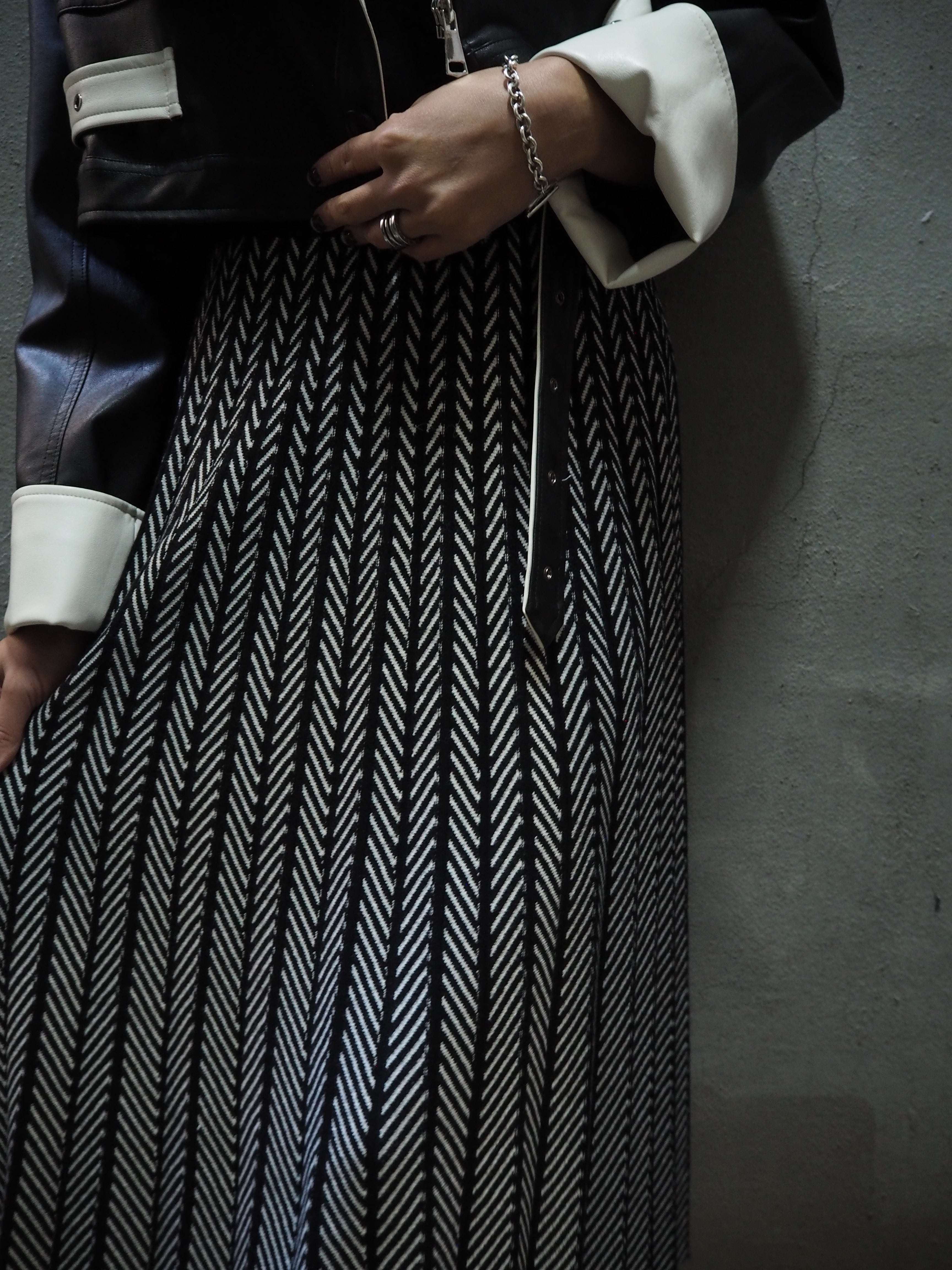 herringbone pleats knit skirt スカート ニット プリーツ ゴムウエスト ヘリンボーン