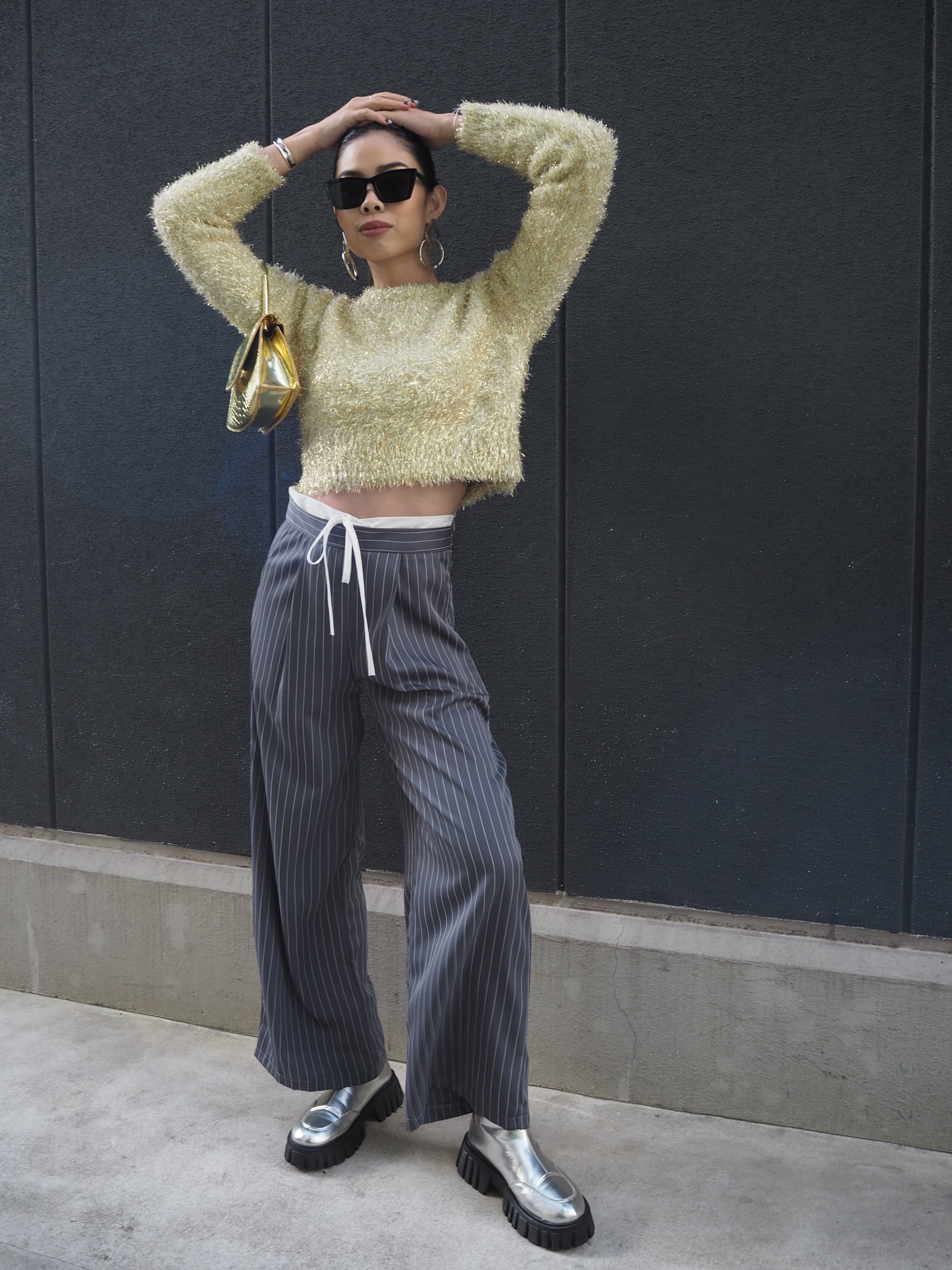 glitter shaggy knit croped tops トップス ニット グリッター ゴールド ショート丈