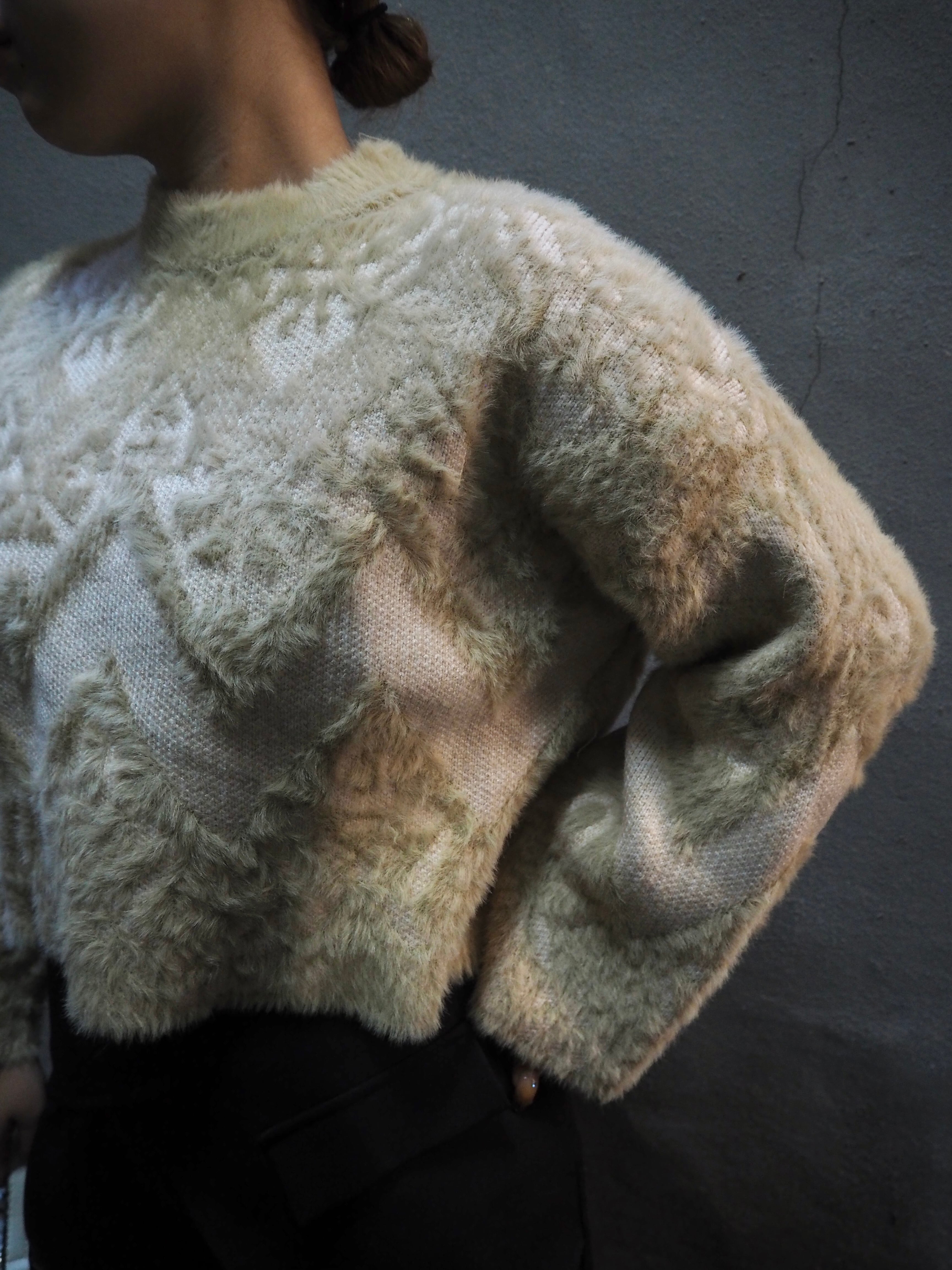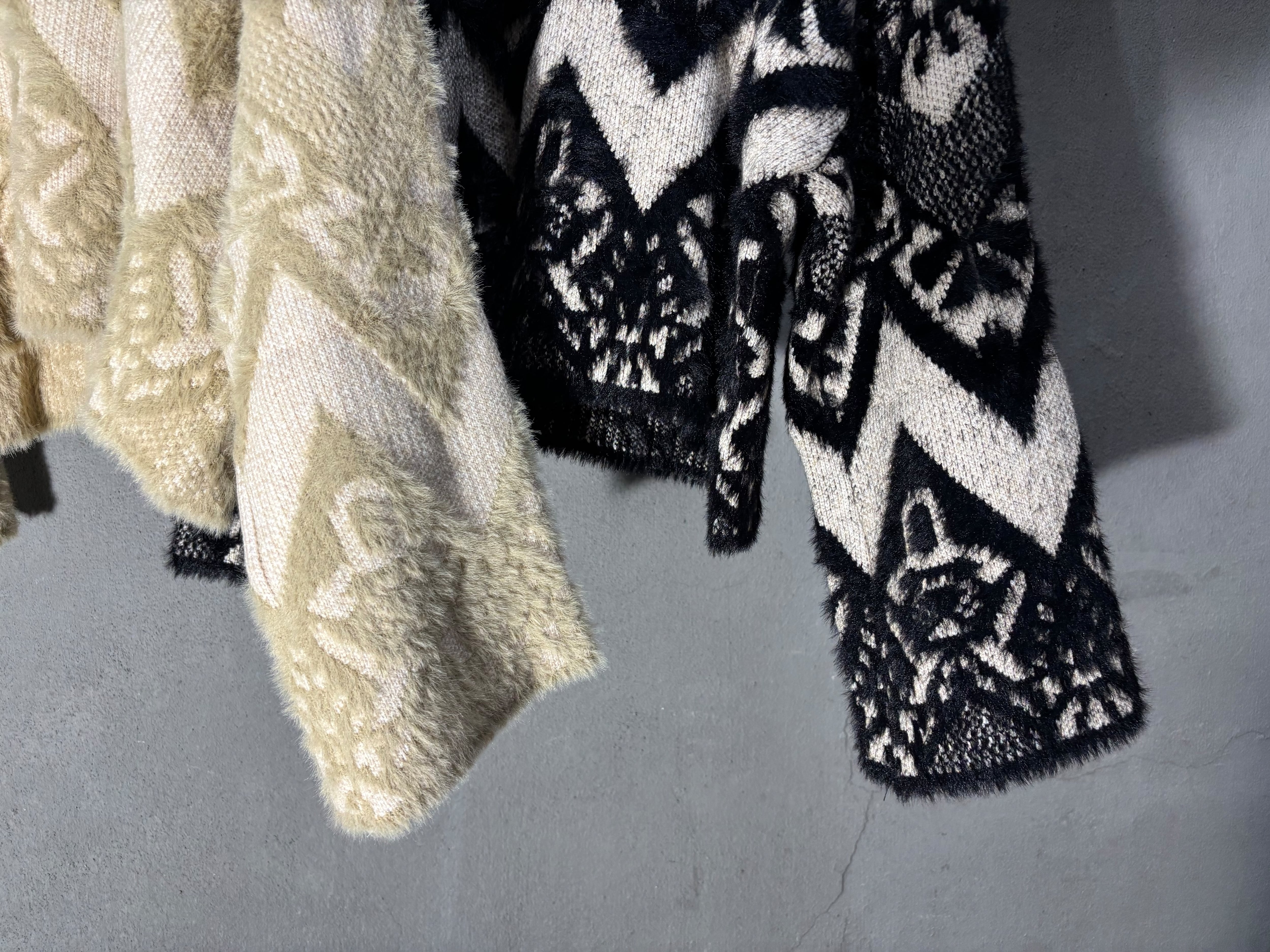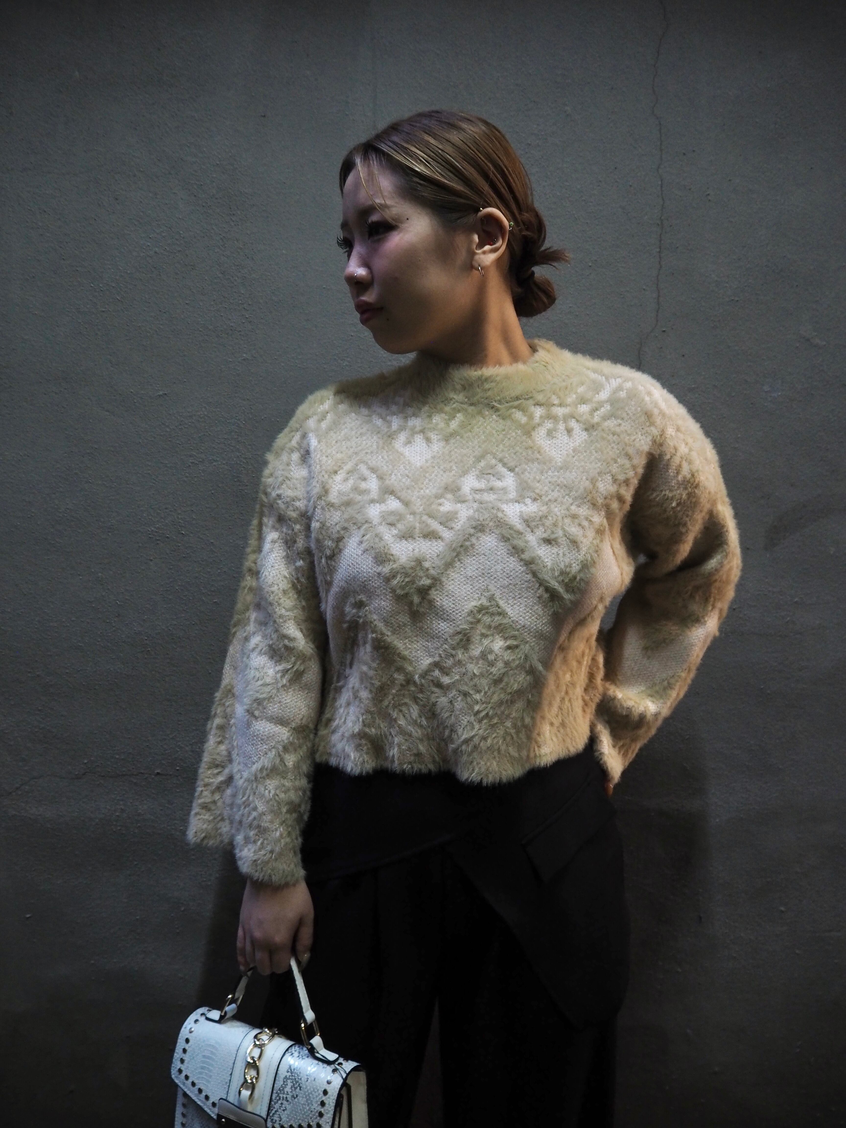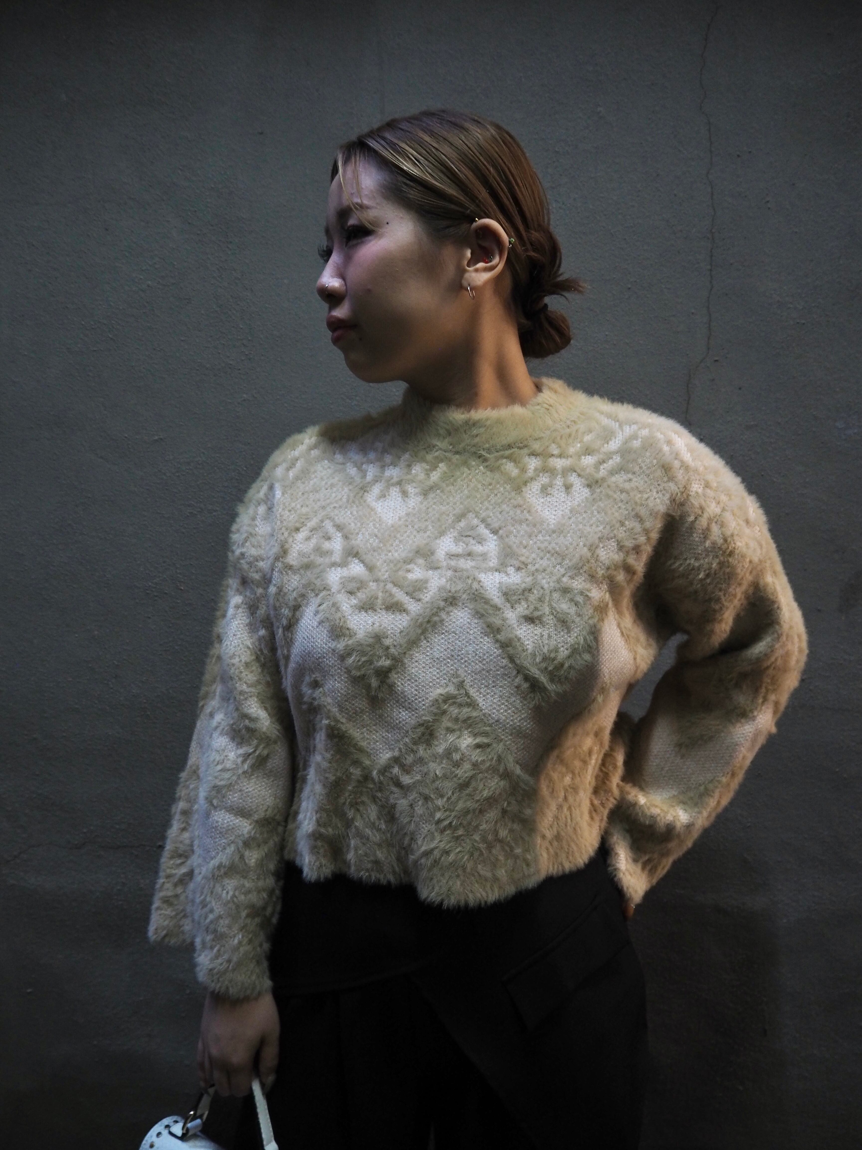 bi-color shaggy jacquard knit tops トップス ニット シャギー バイカラー 柄ニット