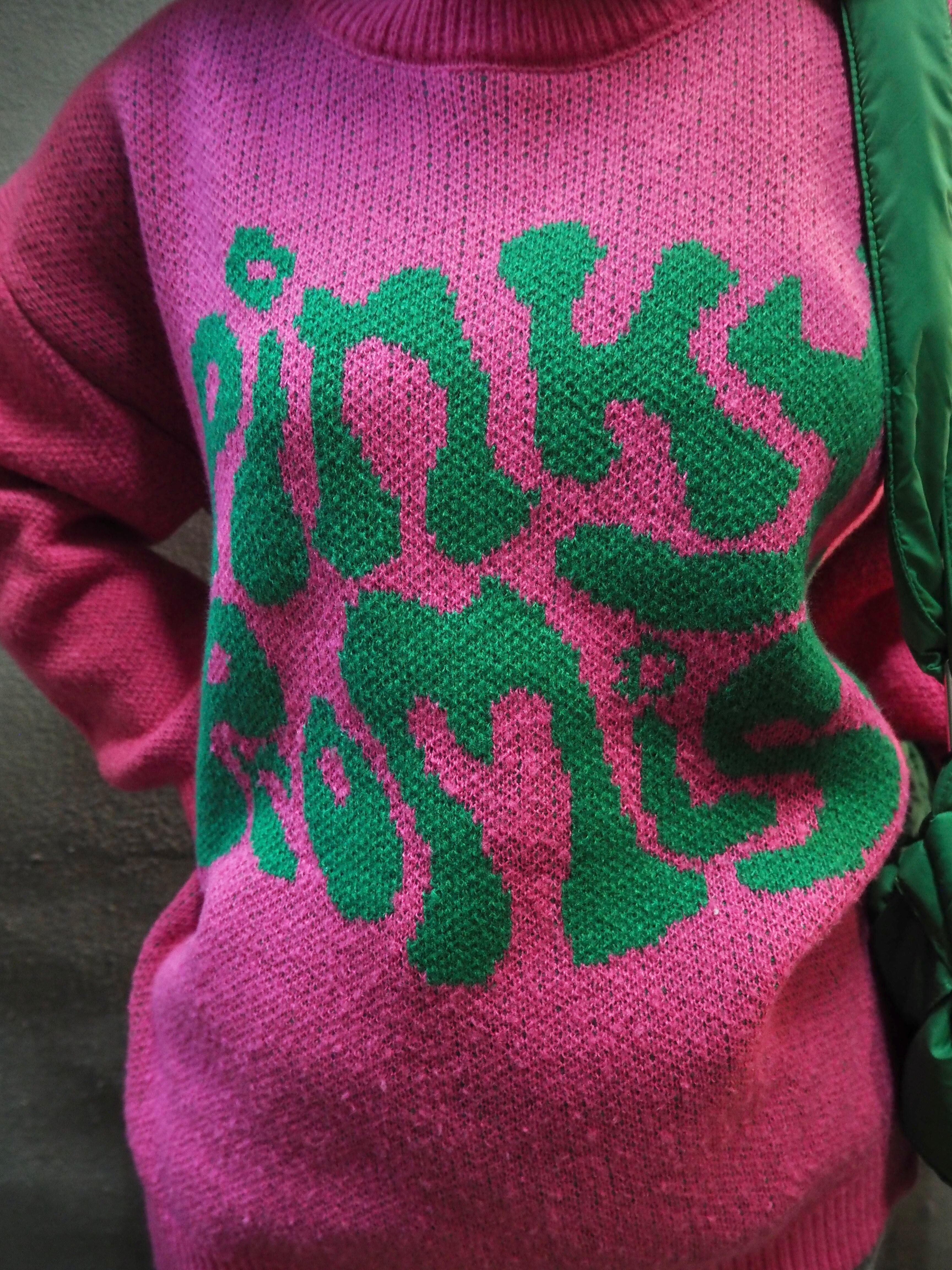 pink × green bi-color jacquard knit tops トップス ニット ジャガード ピンク 緑