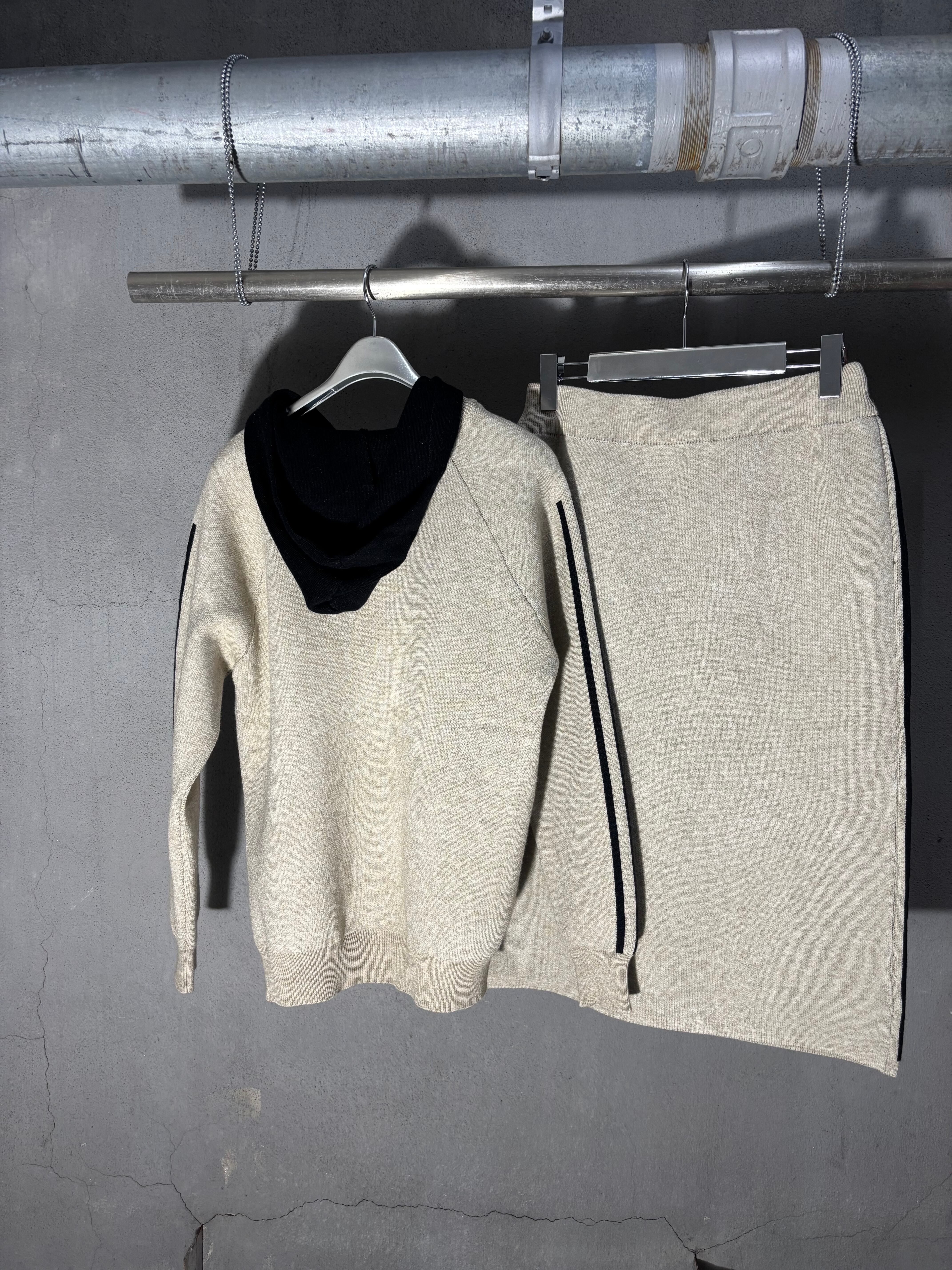 hoodie tops × skirt knit set up 2P ニット セットアップ ジャガード フーディー トップス スカート ライン入り 着まわし