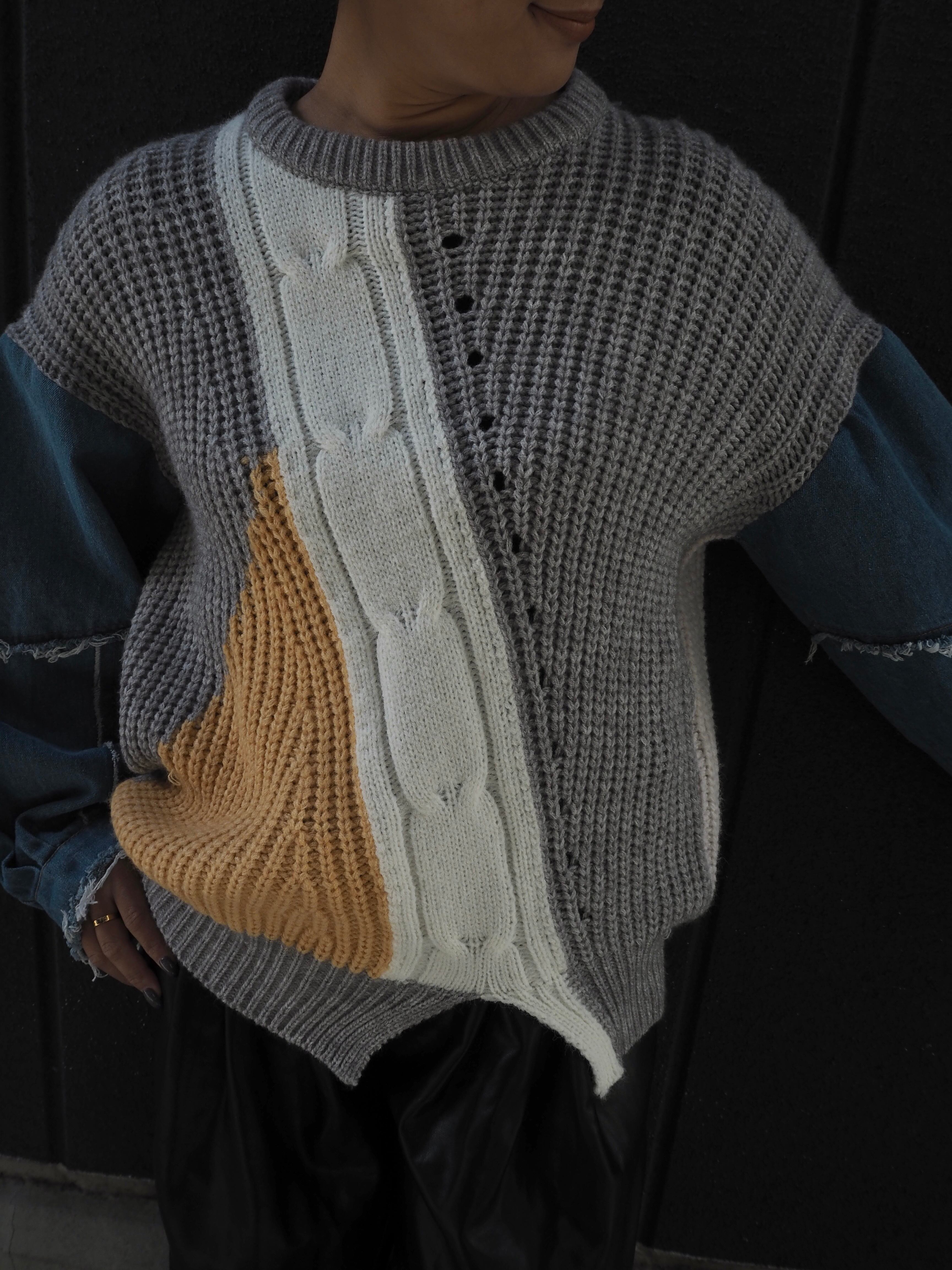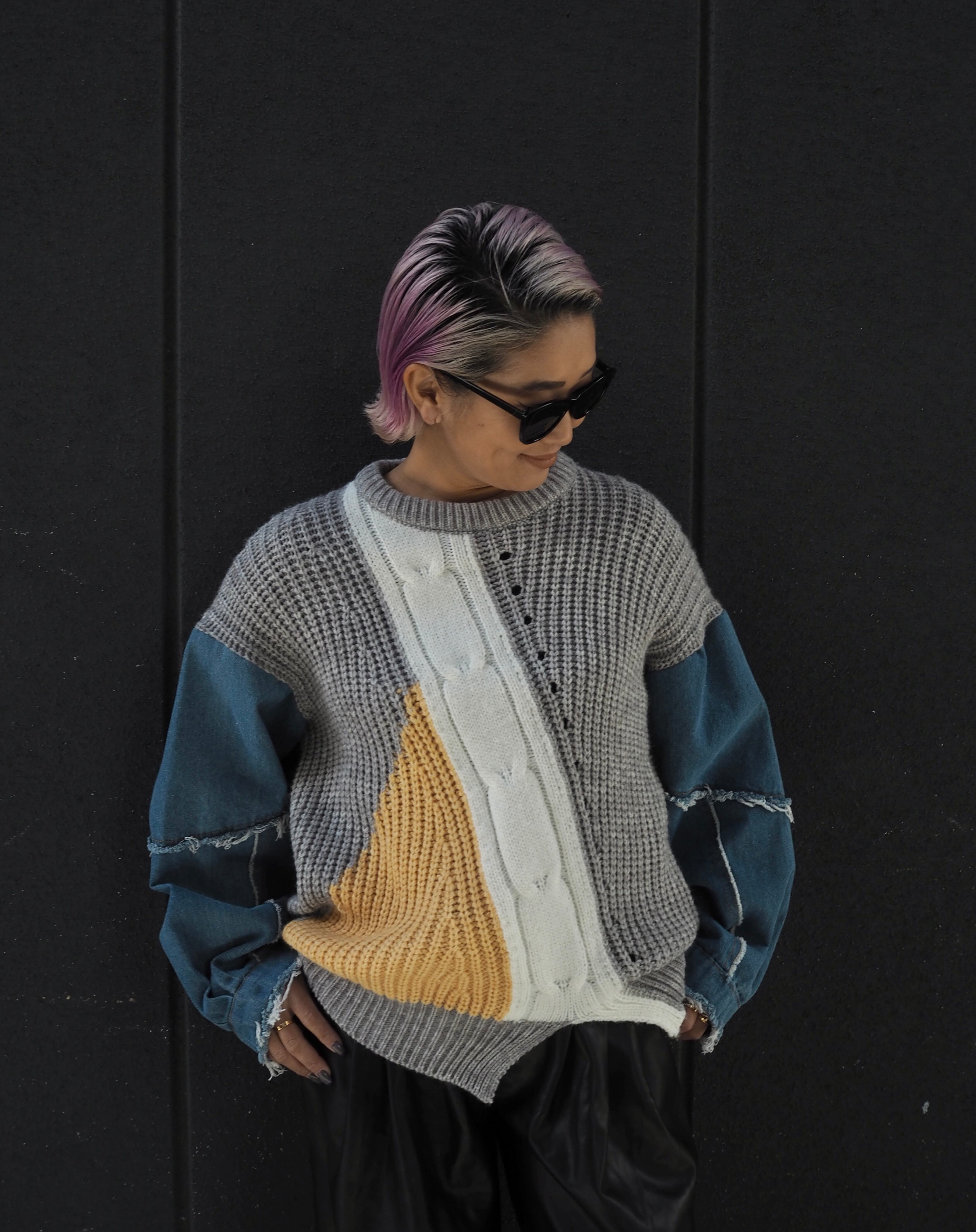 denim sleeve change design knit tops トップス ニット デニム 切替デザイン 配色