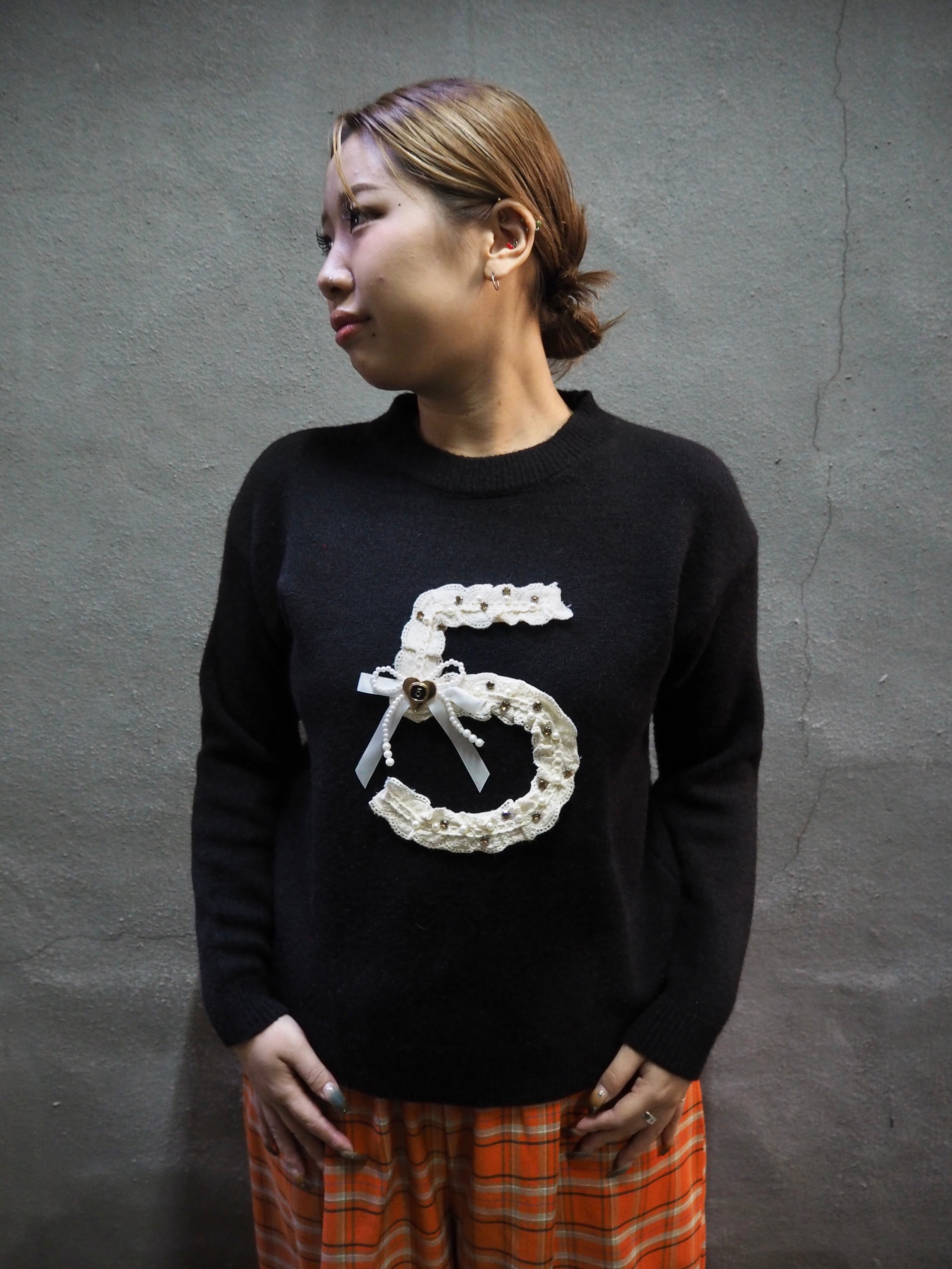 lace bijou〝5〟design knit tops トップス ニット ビジュー ブラック 黒