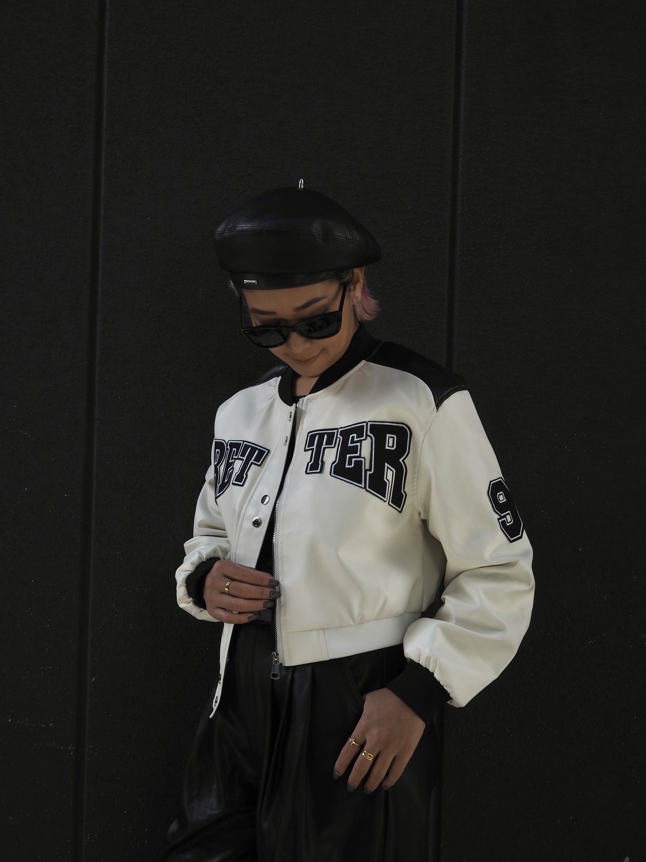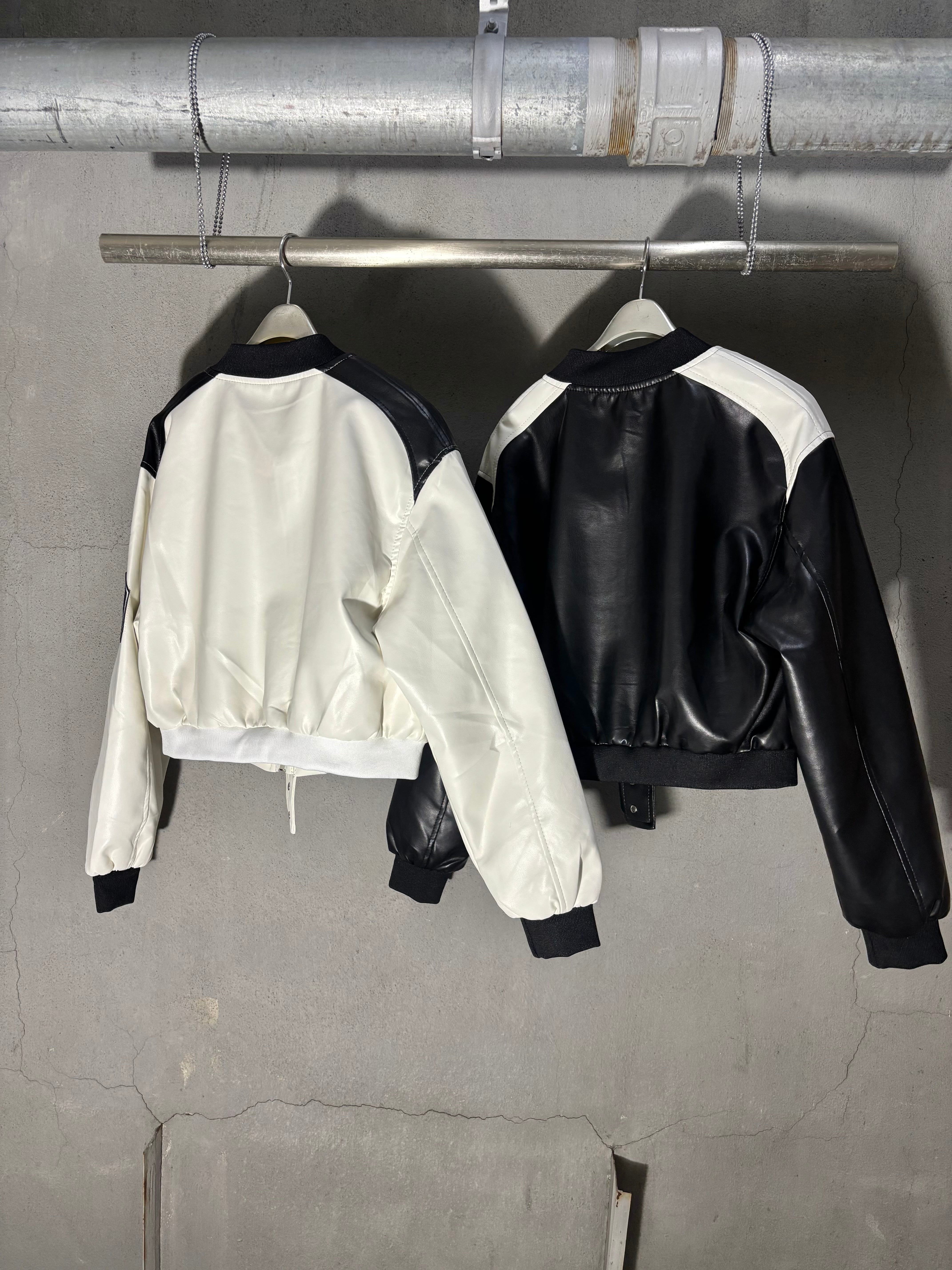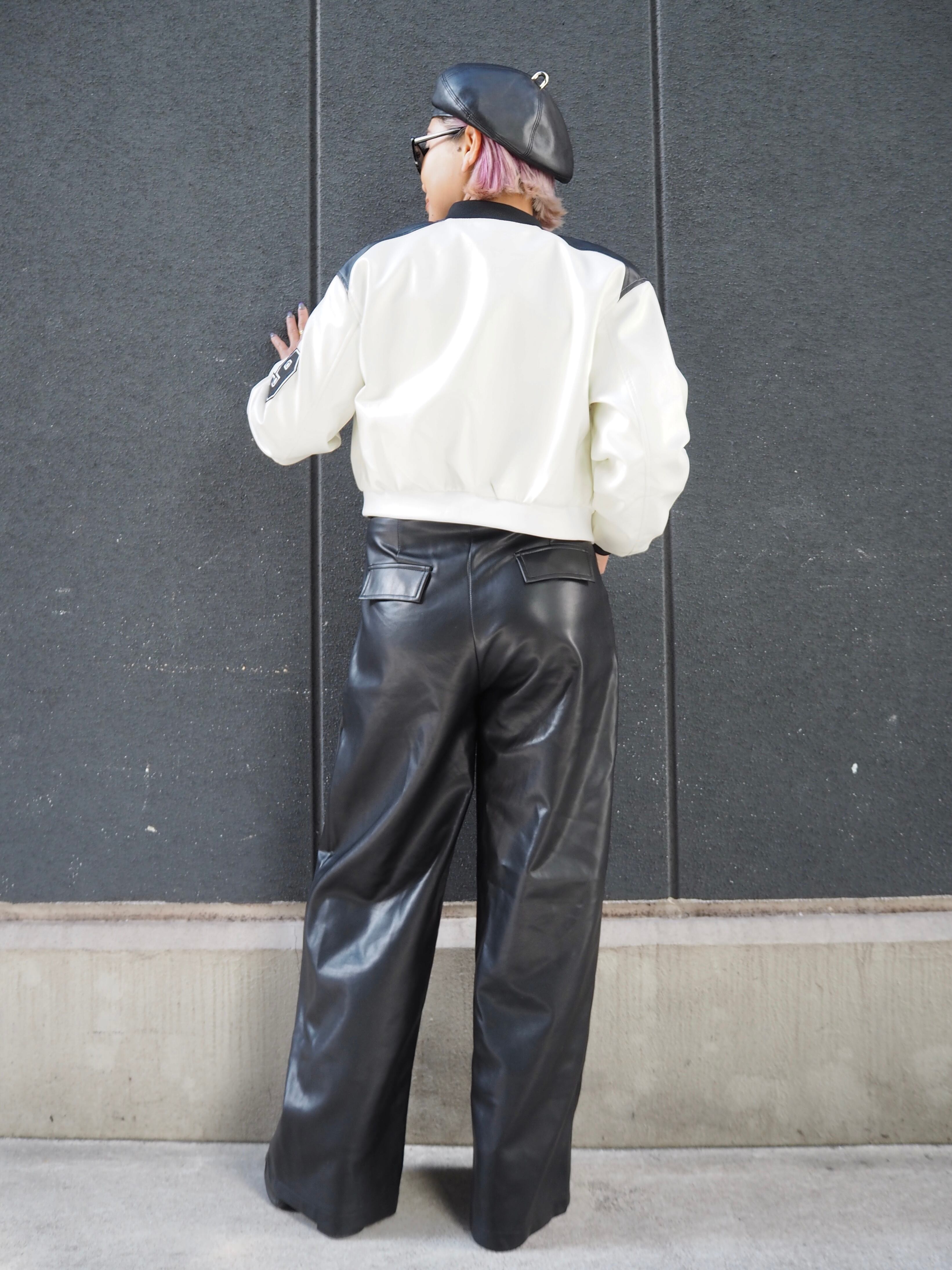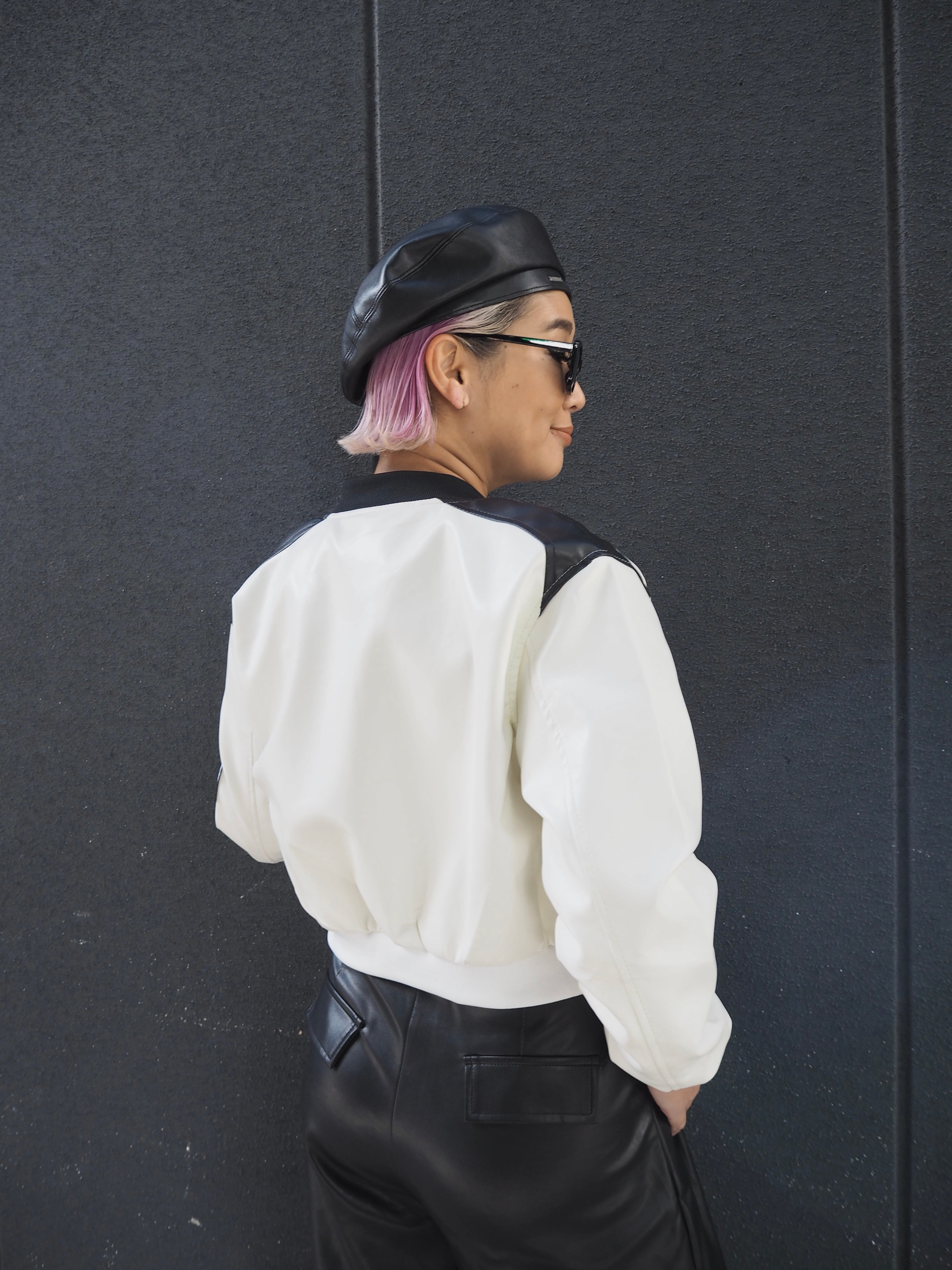 eco leather bi-color sporty design blouson ブルゾン ジャケット エコレザー 合皮 バイカラー 白黒 スポーティー