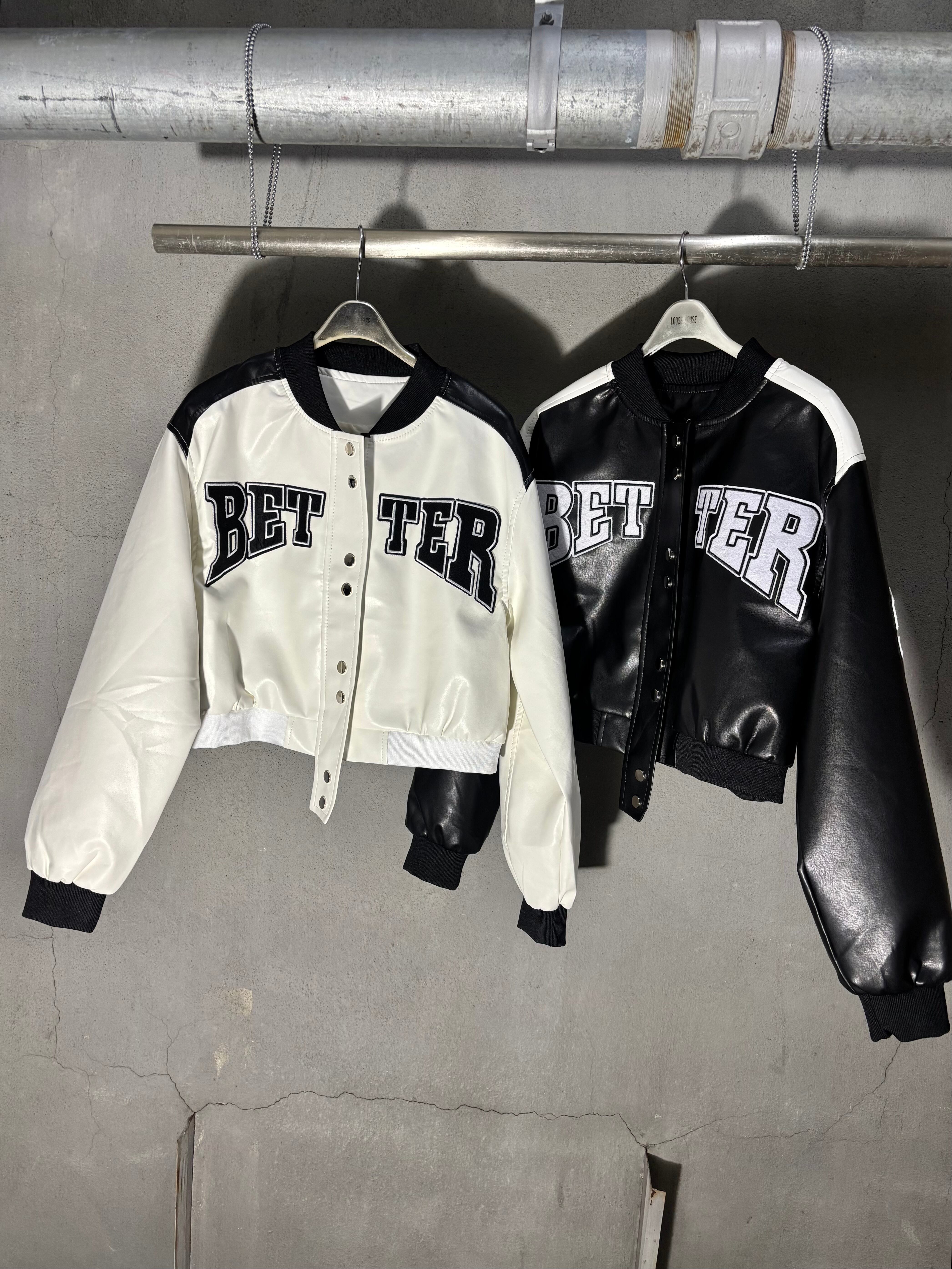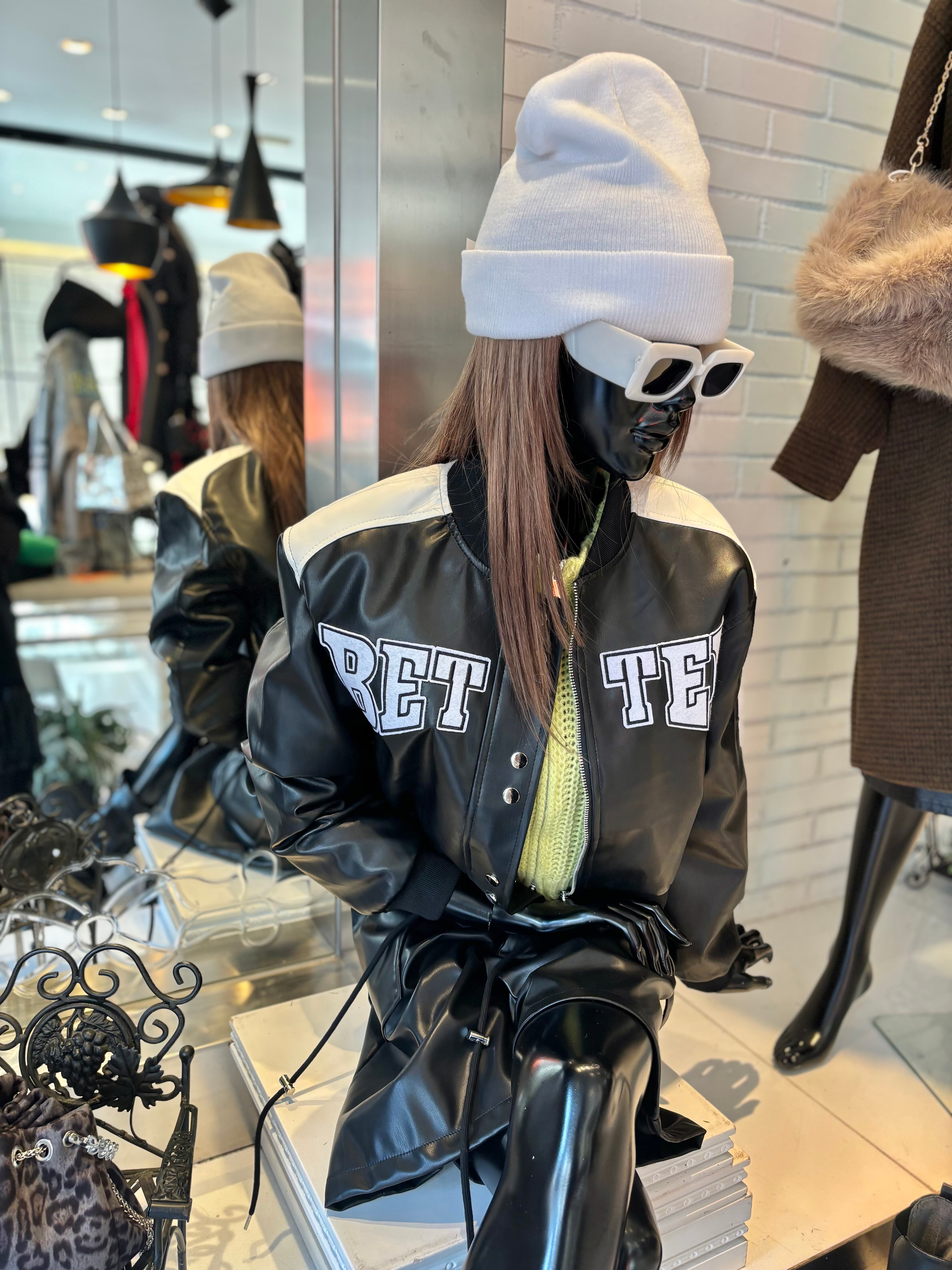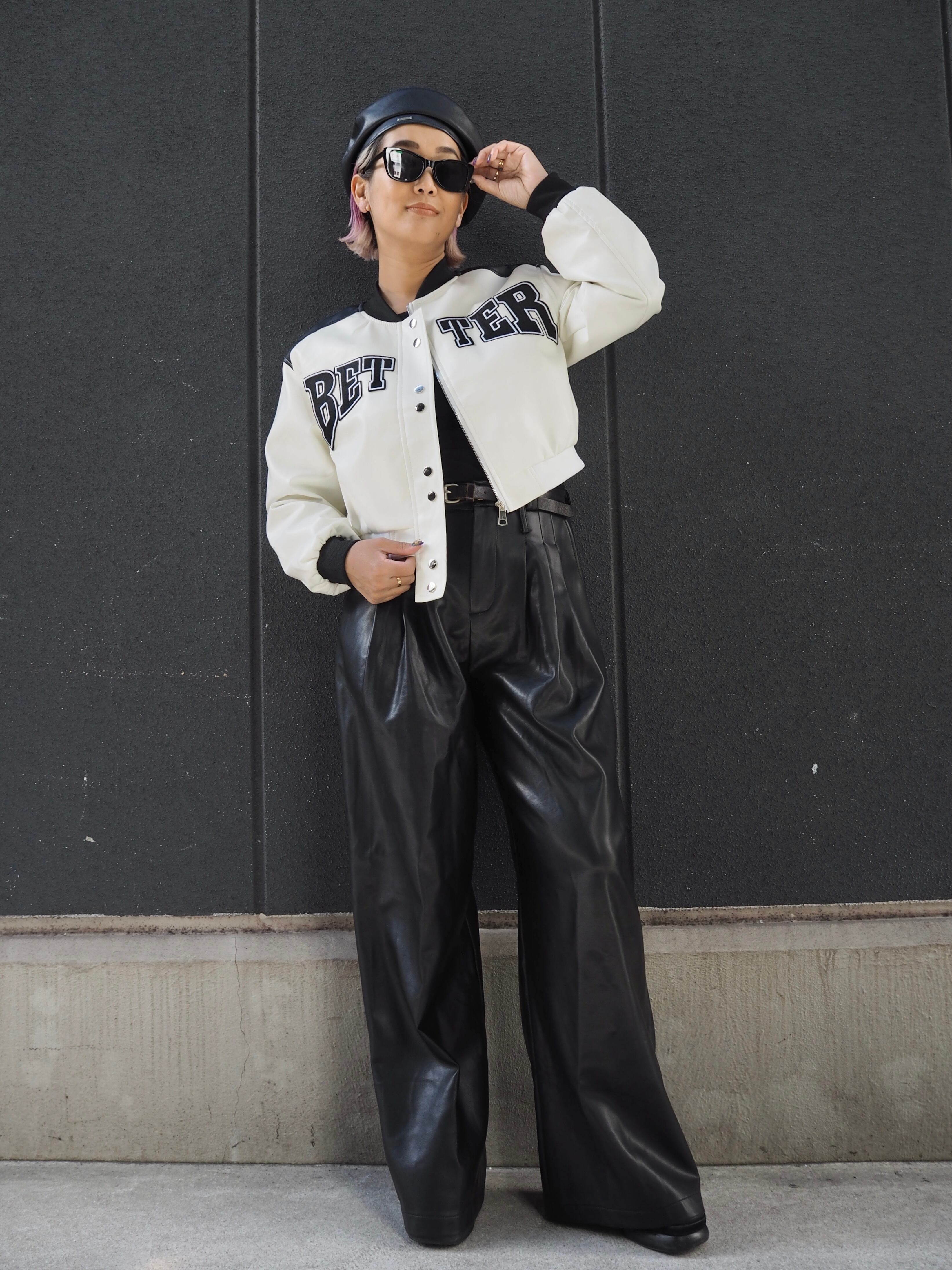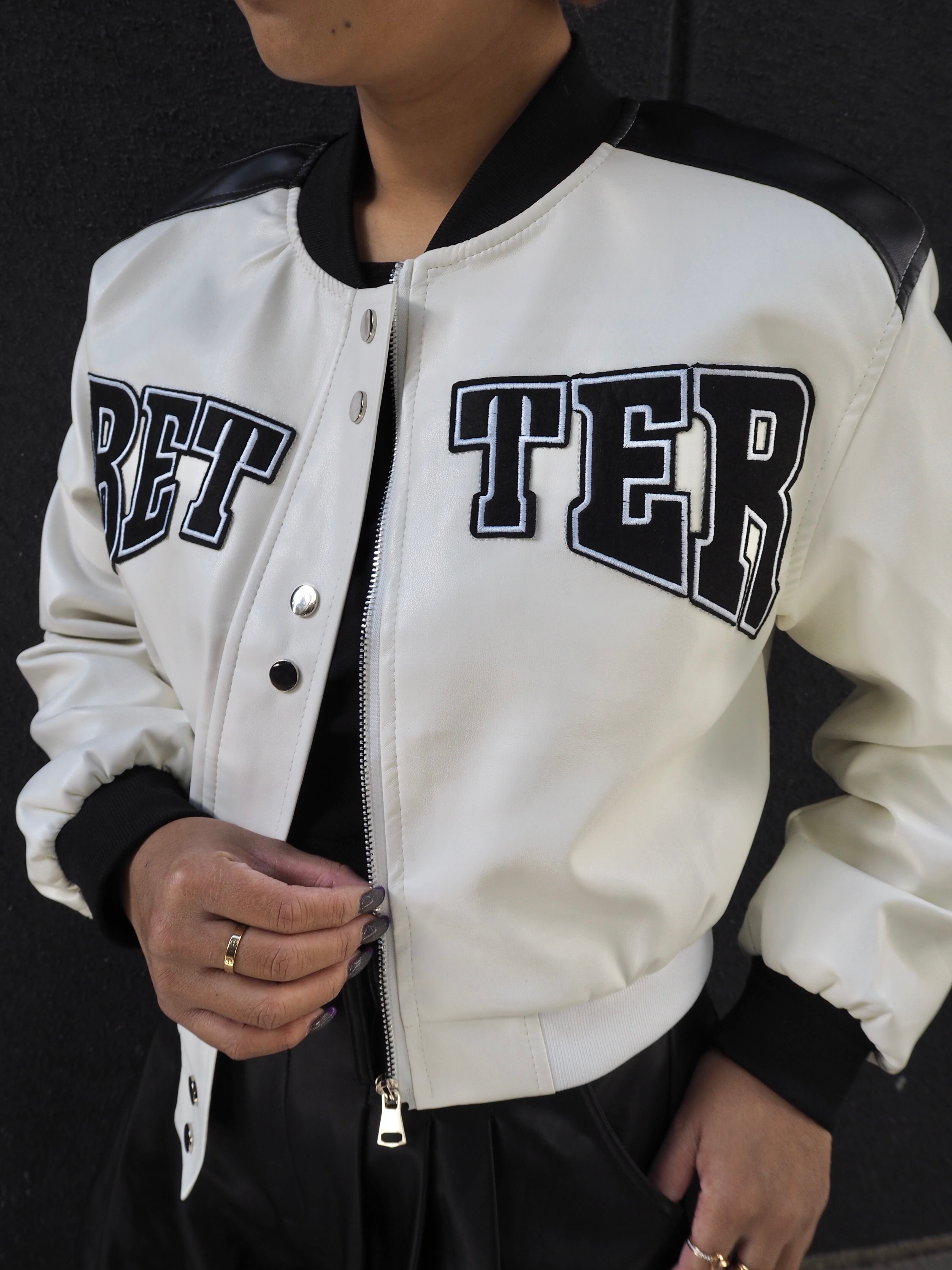 eco leather bi-color sporty design blouson ブルゾン ジャケット エコレザー 合皮 バイカラー 白黒 スポーティー