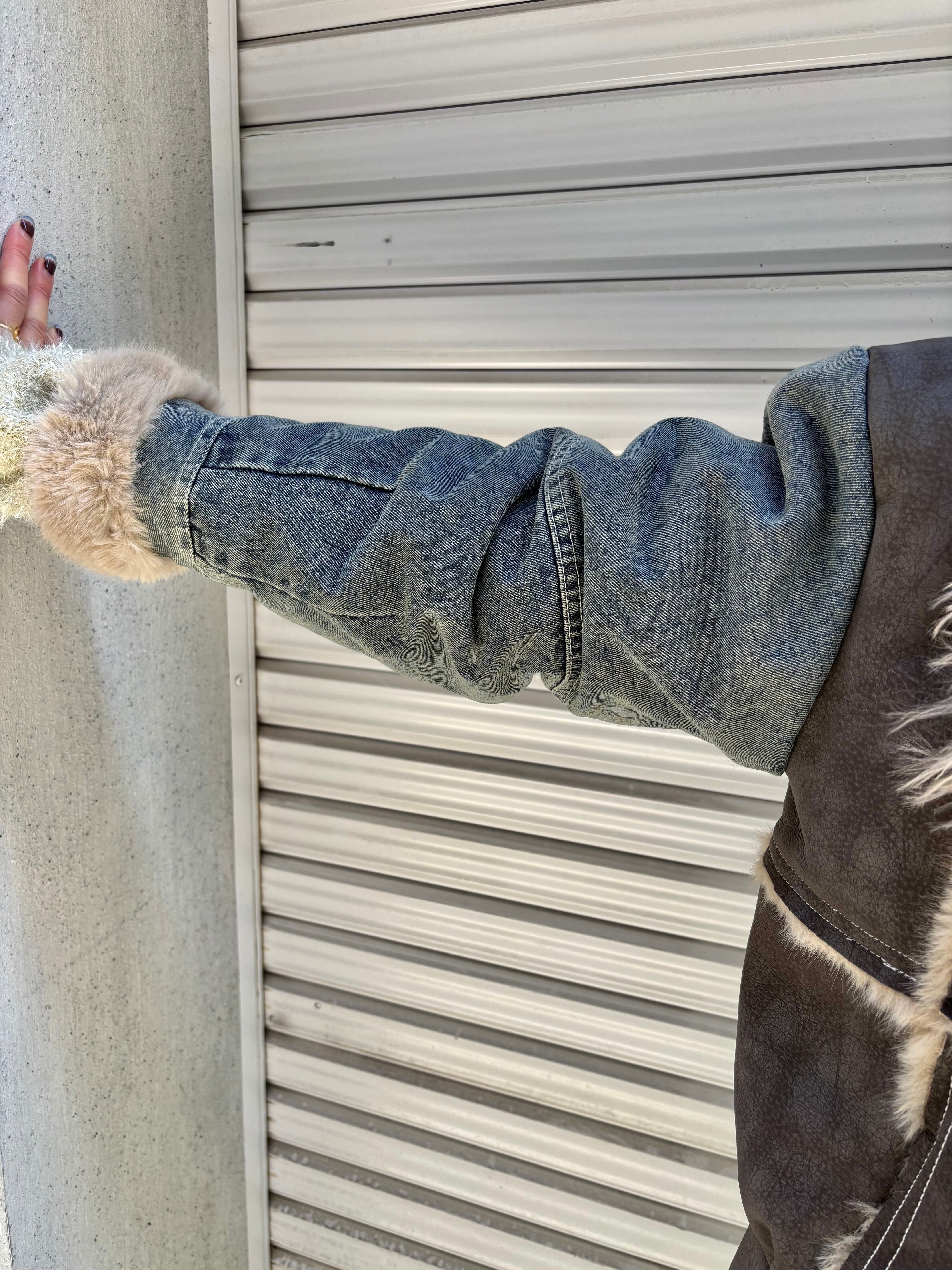 fake mouton × denim change design jacket ジャケット フェイクムートン デニム 切替デザイン もこもこ