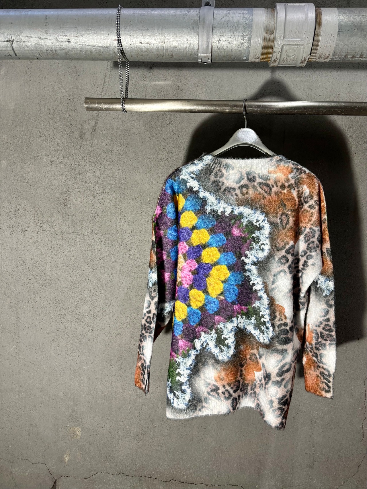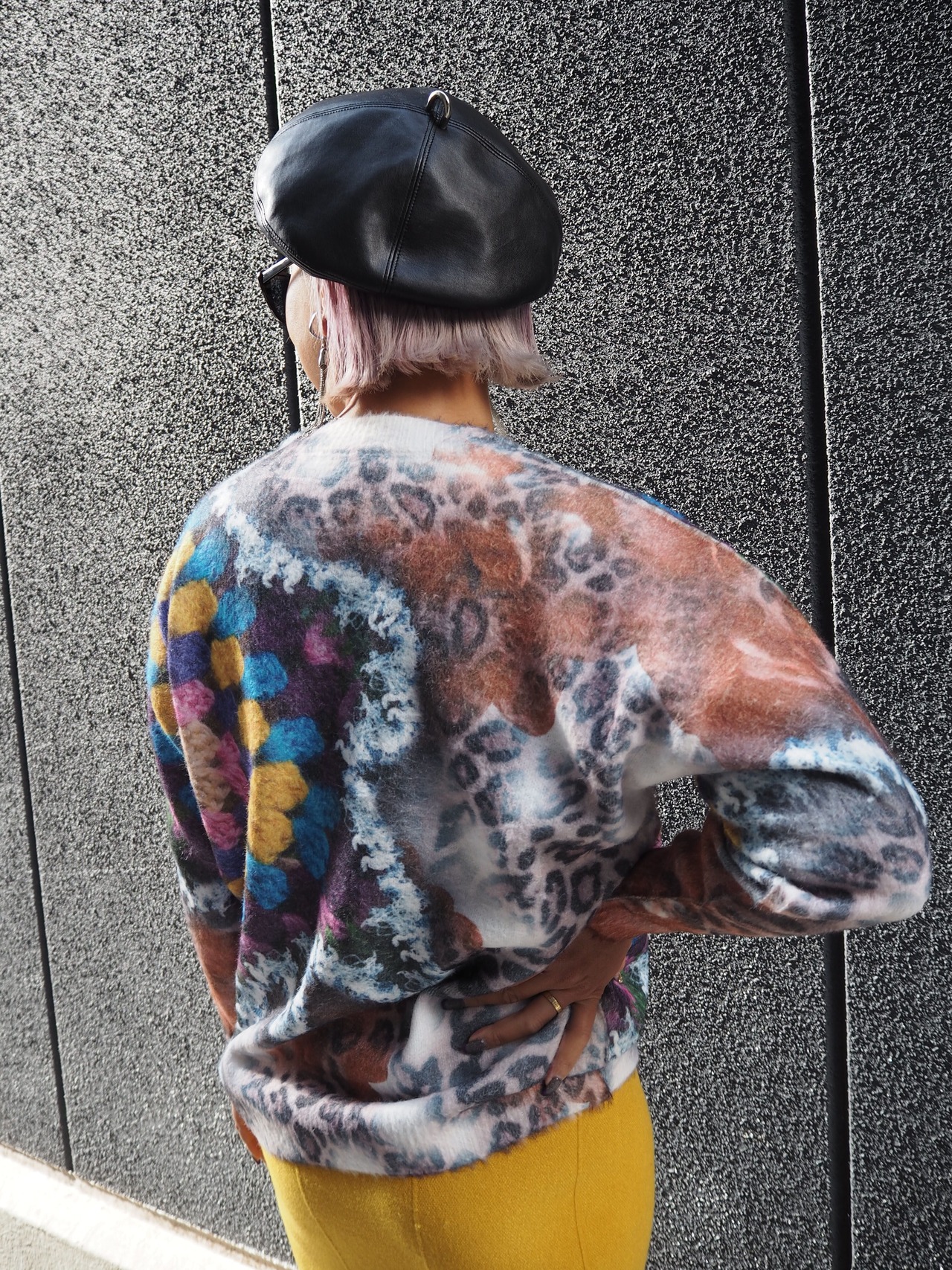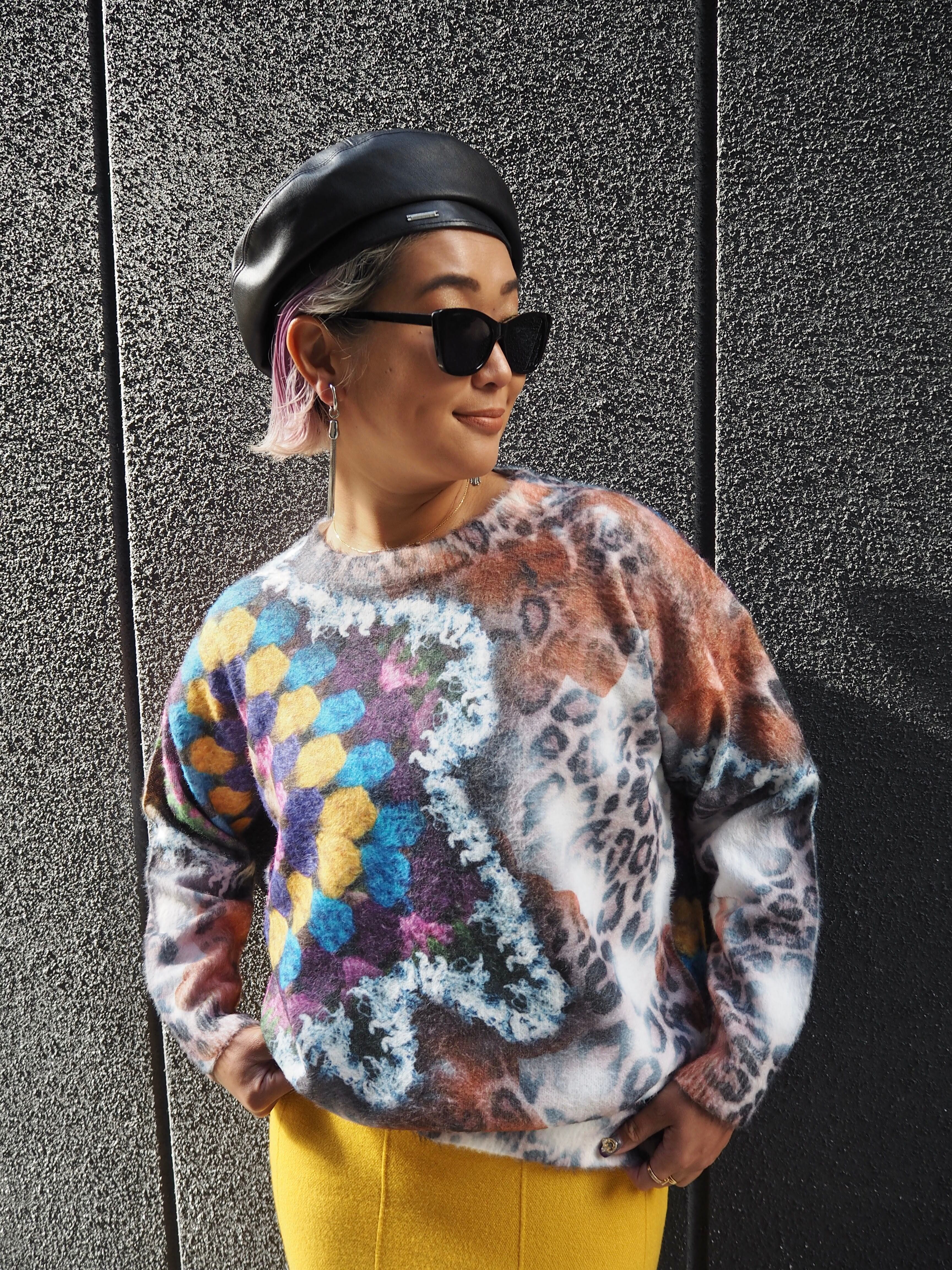 mix print knit tops sweater ニット トップス 起毛 転写 プリント セーター