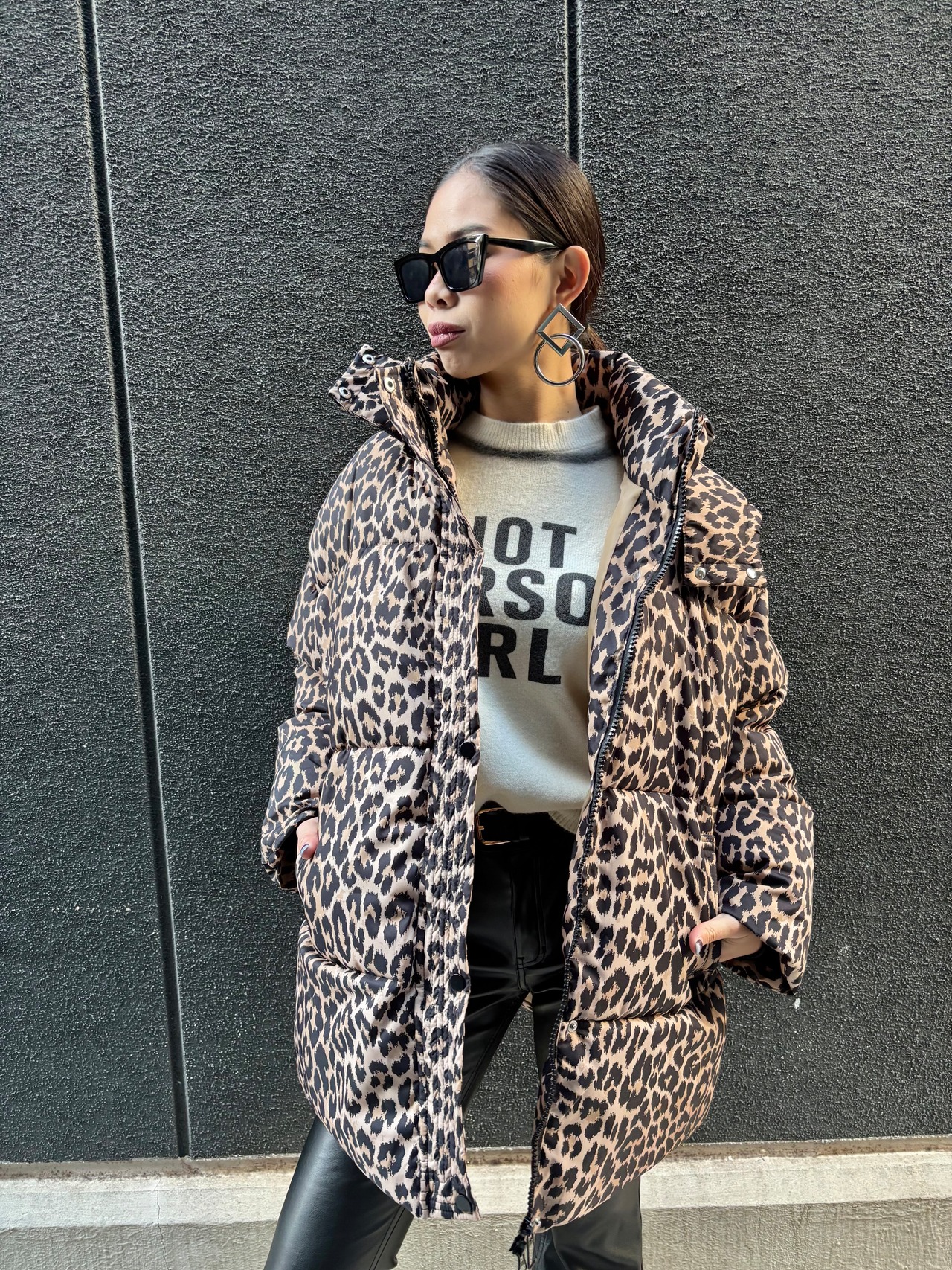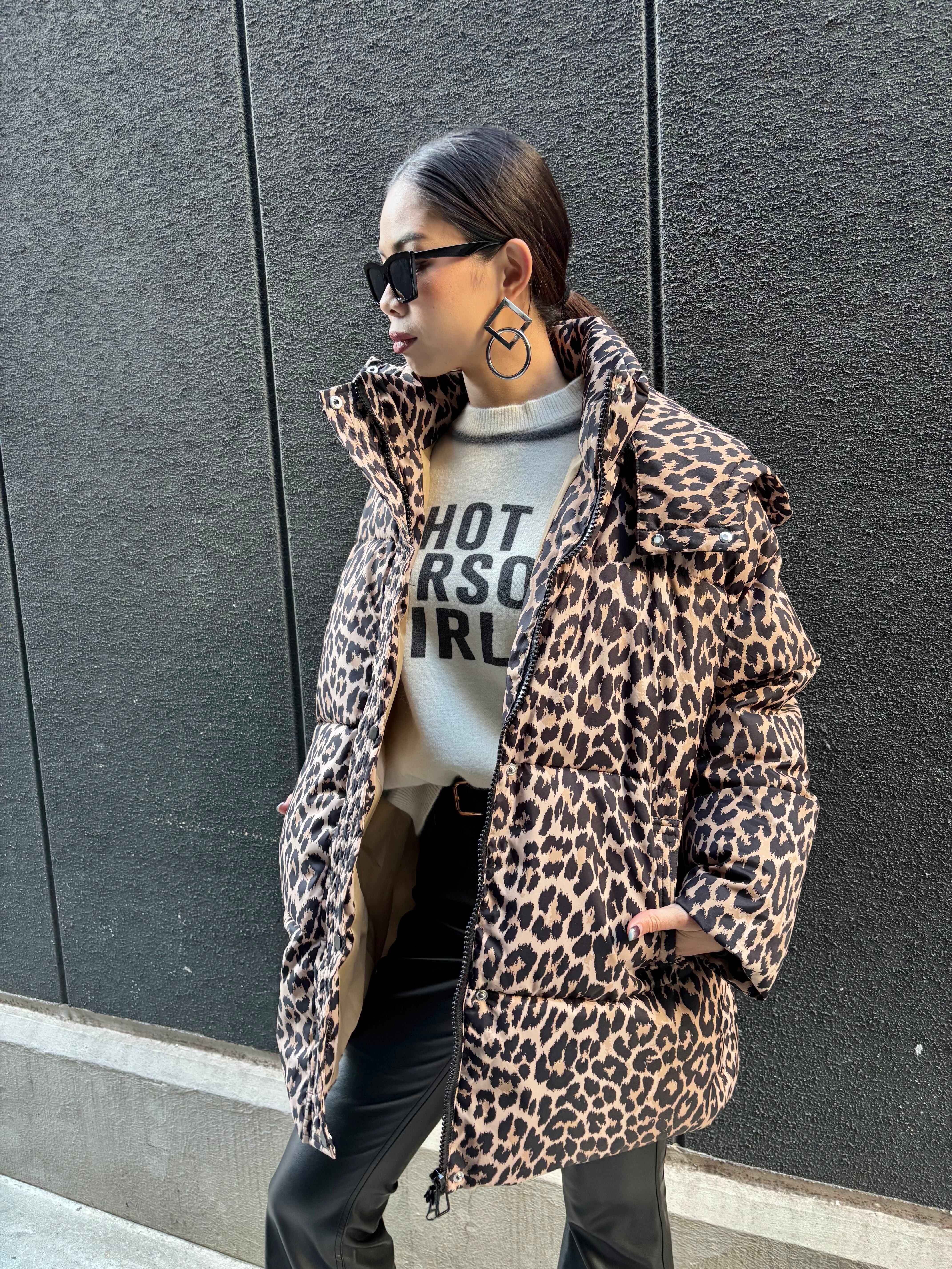 leopard hoodie padded jacket ジャケット 中綿 スタンドネック フード レオパード 豹柄 ひょう ヒョウ