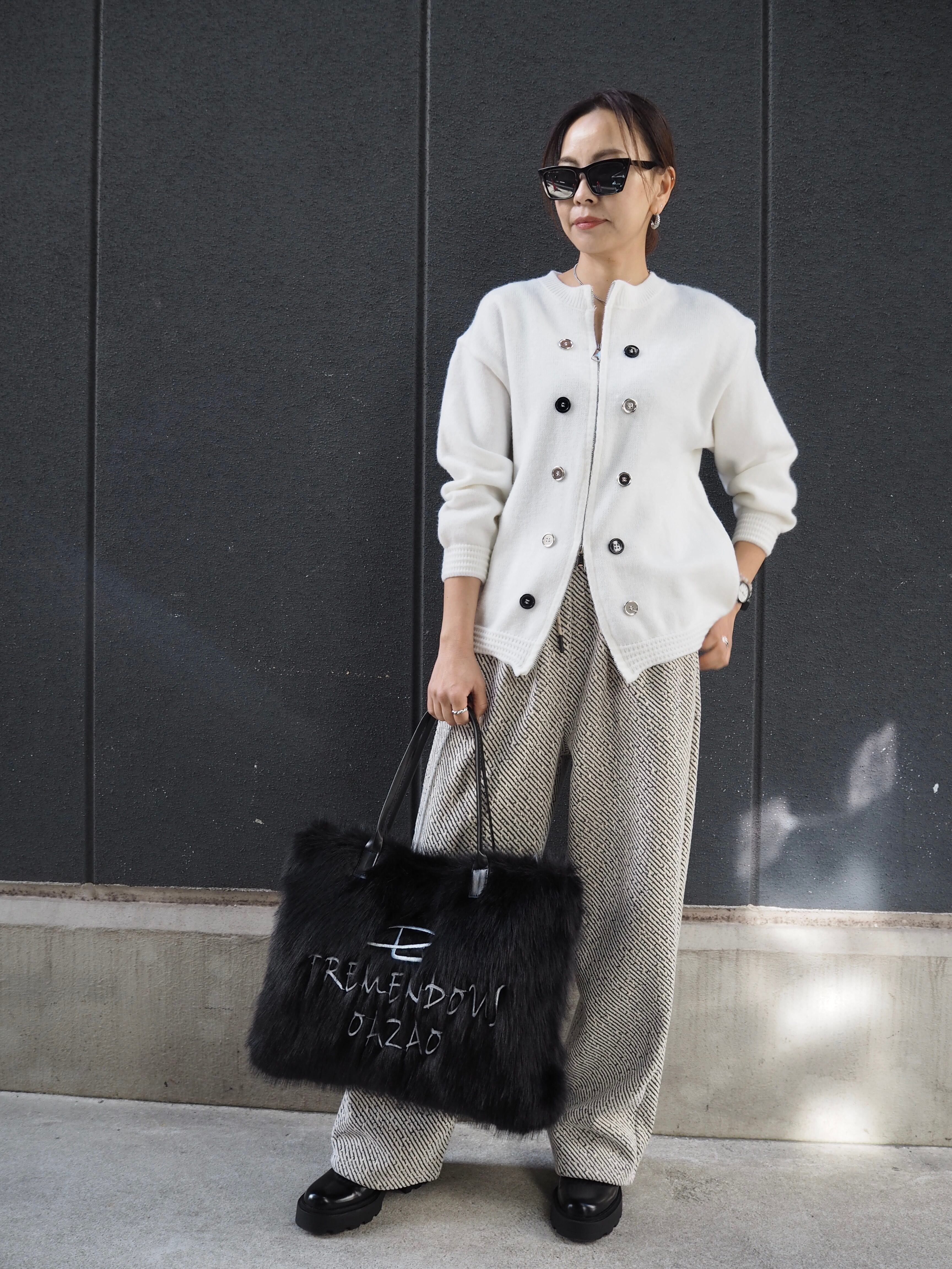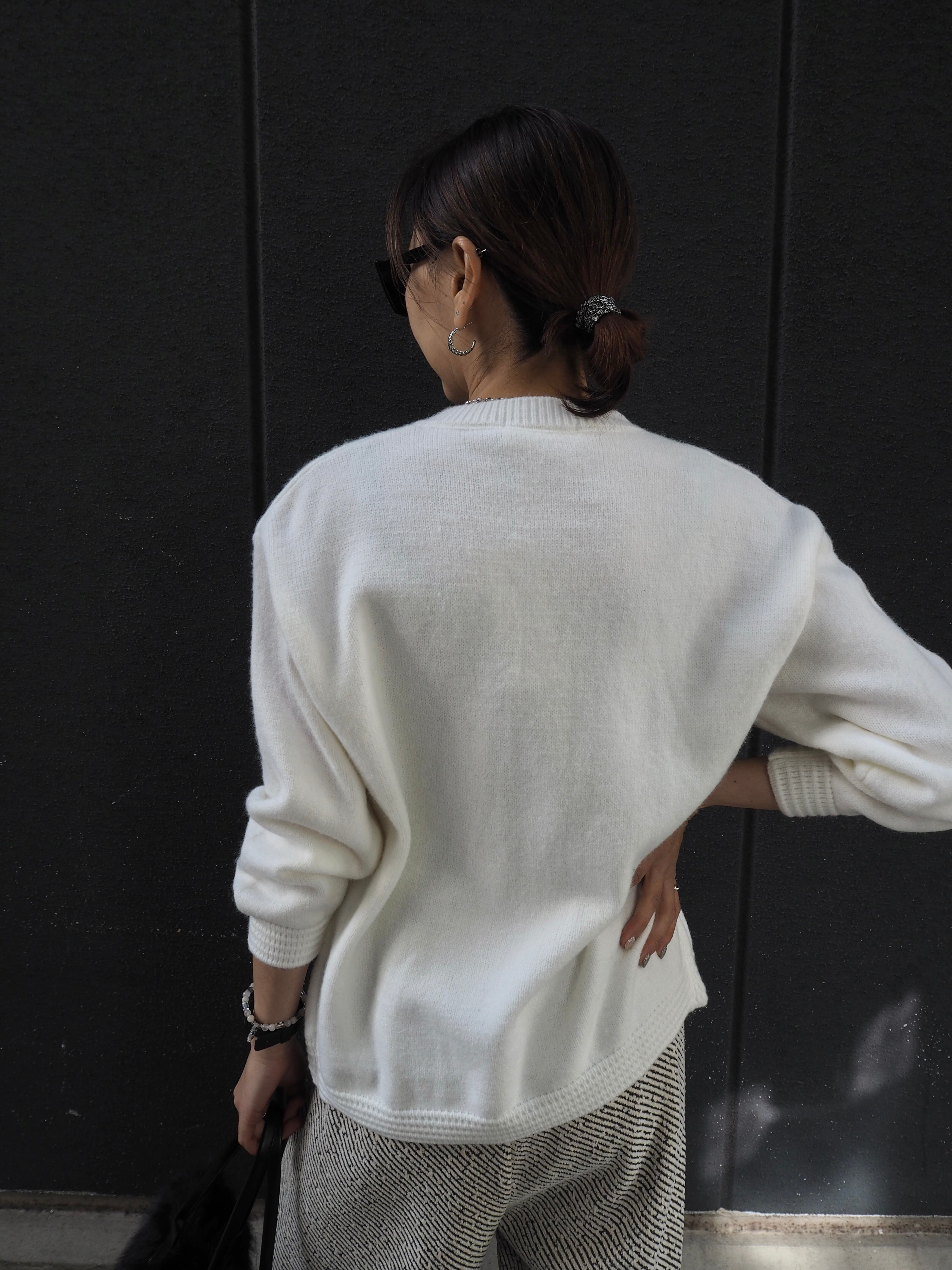 首回りはクルーネックでスッキリしているので、マフラーやスヌードとの組み合わせも◎