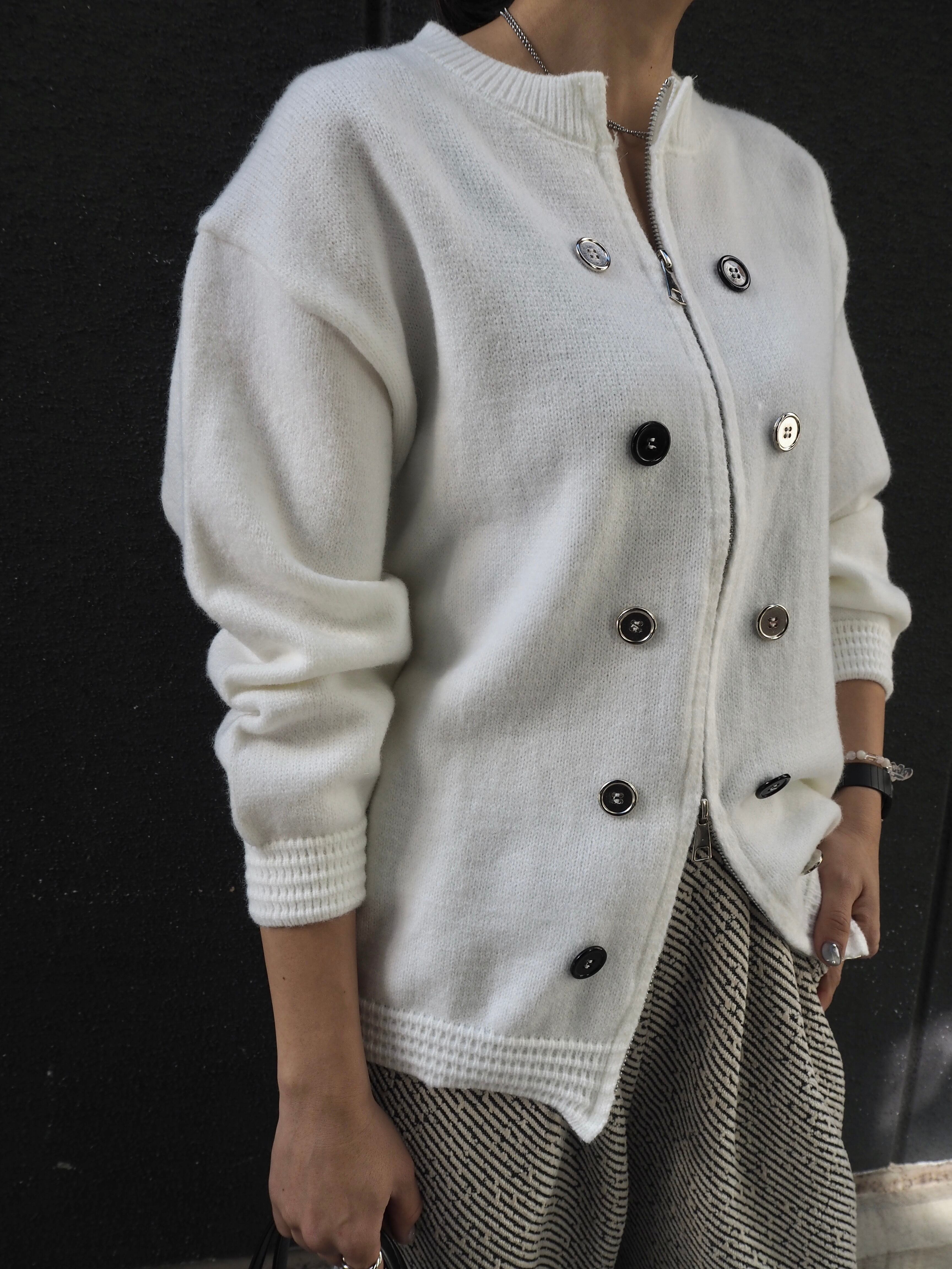 button design zip up knit jacket cardigan ニット ジップアップ ジャケット カーディガン ボタン