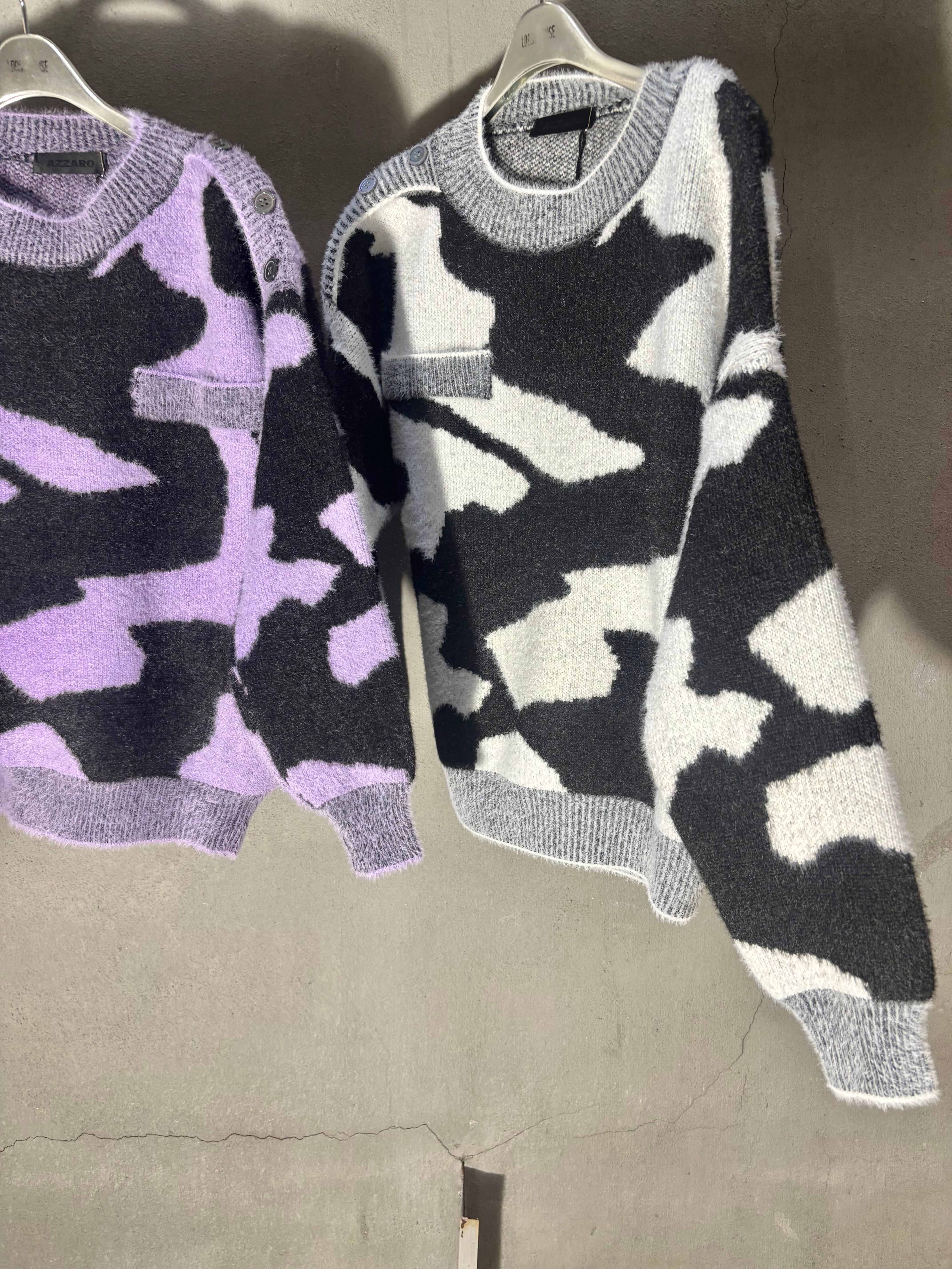bi-color pattern shoulder button knit tops sweater ニット トップス セーター 柄ニット バイカラー ボタン