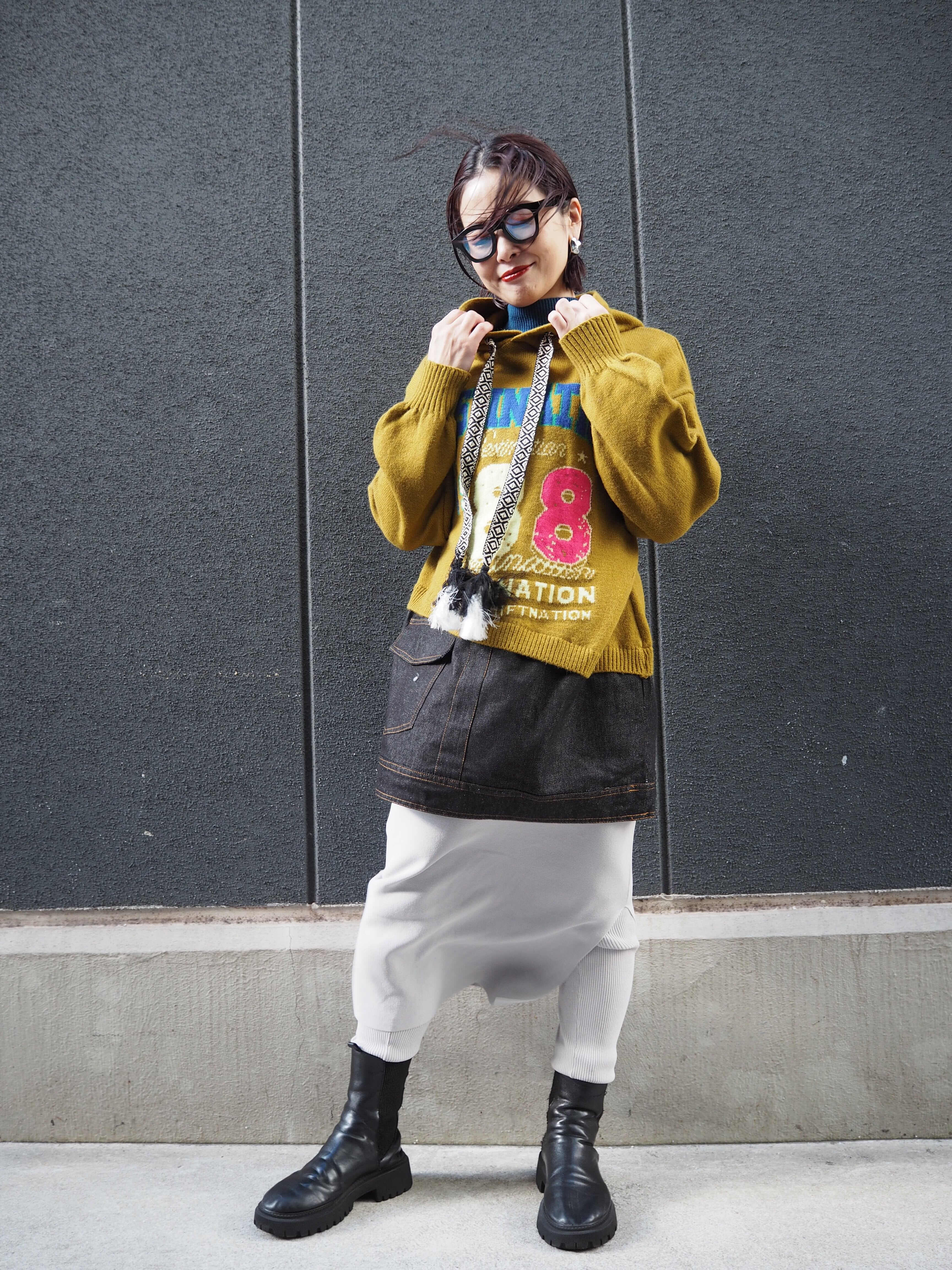 柔らかなニット素材とデニムの組み合わせが新鮮で