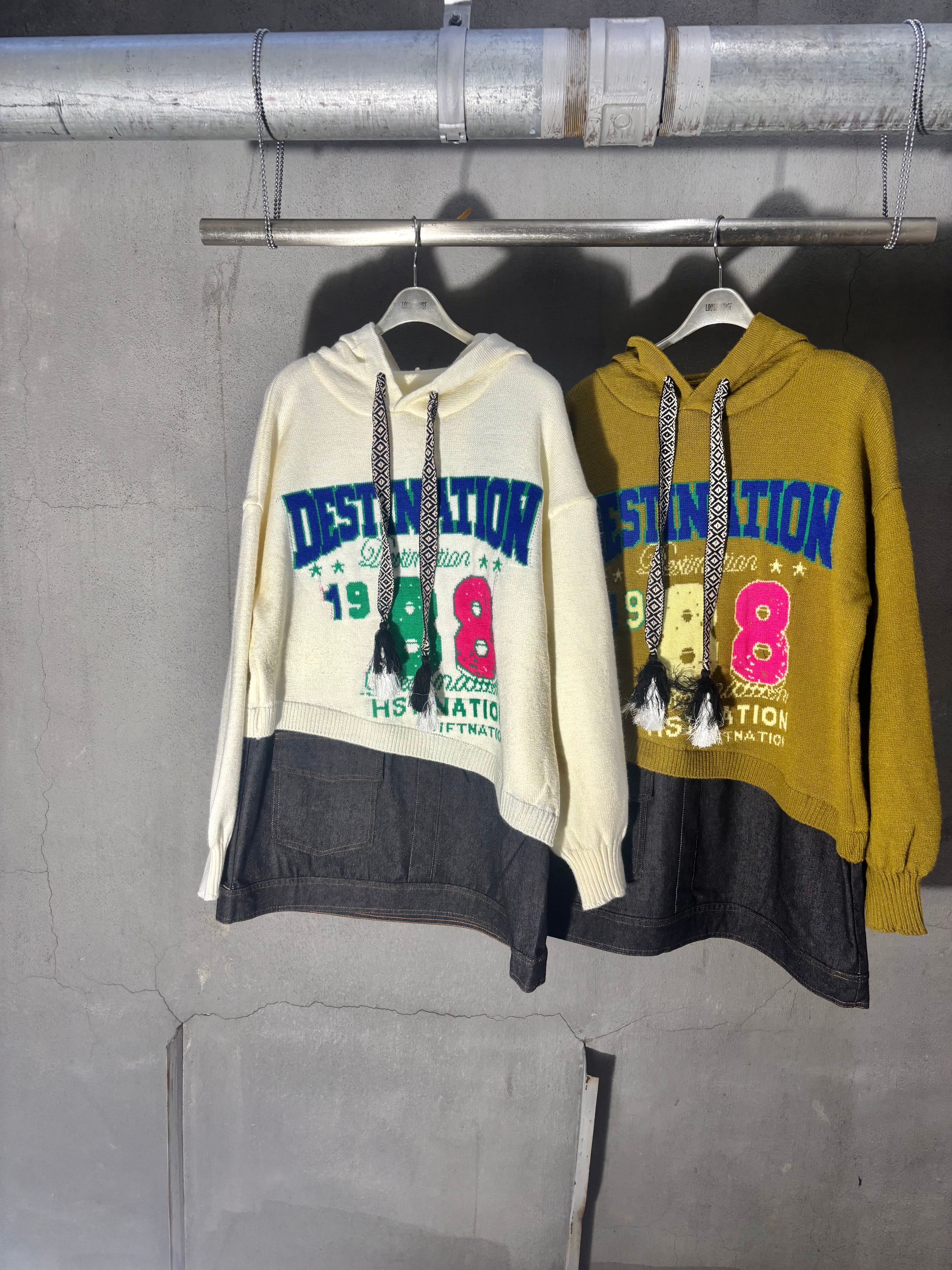 denim docking knit 88 hoodie tops トップス ニット デニム 切替デザイン フーディー フード