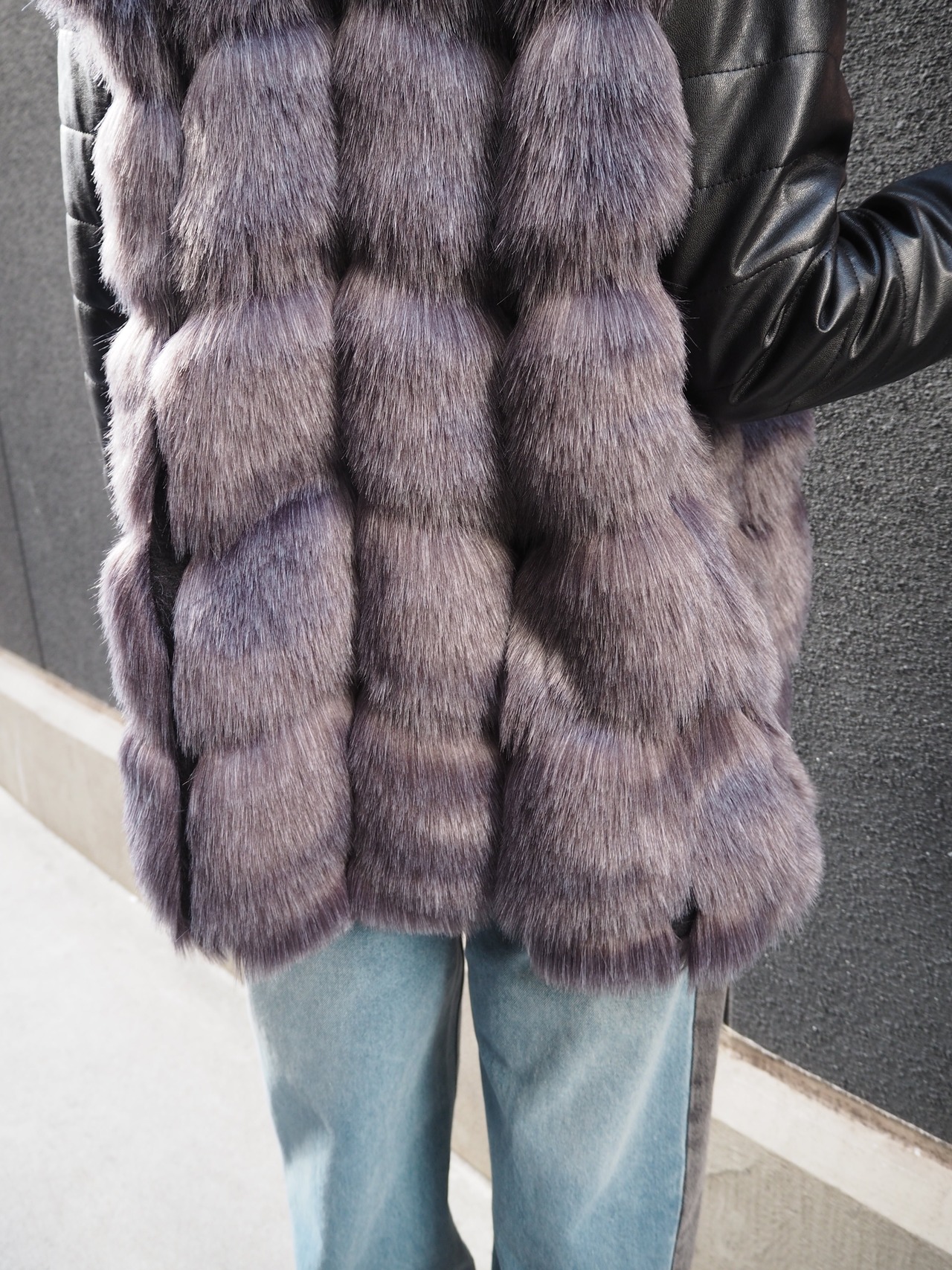 eco fur × eco leather change design jacket coat コート ジャケット エコレザー フェイクレザー 合皮 エコファー フェイクファー 切替デザイン アウター