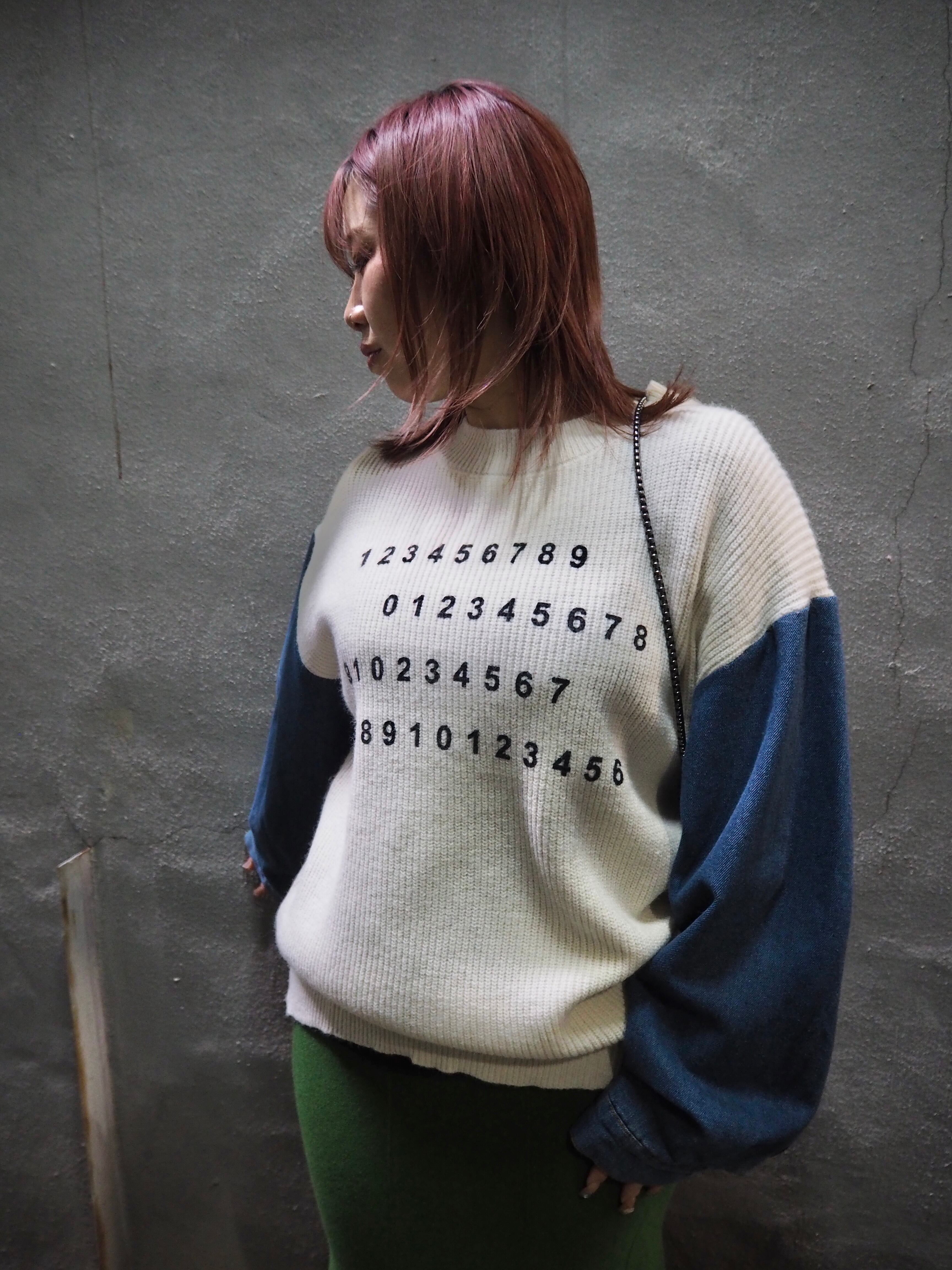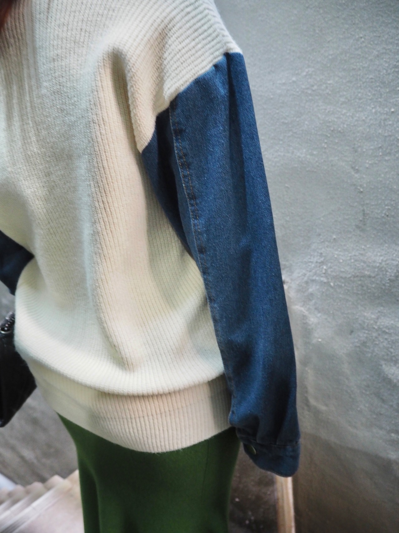 denim sleeve design rib knit tops sweater トップス ニット セーター デニム 切替デザイン