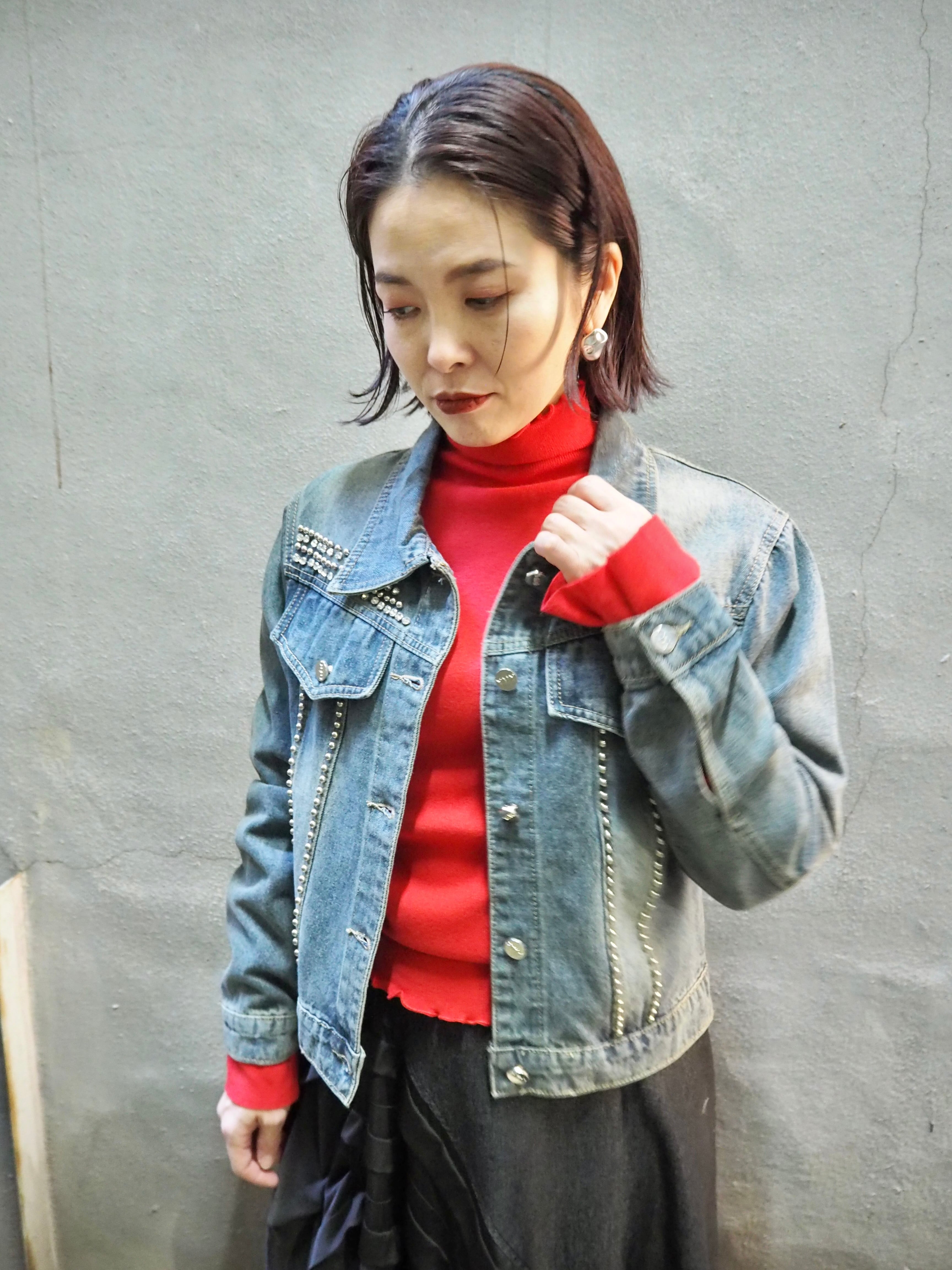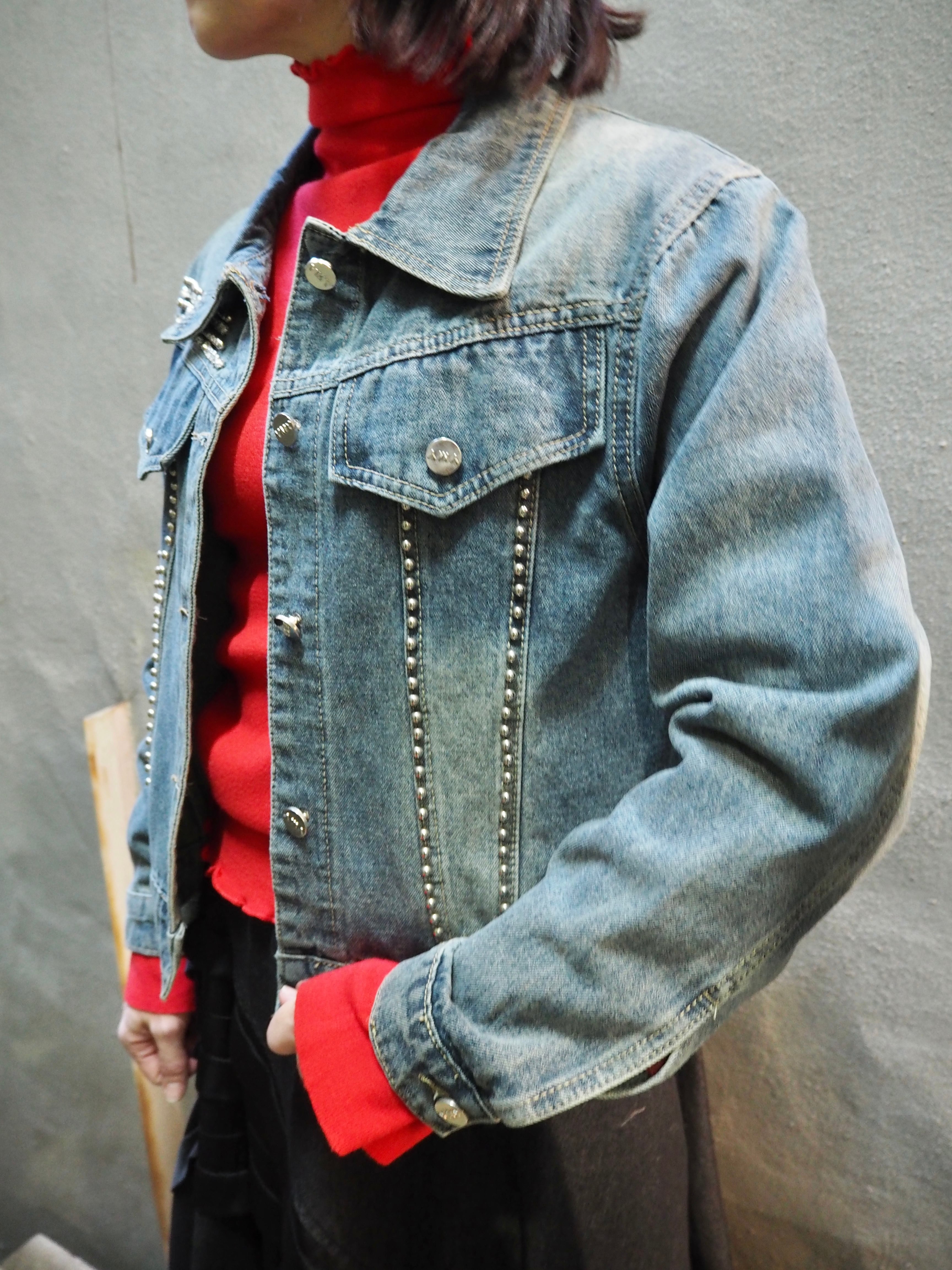 ストーンとシルバーボールが魅力的なデニムジャケットです☆