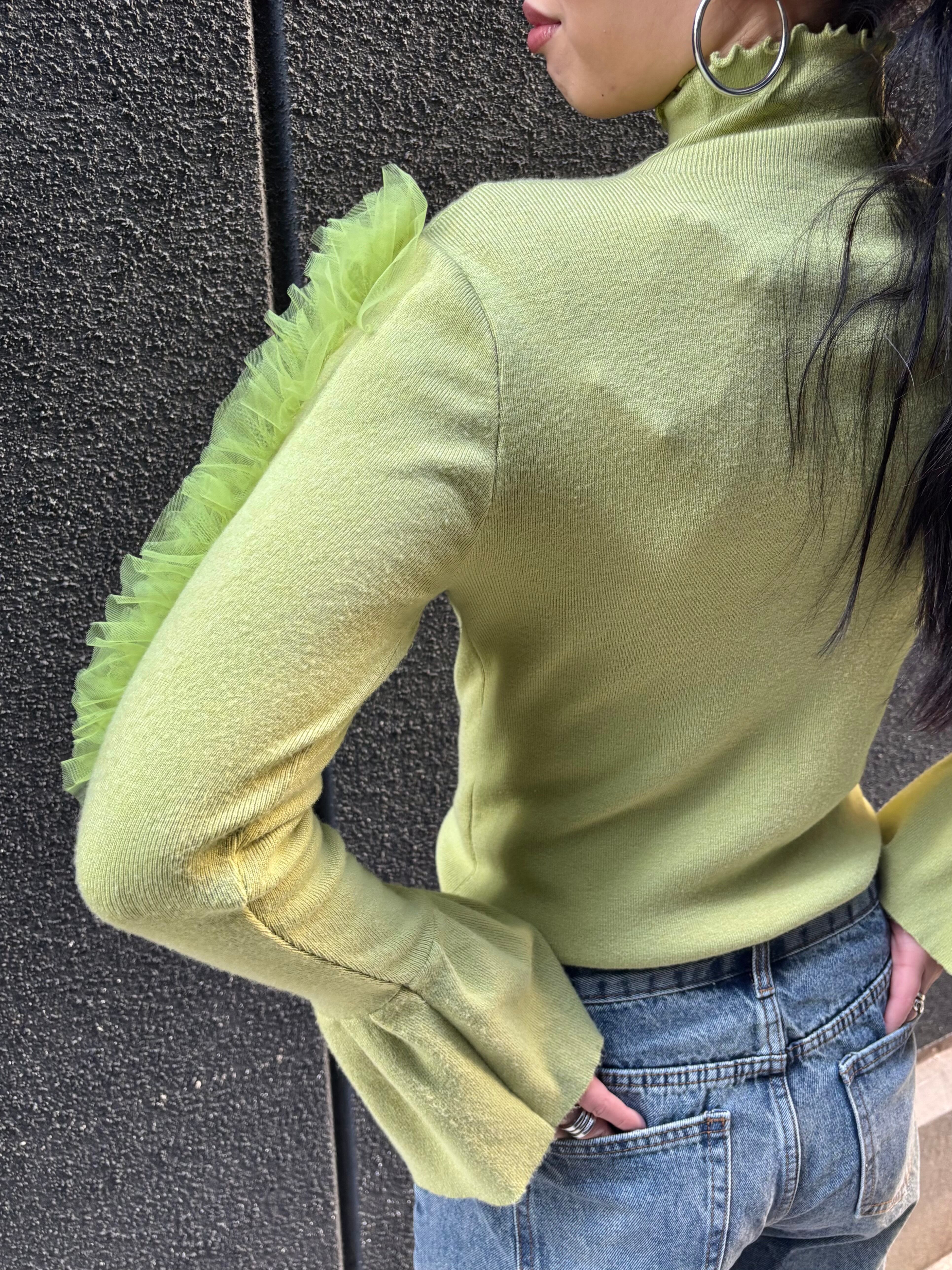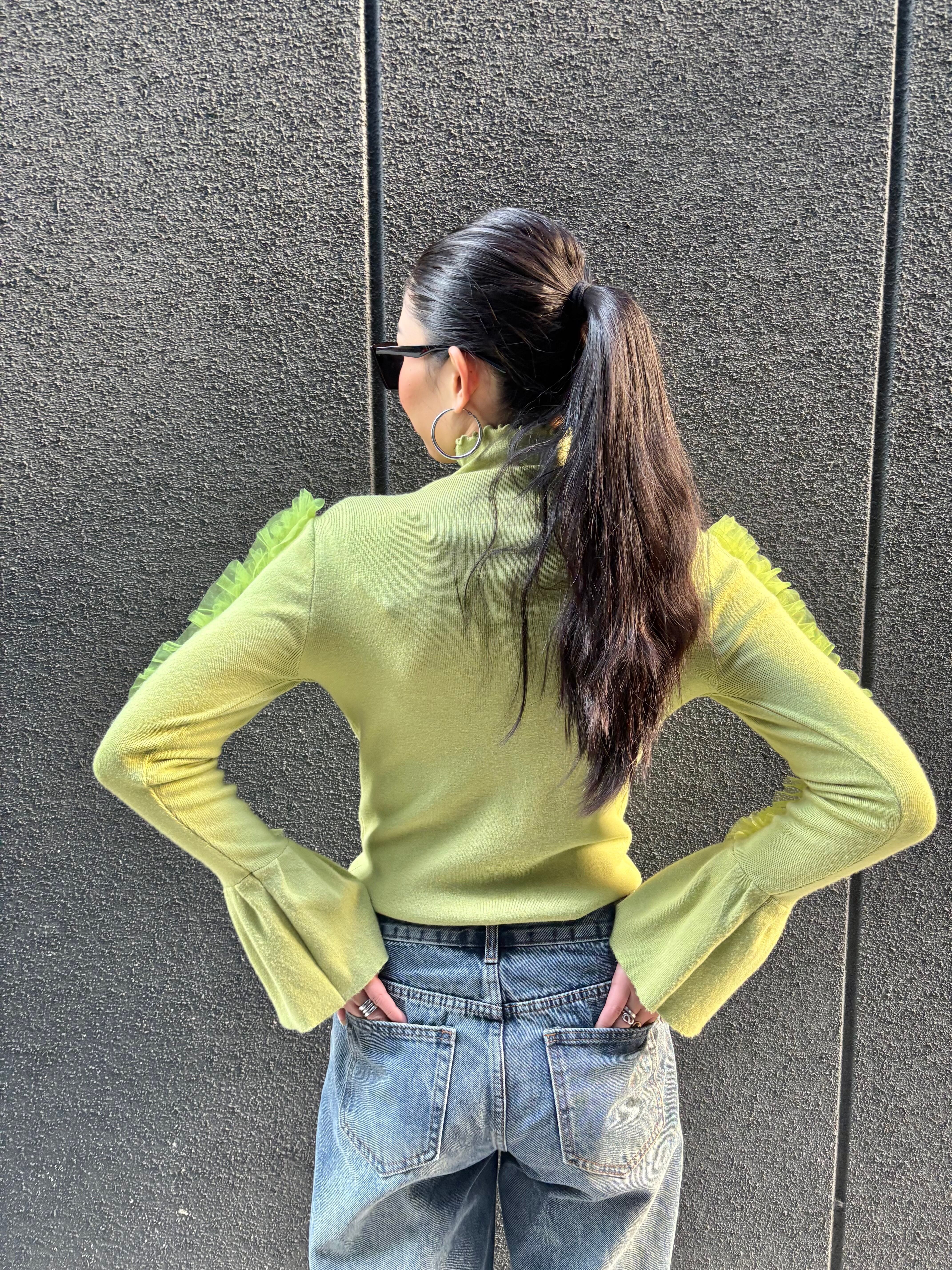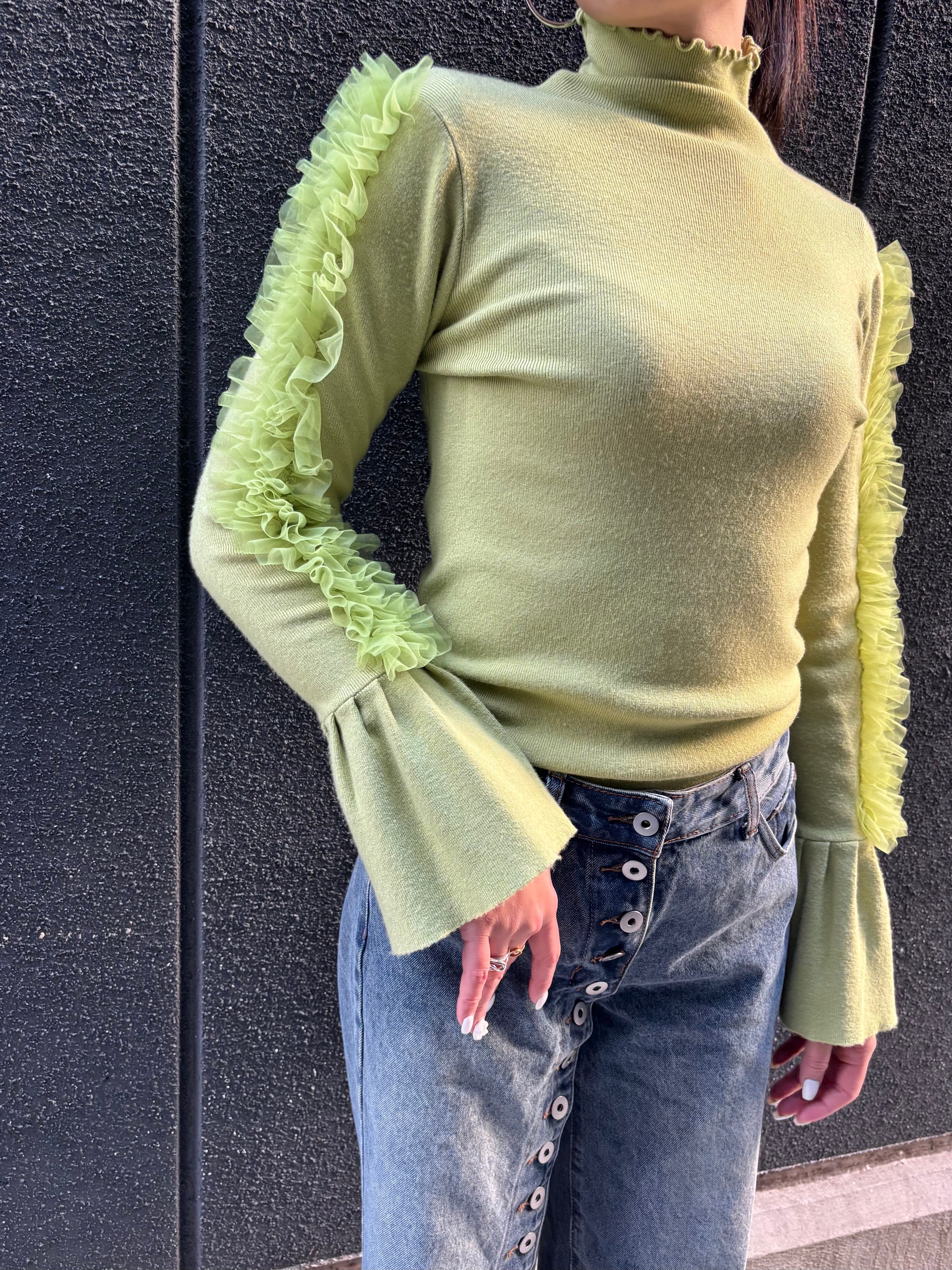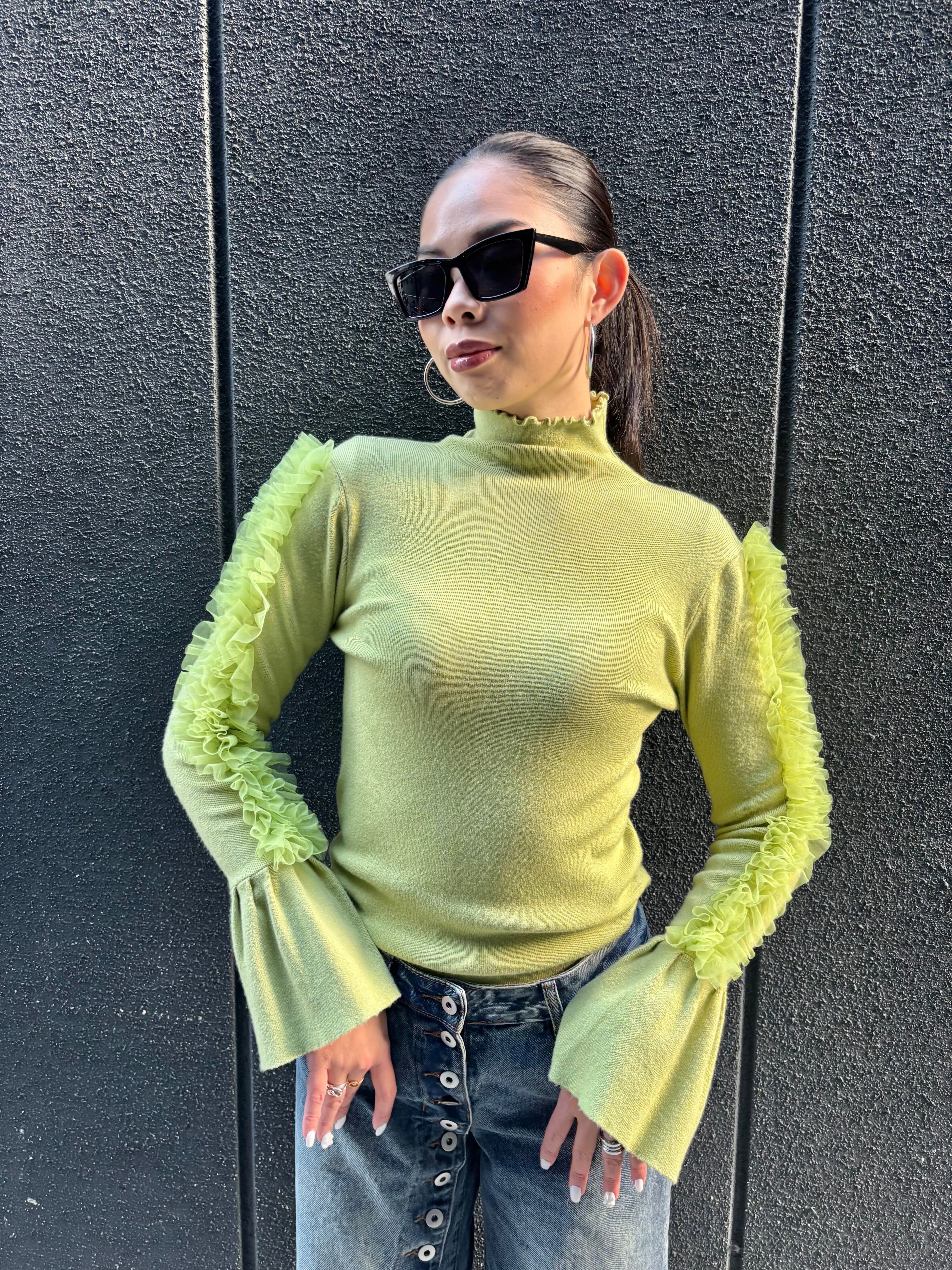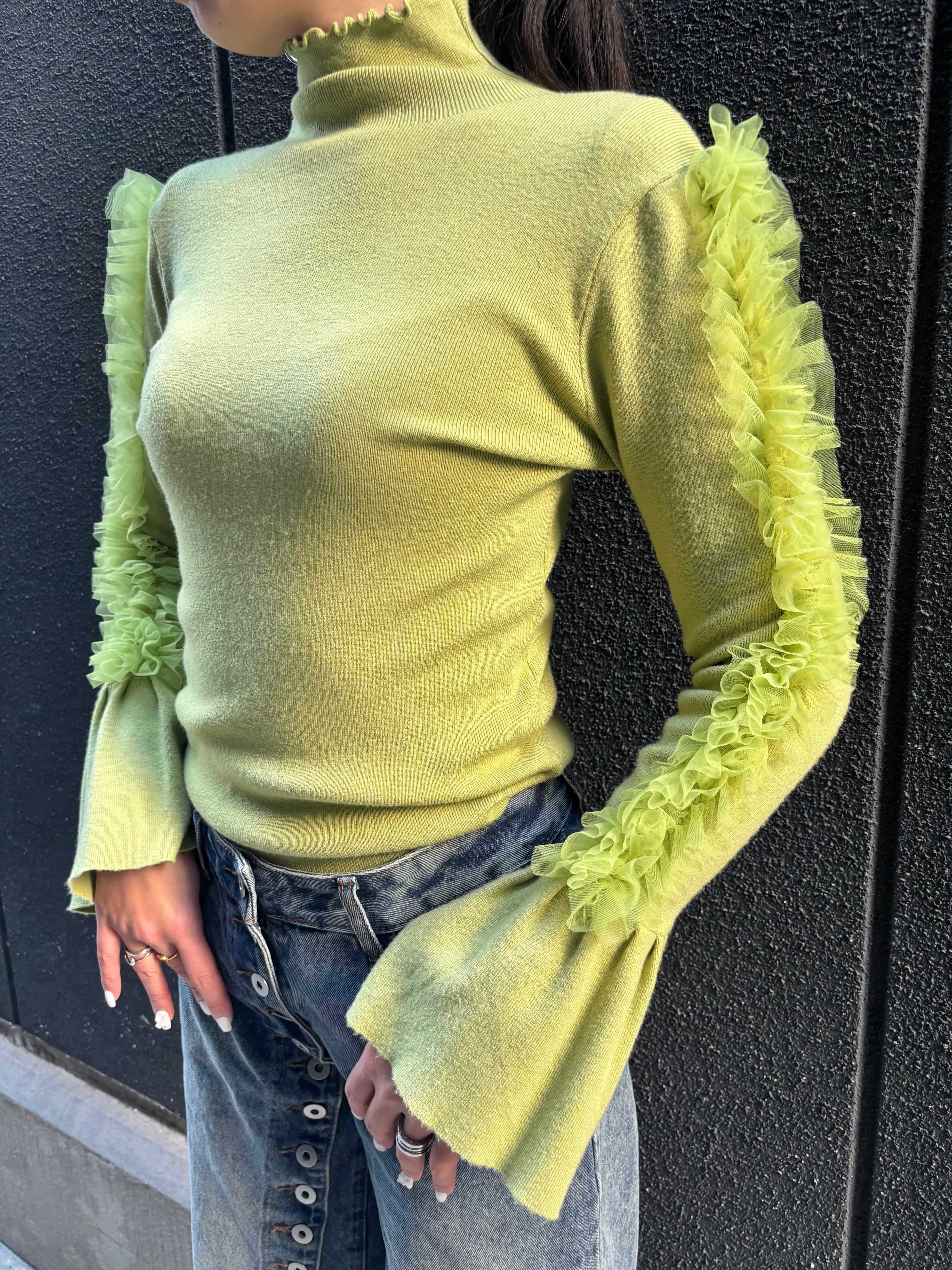 tulle frill sleeve × high neck design tops トップス ハイネック チュール フリル デザイントップス