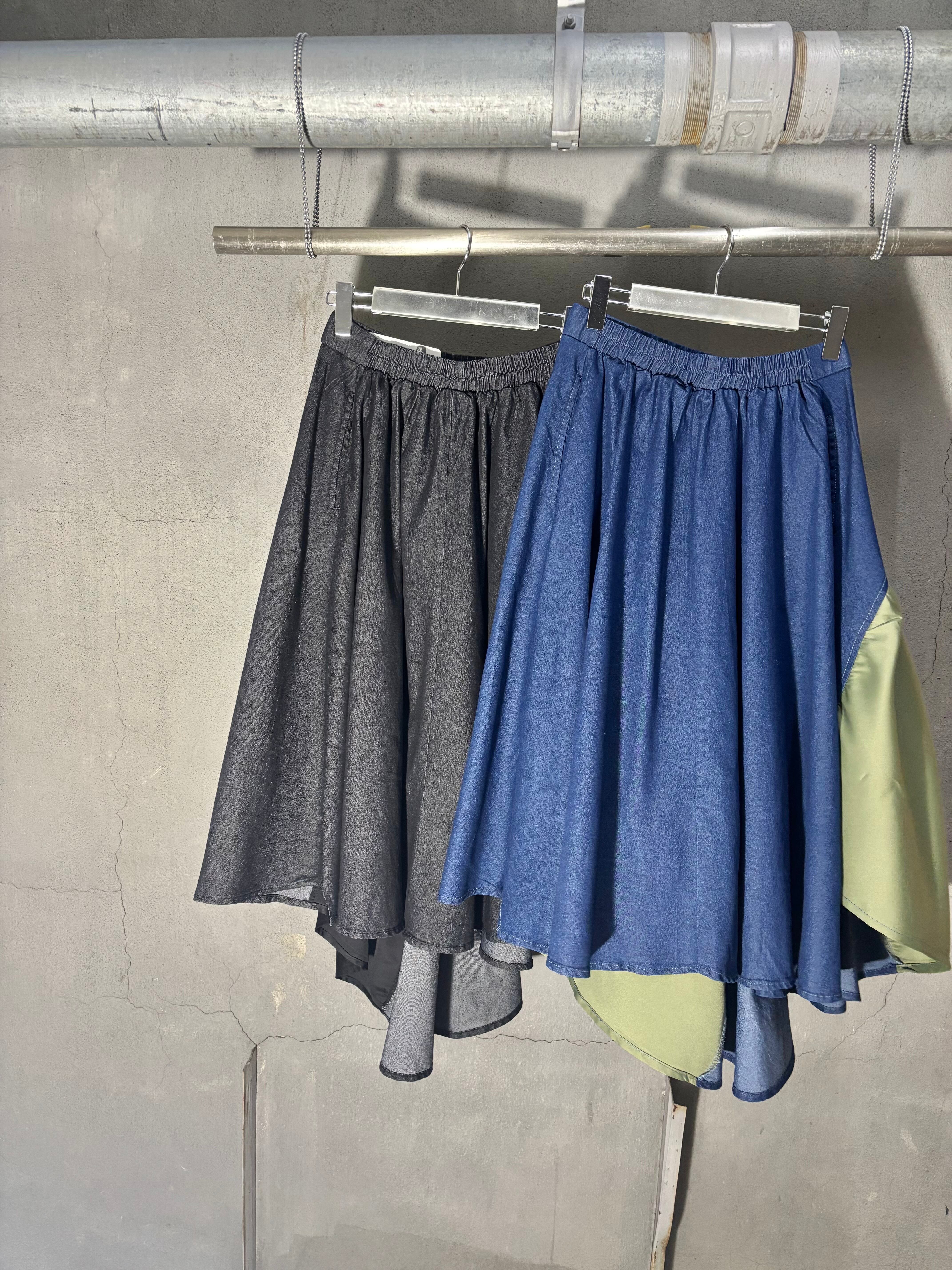 different fabrics irregular design denim skirt スカート デニム 異素材切替 デザインスカート
