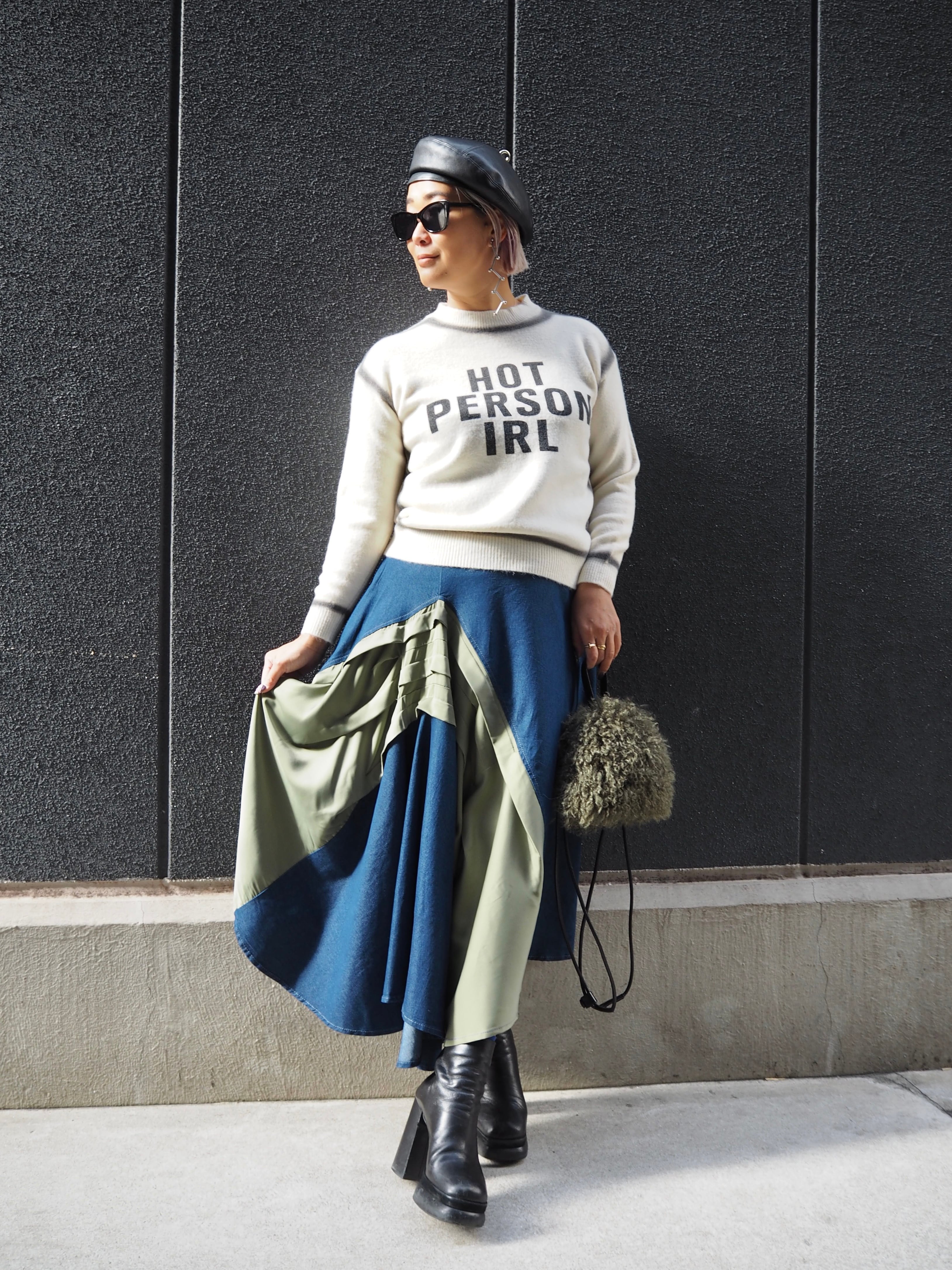 おしゃれで個性的な異素材切替デザインのデニムスカートが新登場!