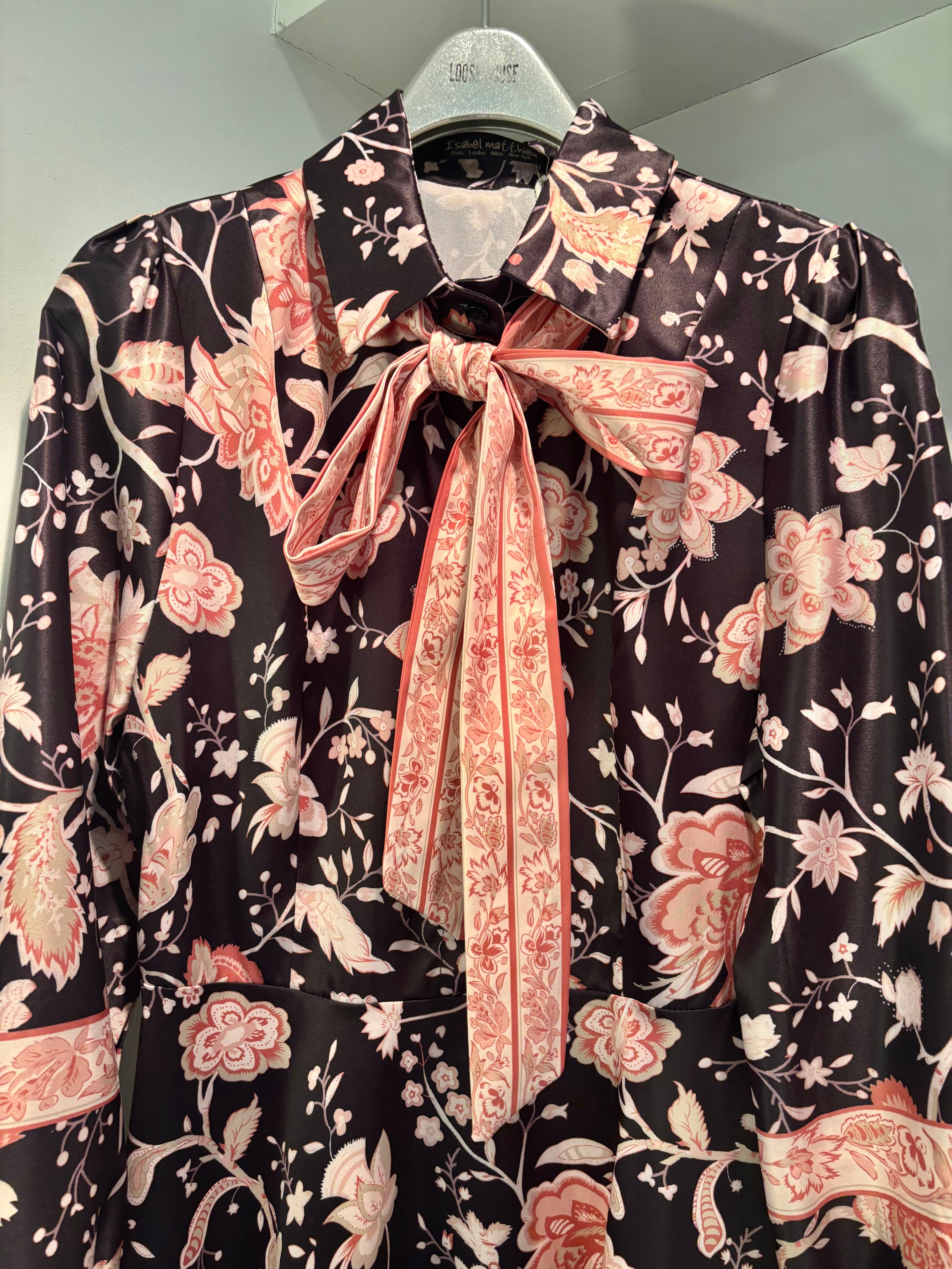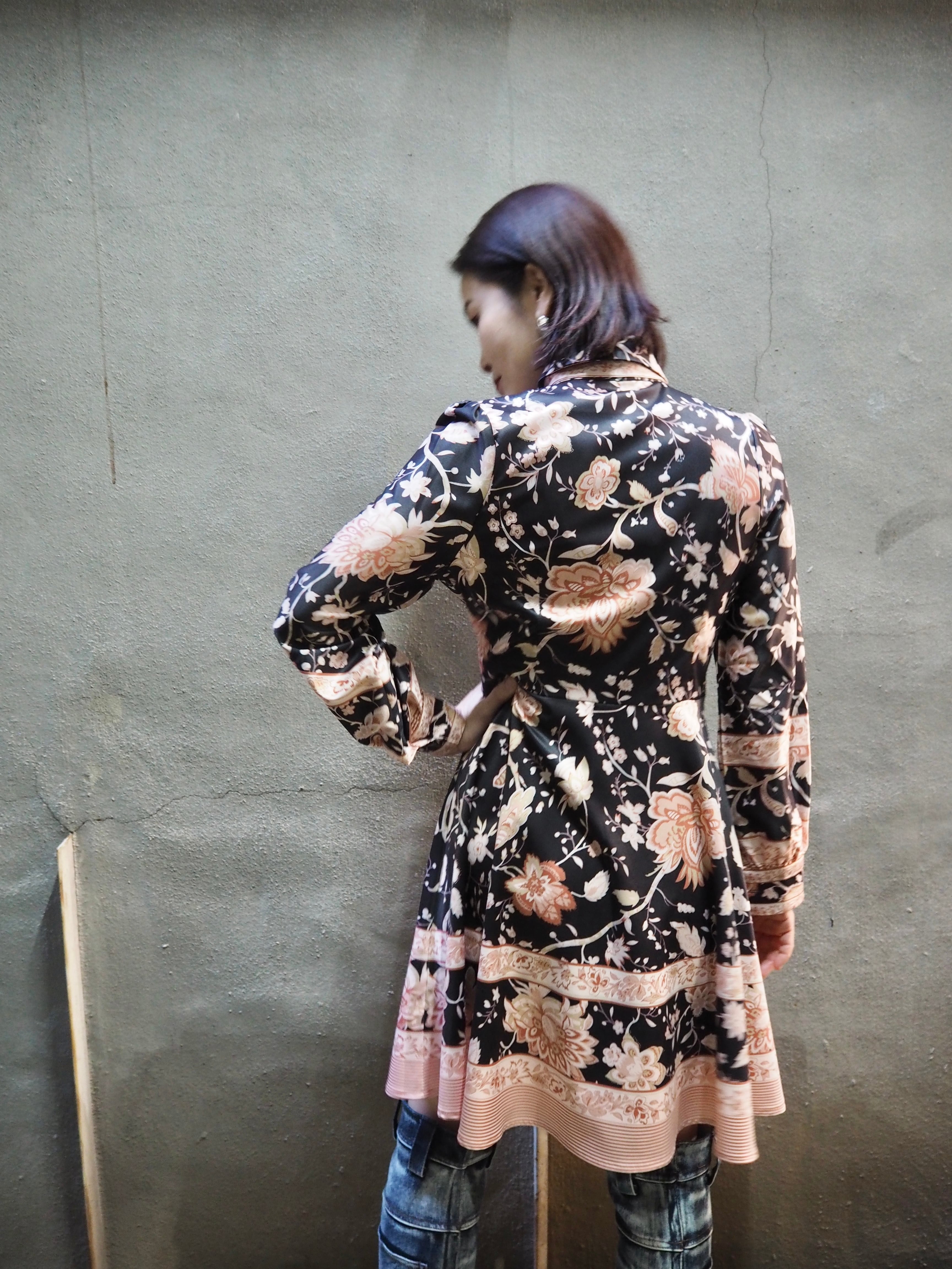 pink flower print shirt collar ribbon belt mini one-piece ワンピース 花柄 柄ワンピ リボンベルト ボウタイリボン 襟付き