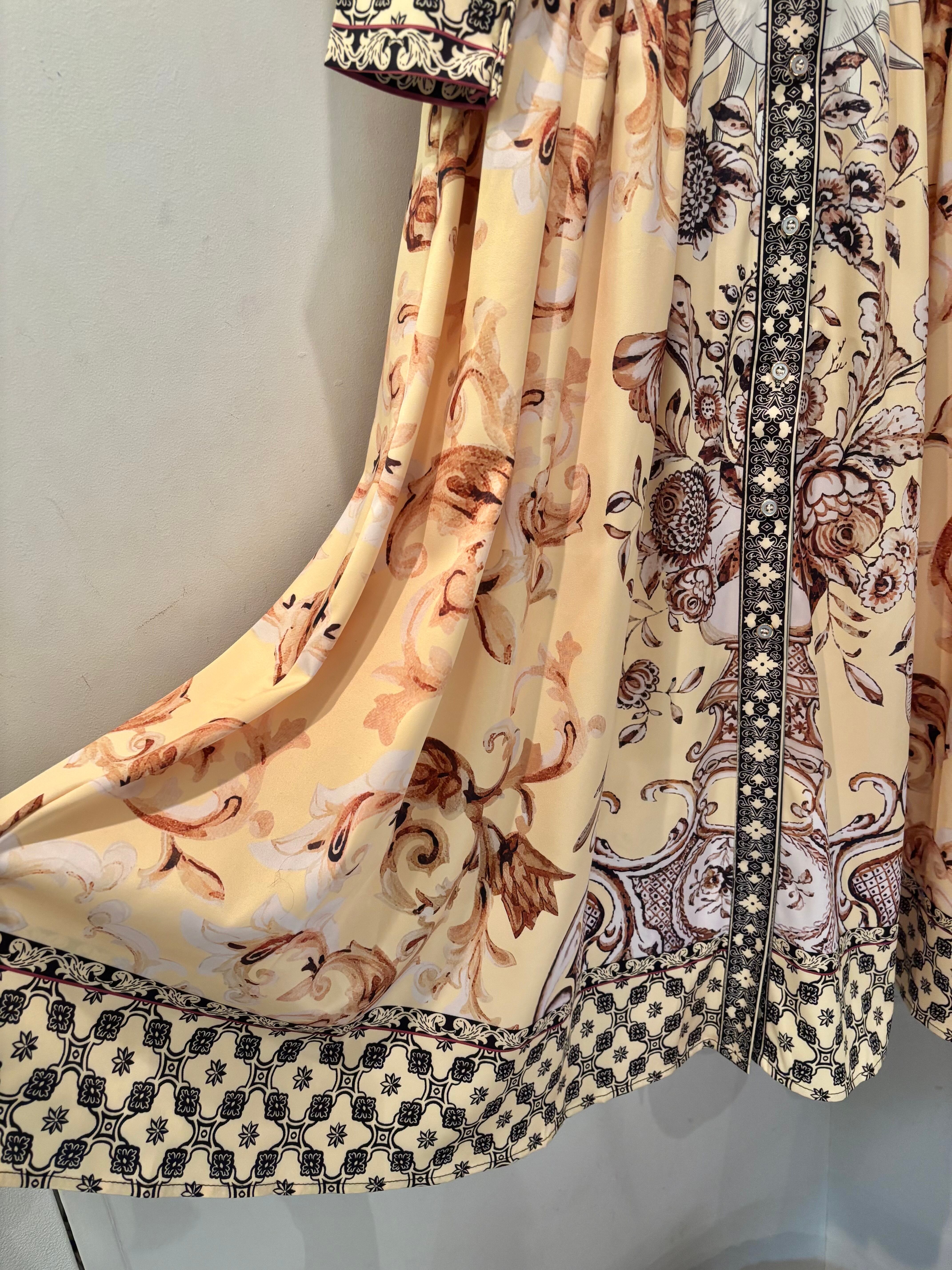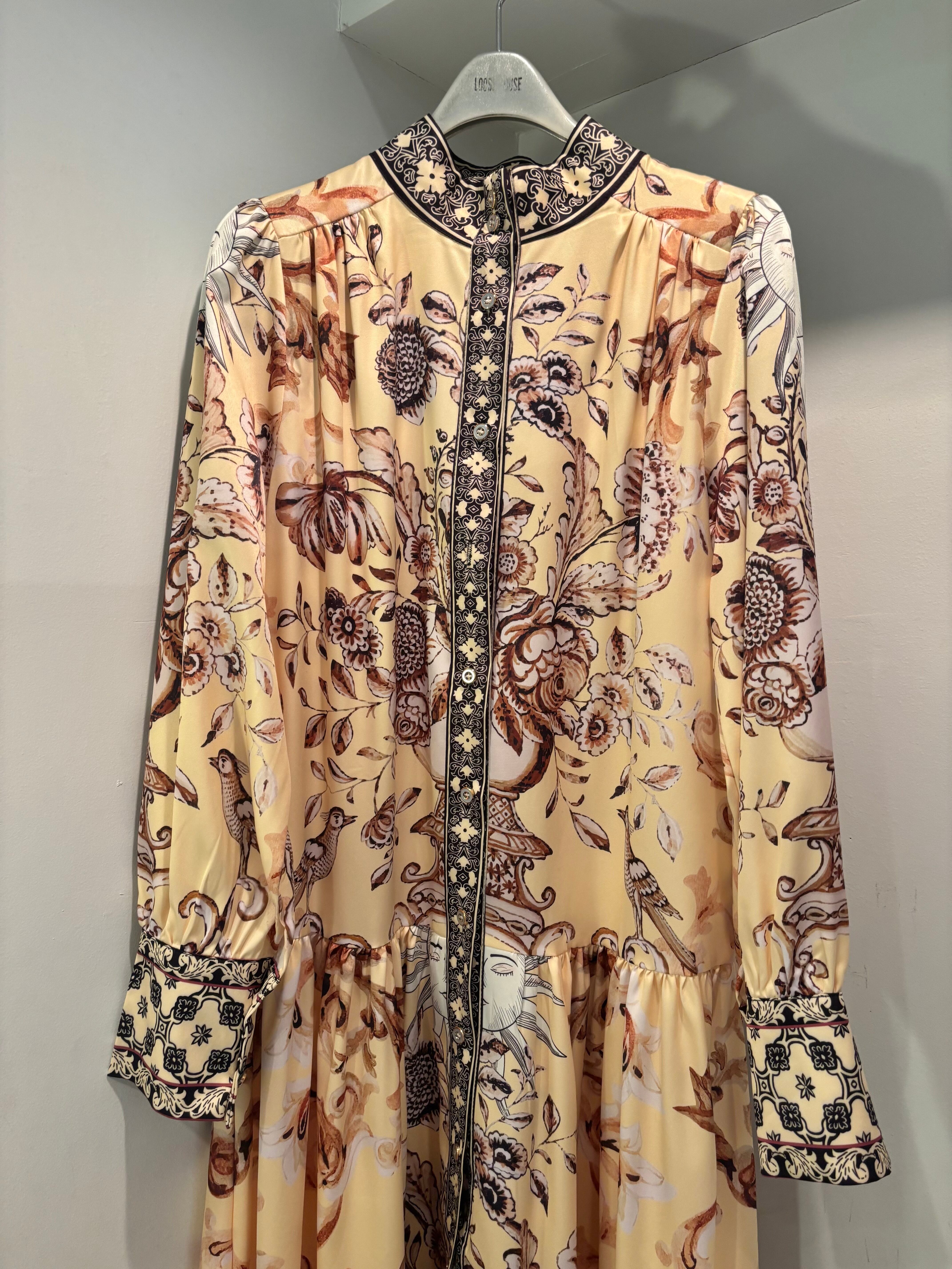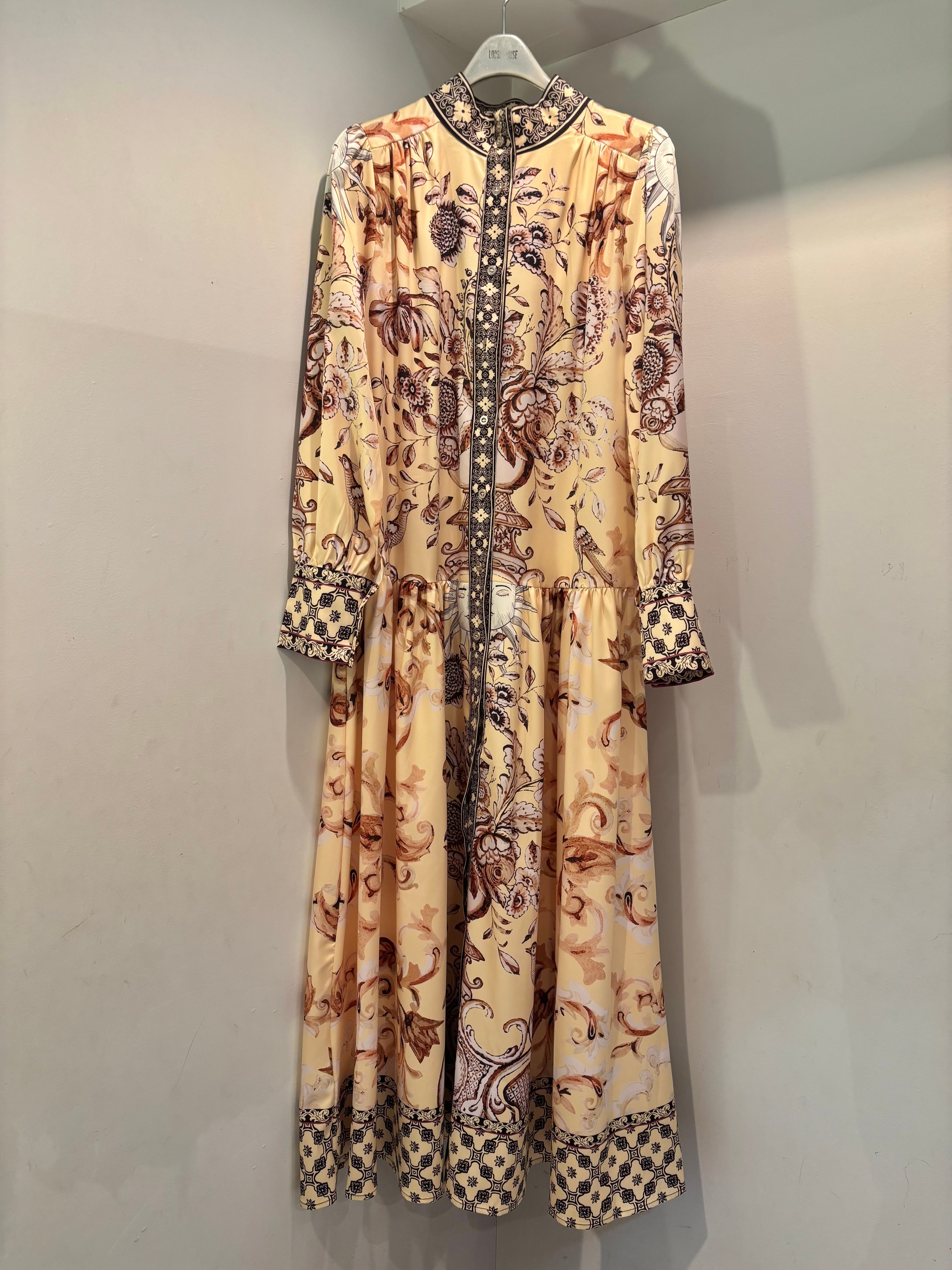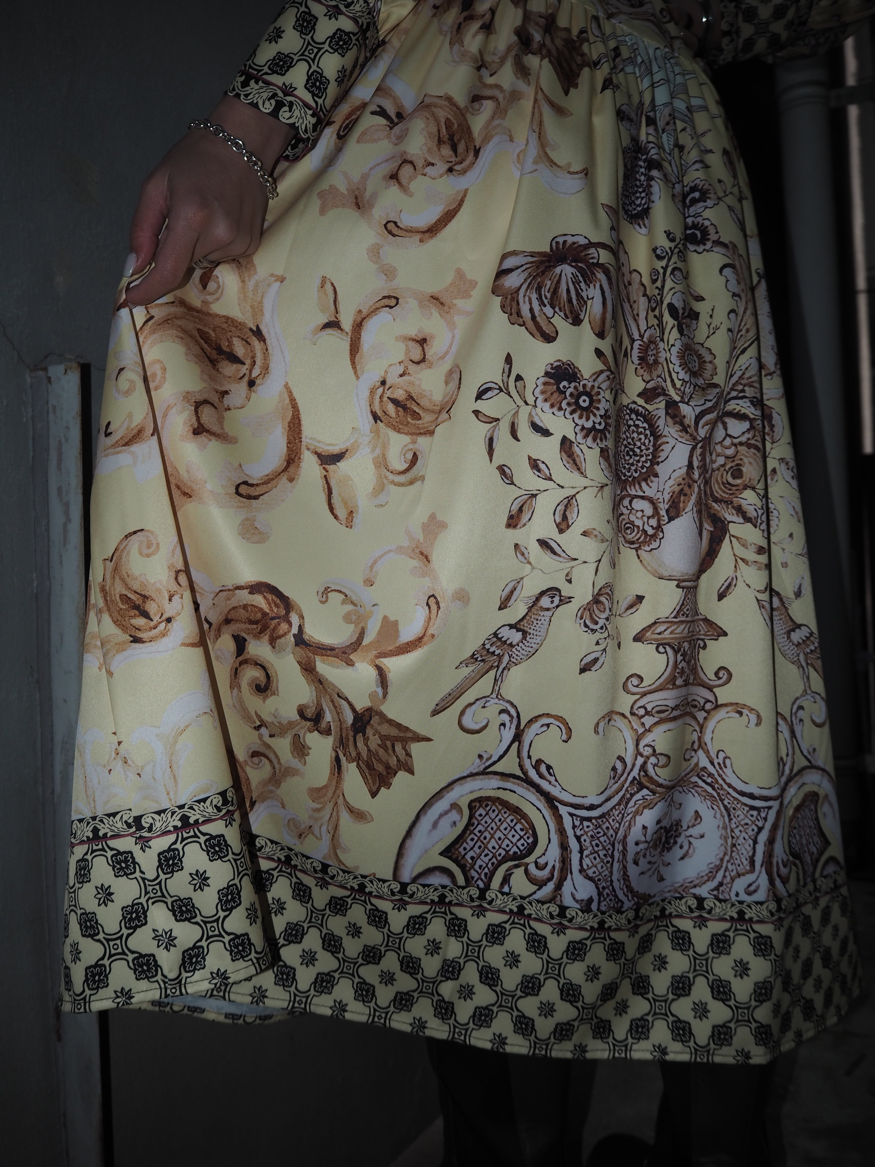 flower print stand neck design long one-piece ワンピース 柄ワンピ ロングワンピ スタンドネック リボンベルト