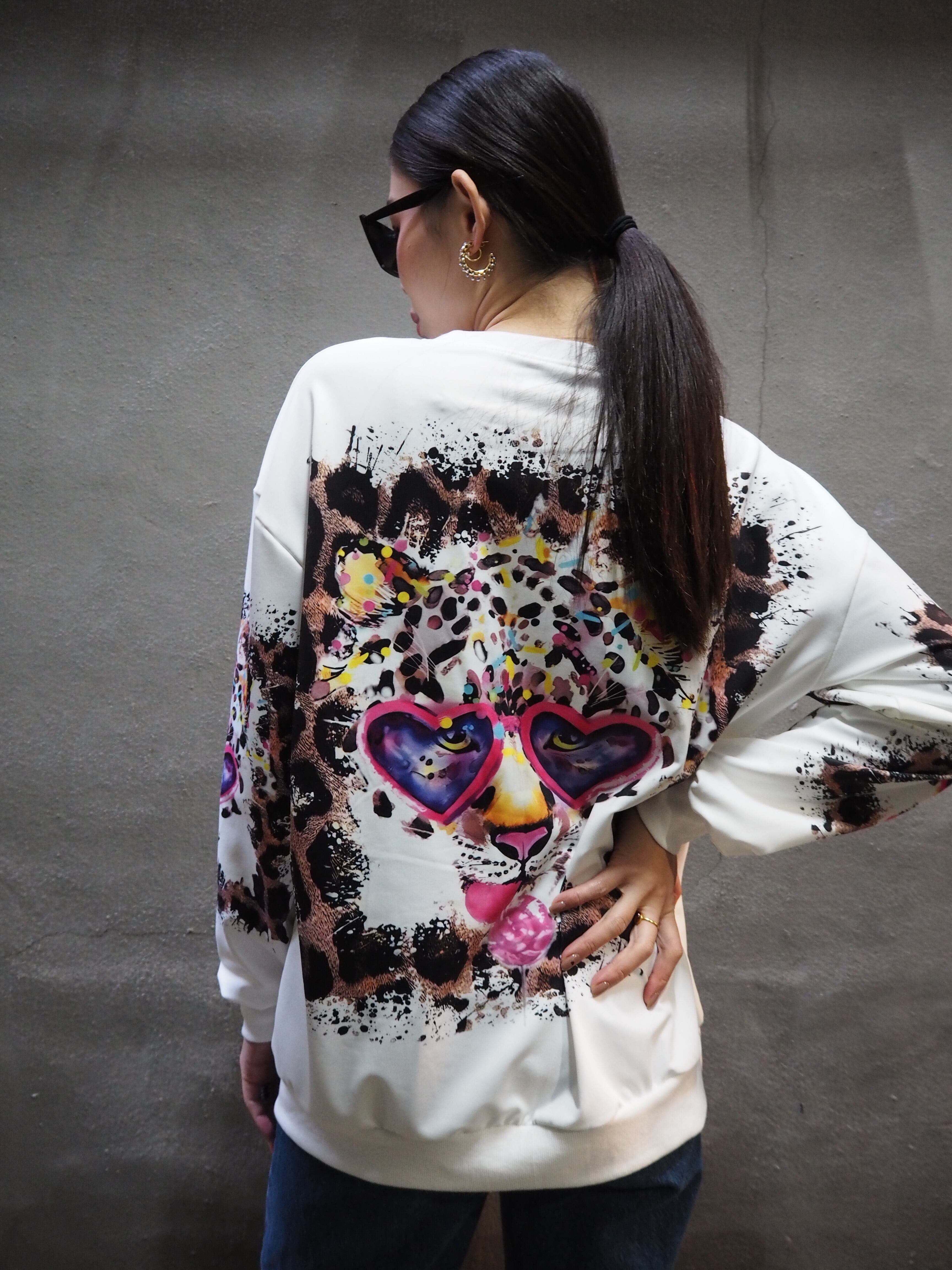 heart × decoration leopard tops トップス レオパード ハート デコレーション ロングスリーブ 長袖