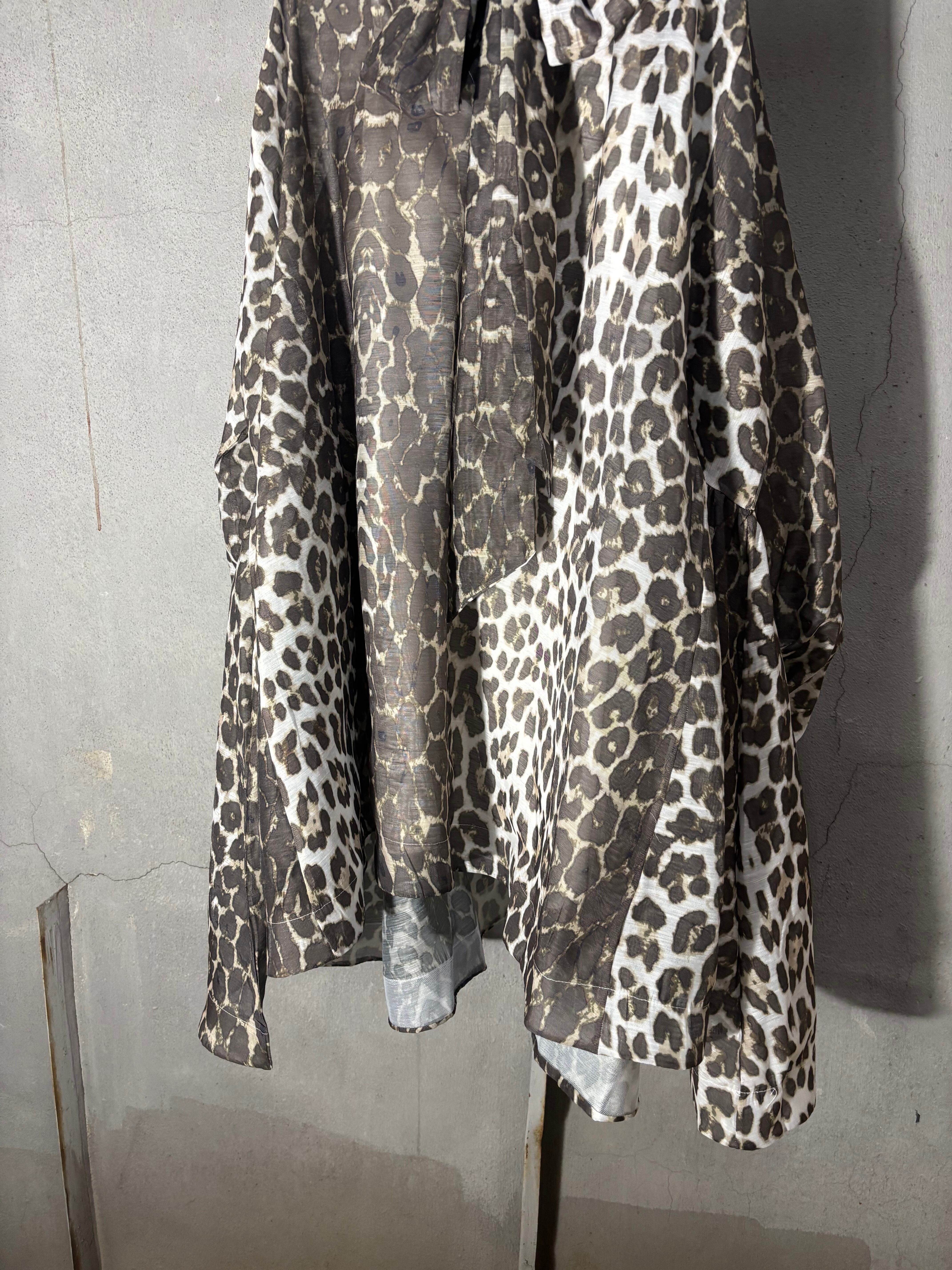 leopard volume flare ribbon neck design one-piece ワンピース ワンピ レオパード 豹柄 ヒョウ柄 リボン ボリューム インナー付き キャミワンピ