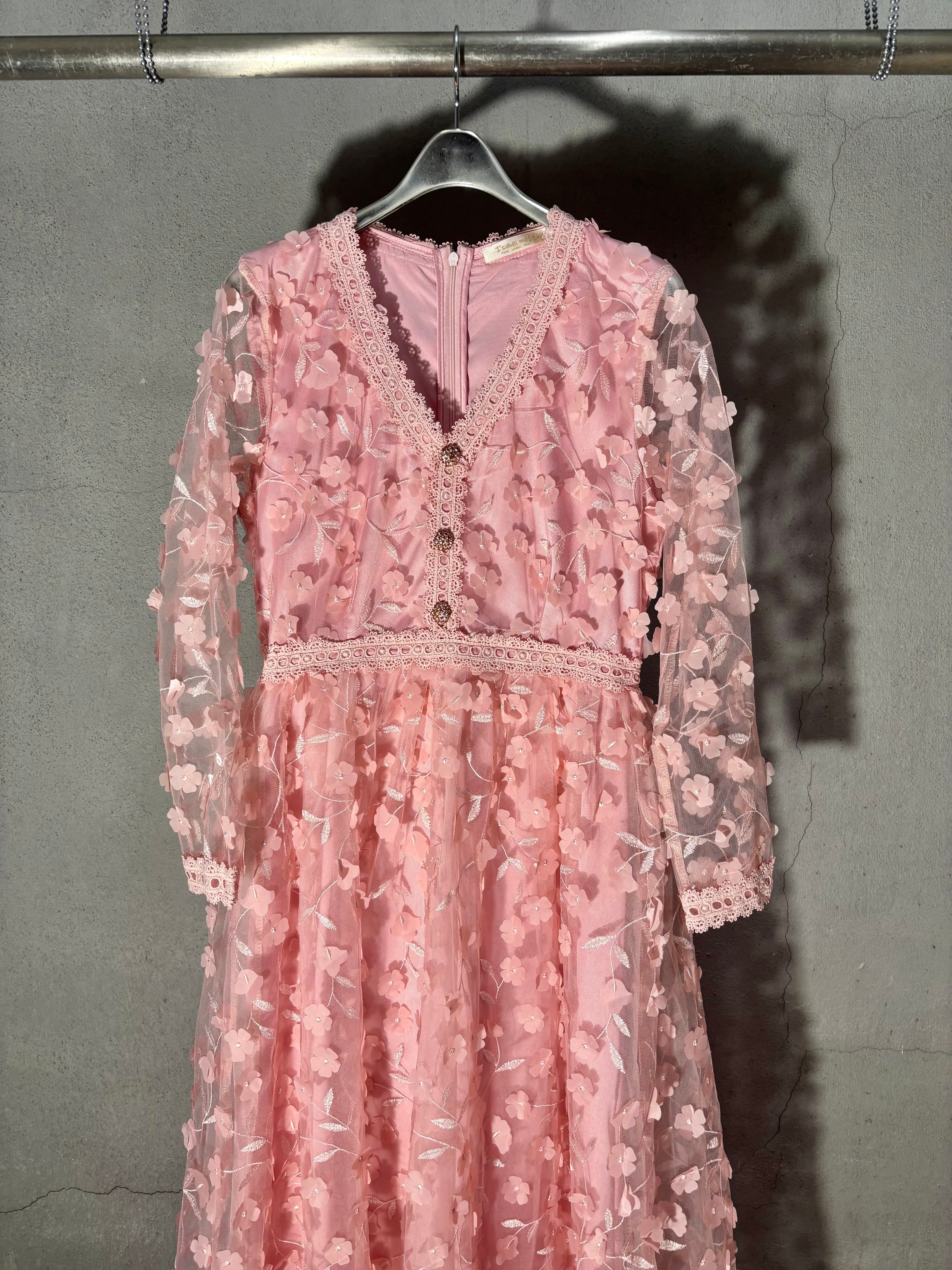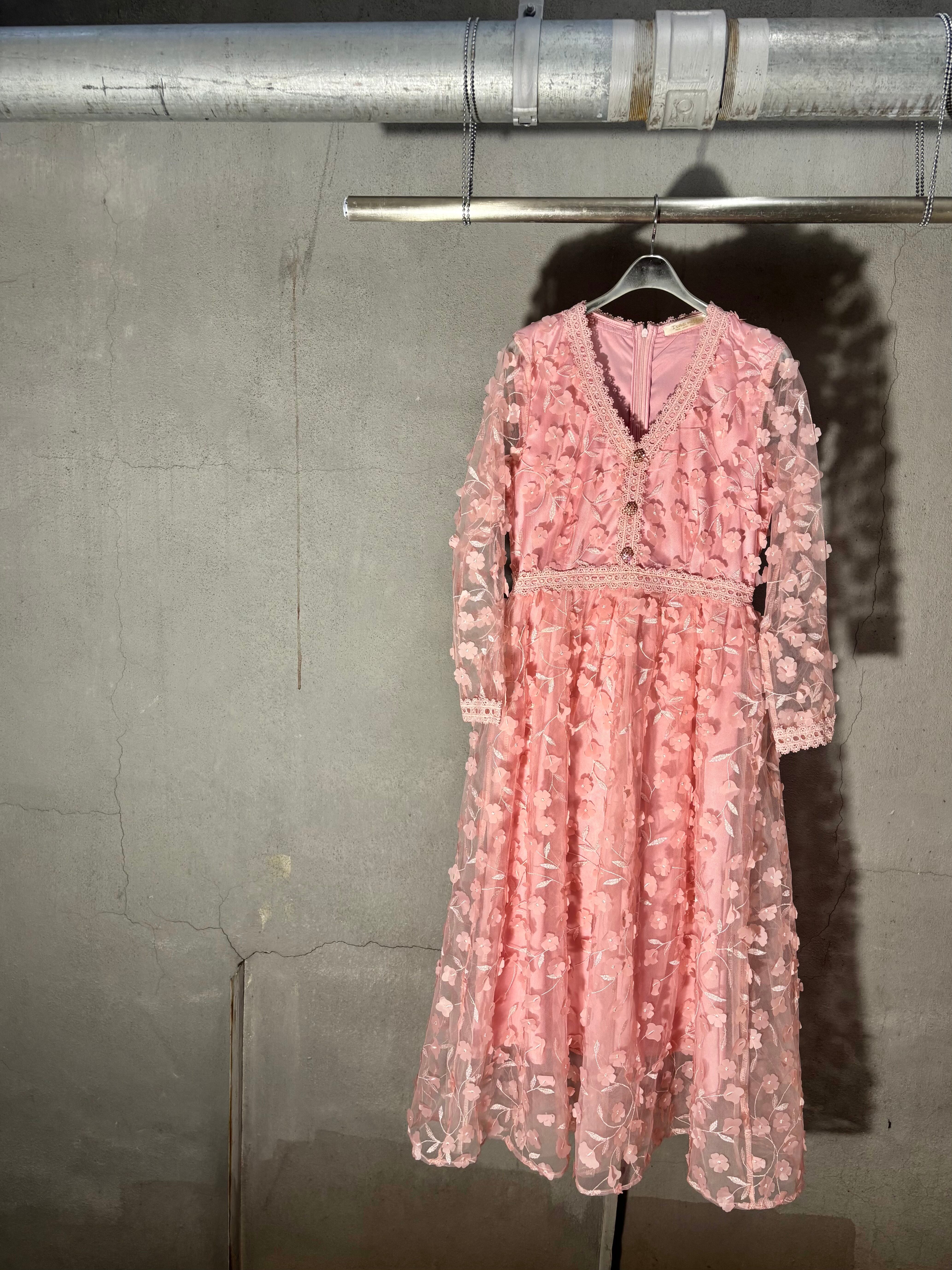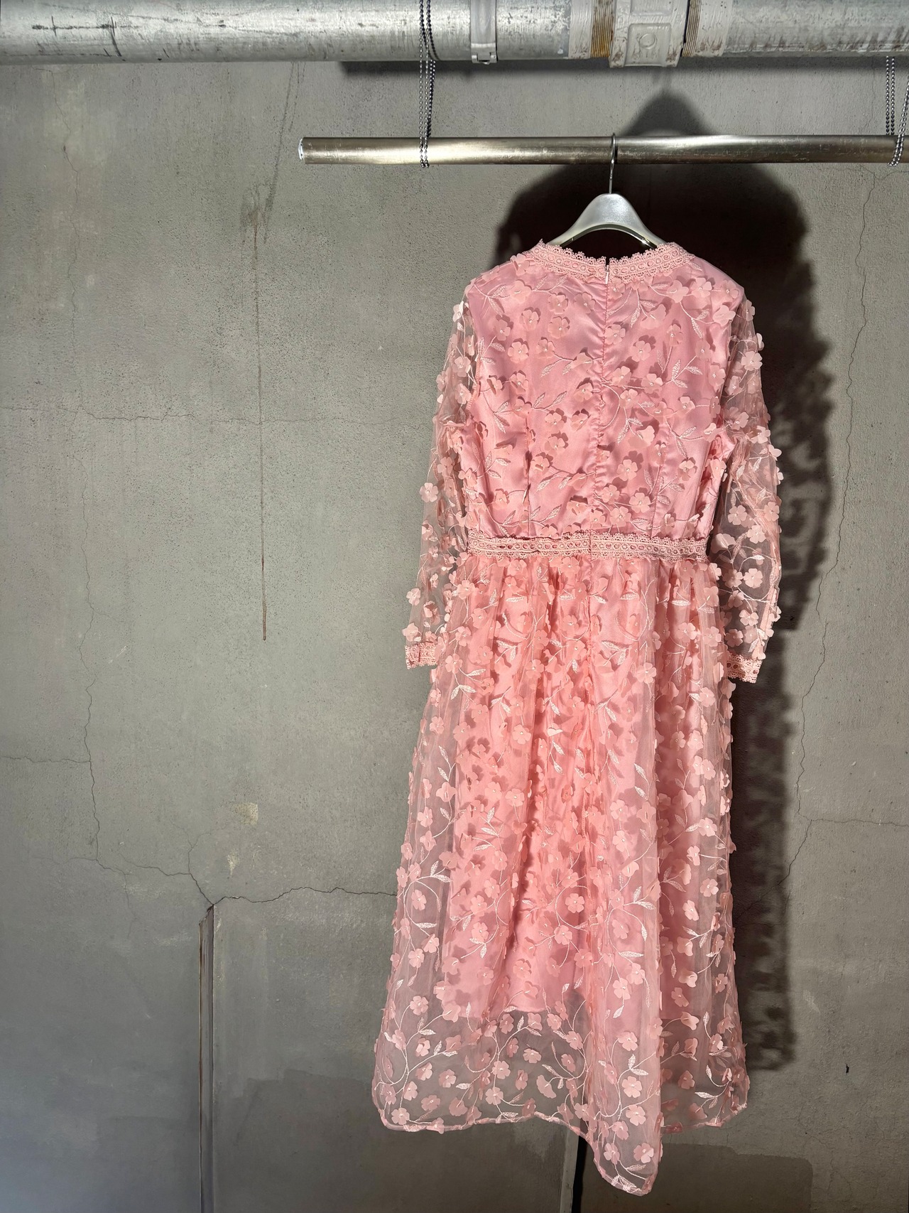 flower tulle lace V-neck one-piece ワンピース ワンピ ピンク チュール レース 花