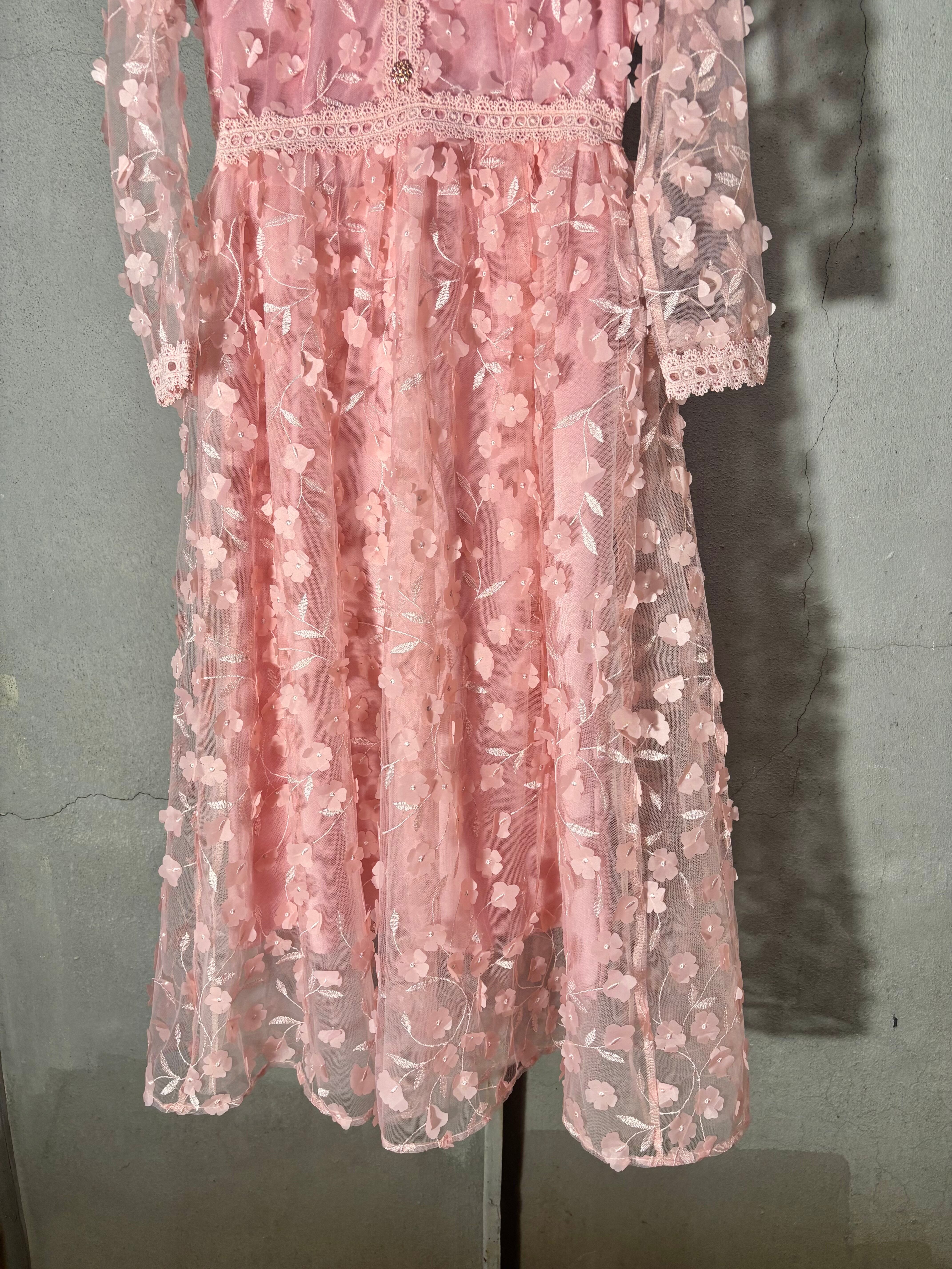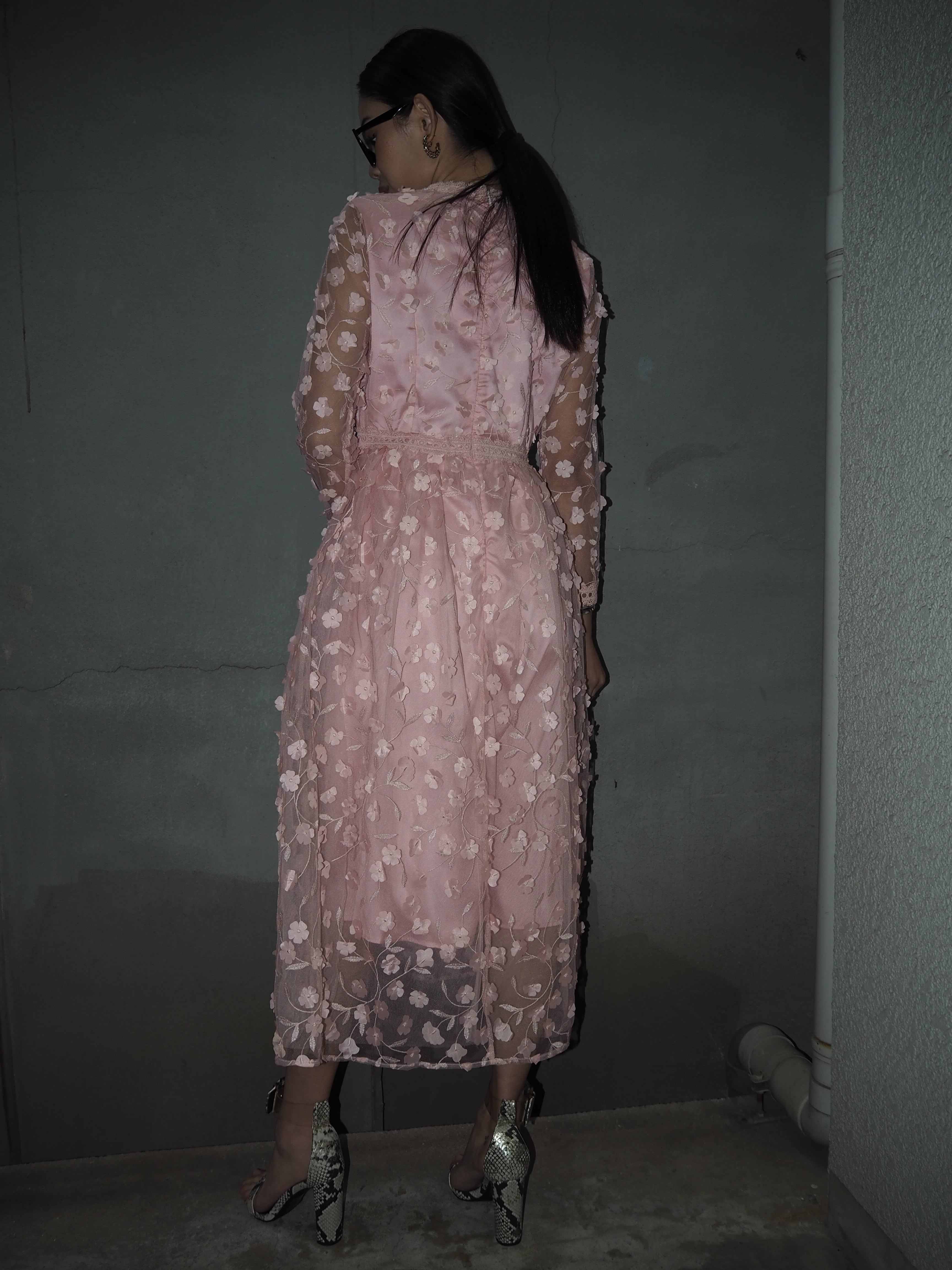 ピンクの花を纏った、エレガントなワンピースが登場!