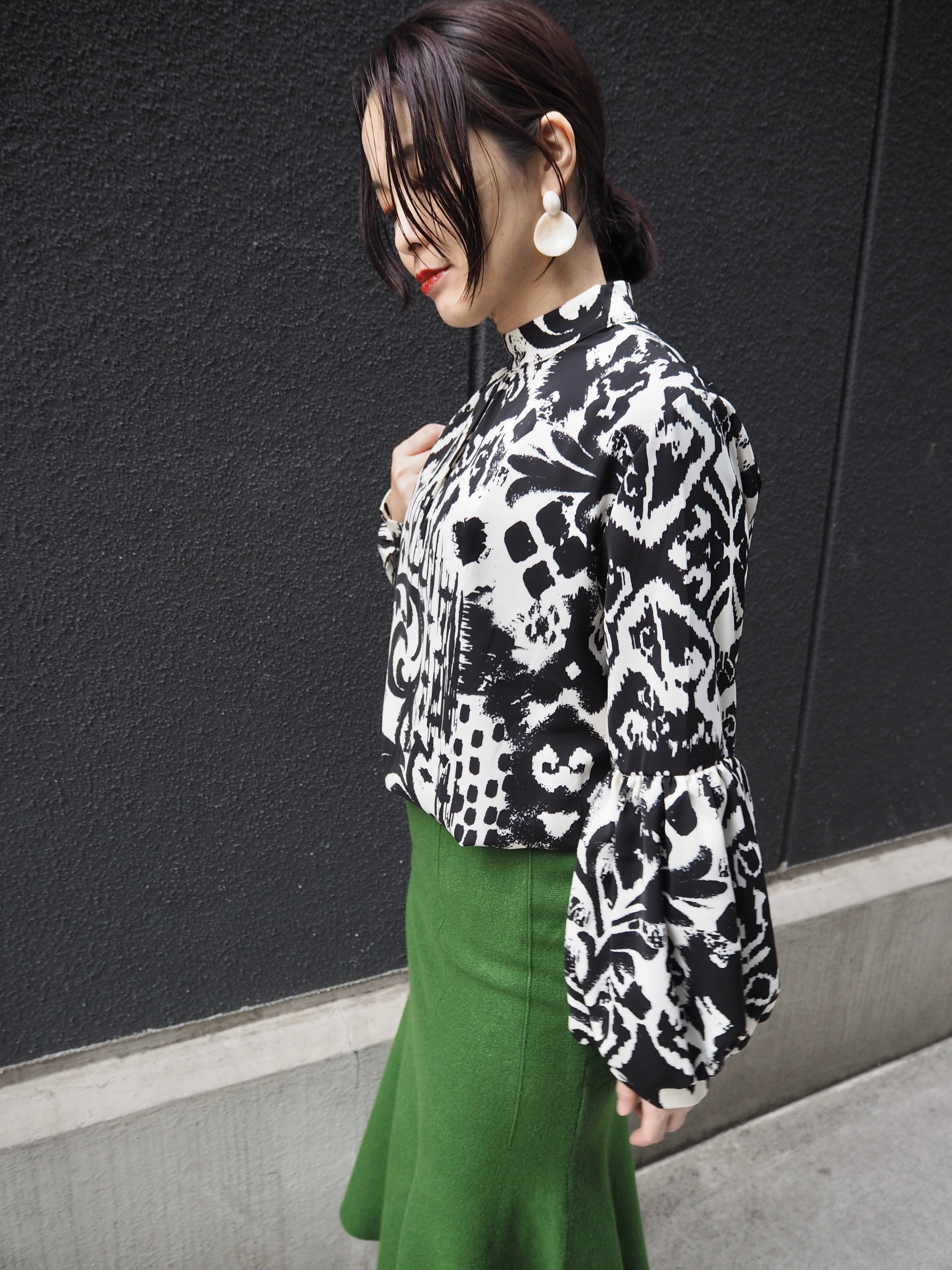bi-color lantern sleeve design tops blouse トップス ブラウス ランタンスリーブ バイカラー