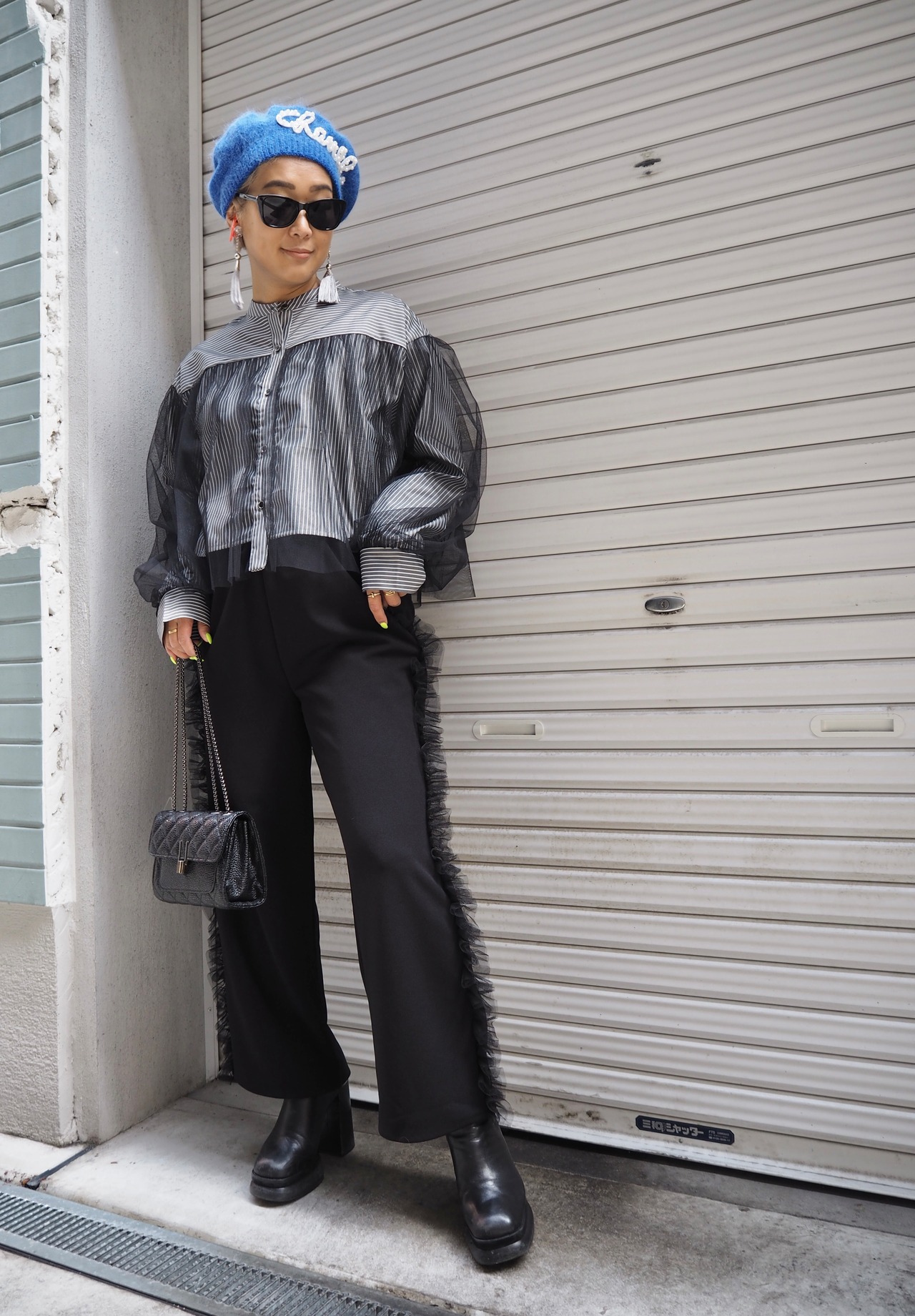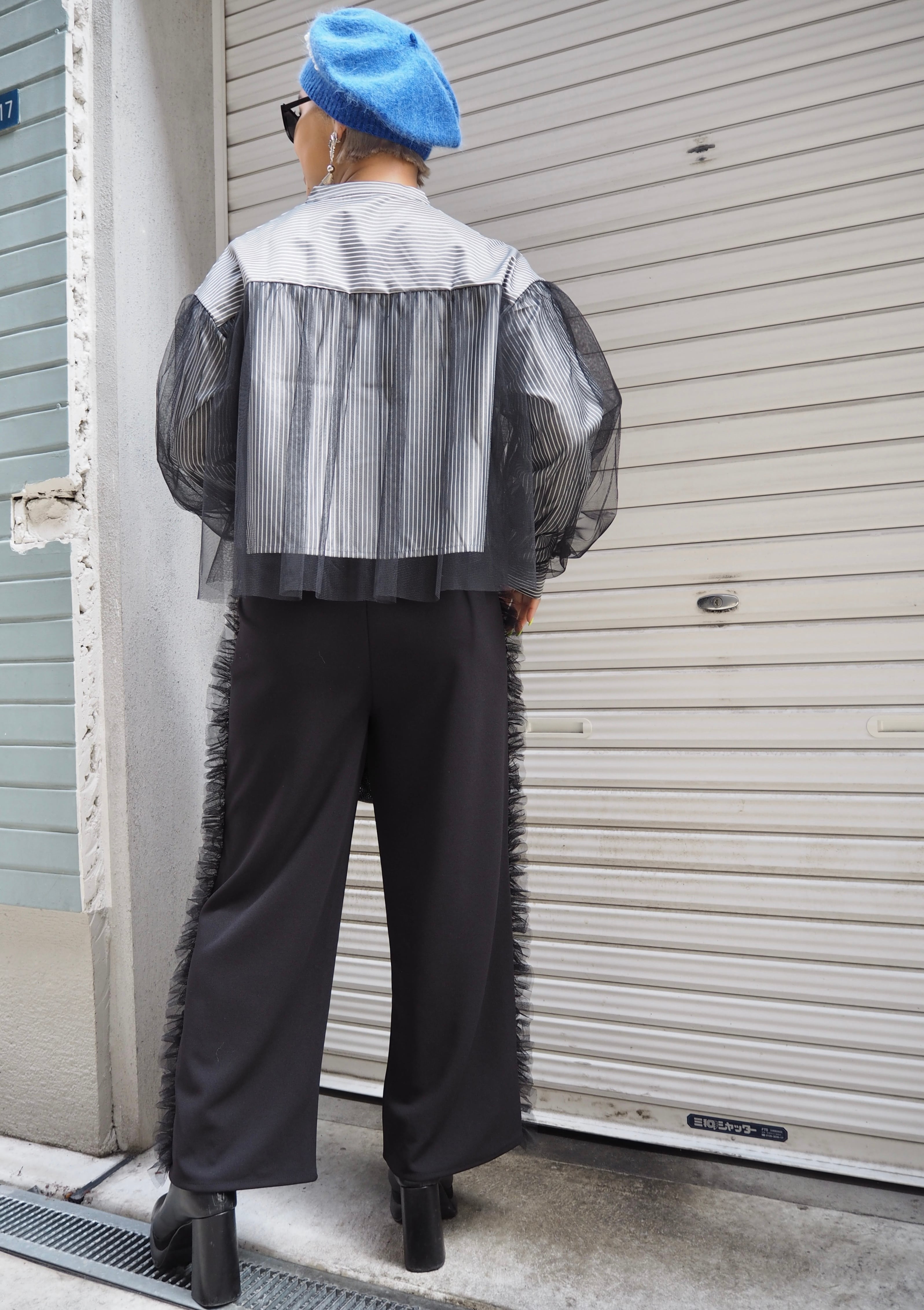 tulle cover design over shirt tops トップス シャツ チュール カバー デザインシャツ