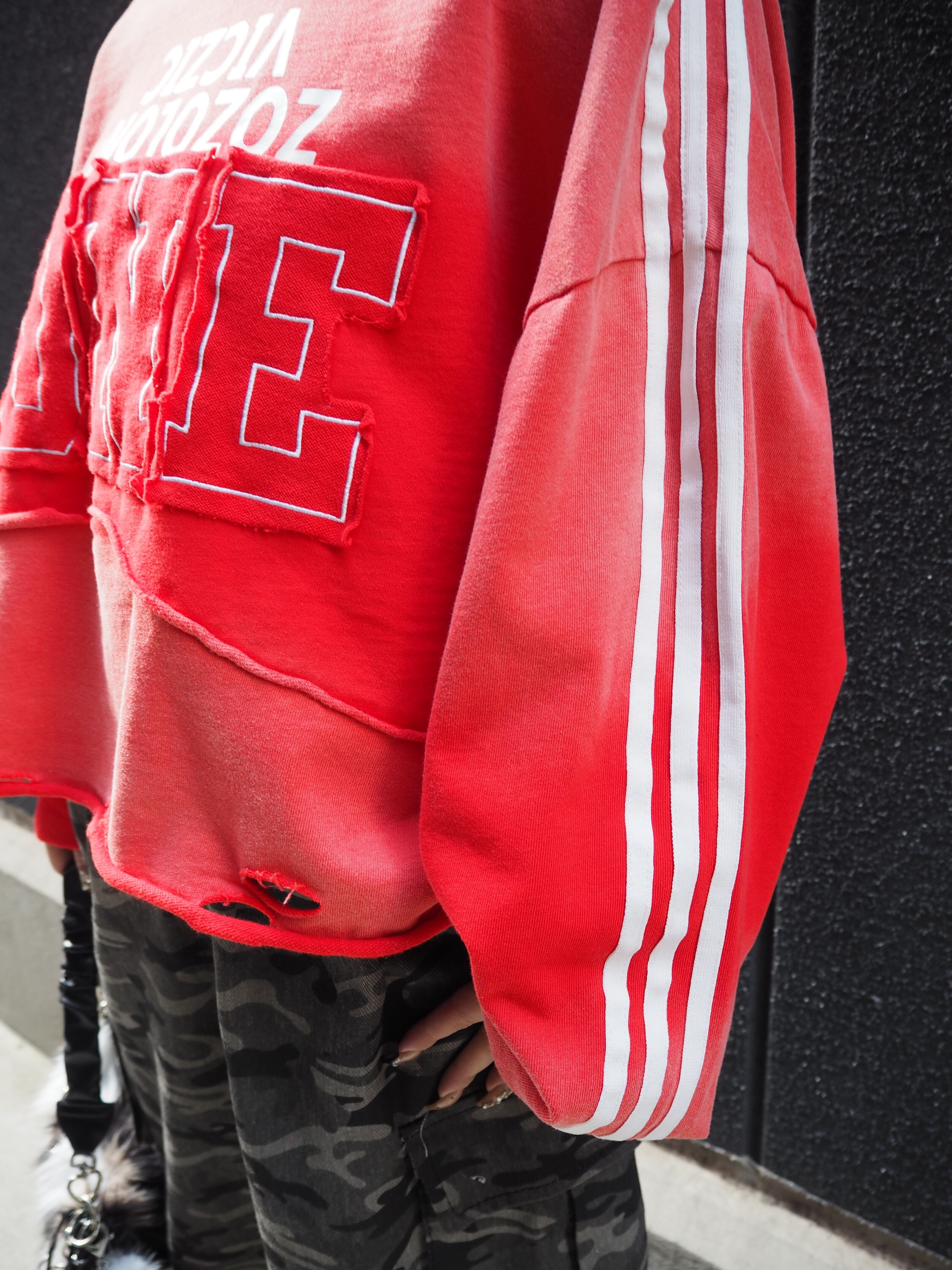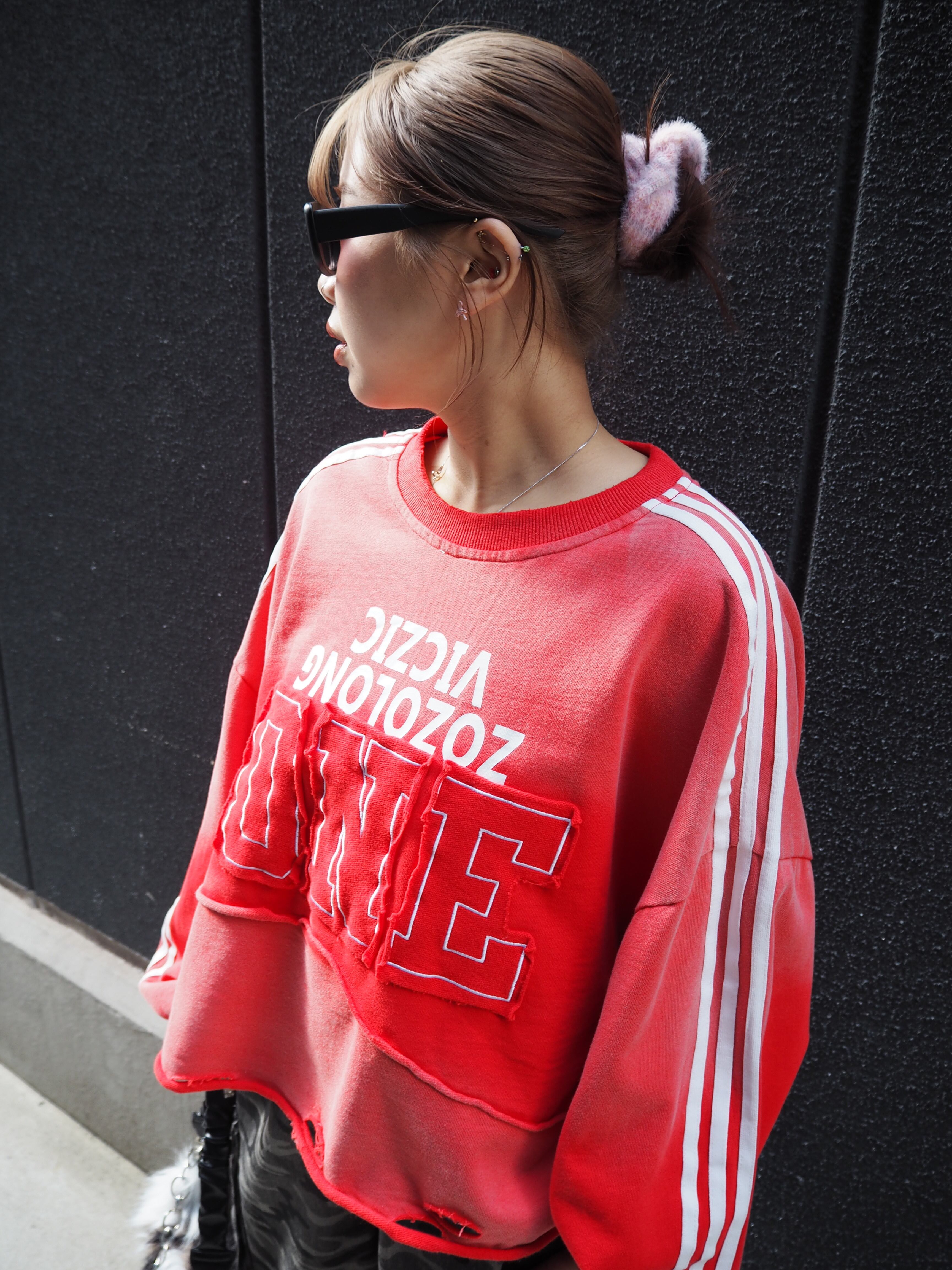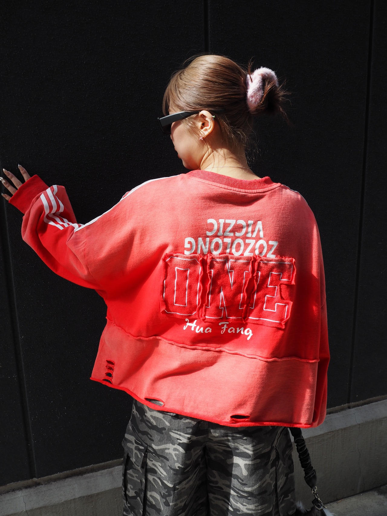 line × damage design sweat tops トップス スウェット 裏毛 ライン ダメージ カジュアル