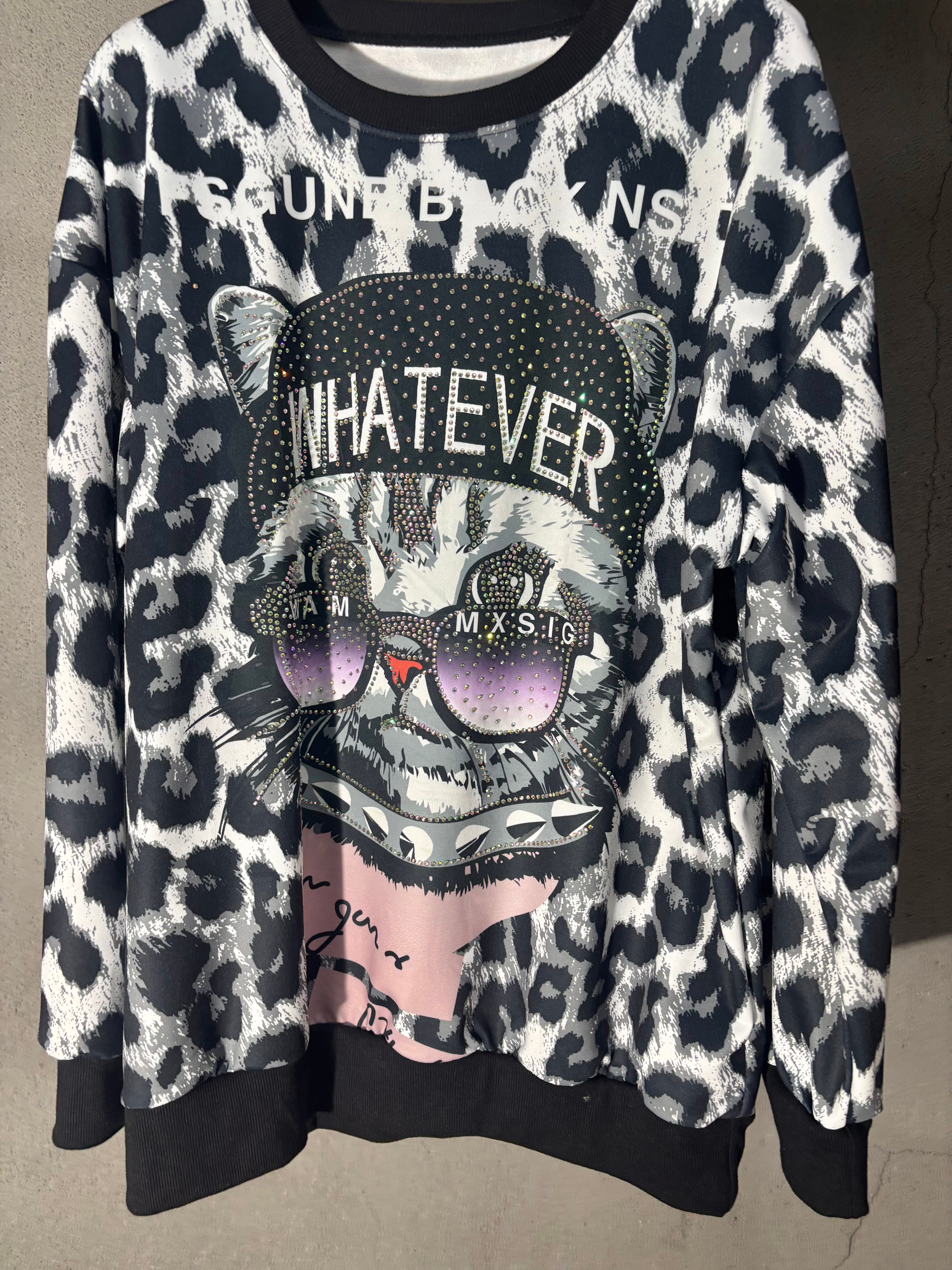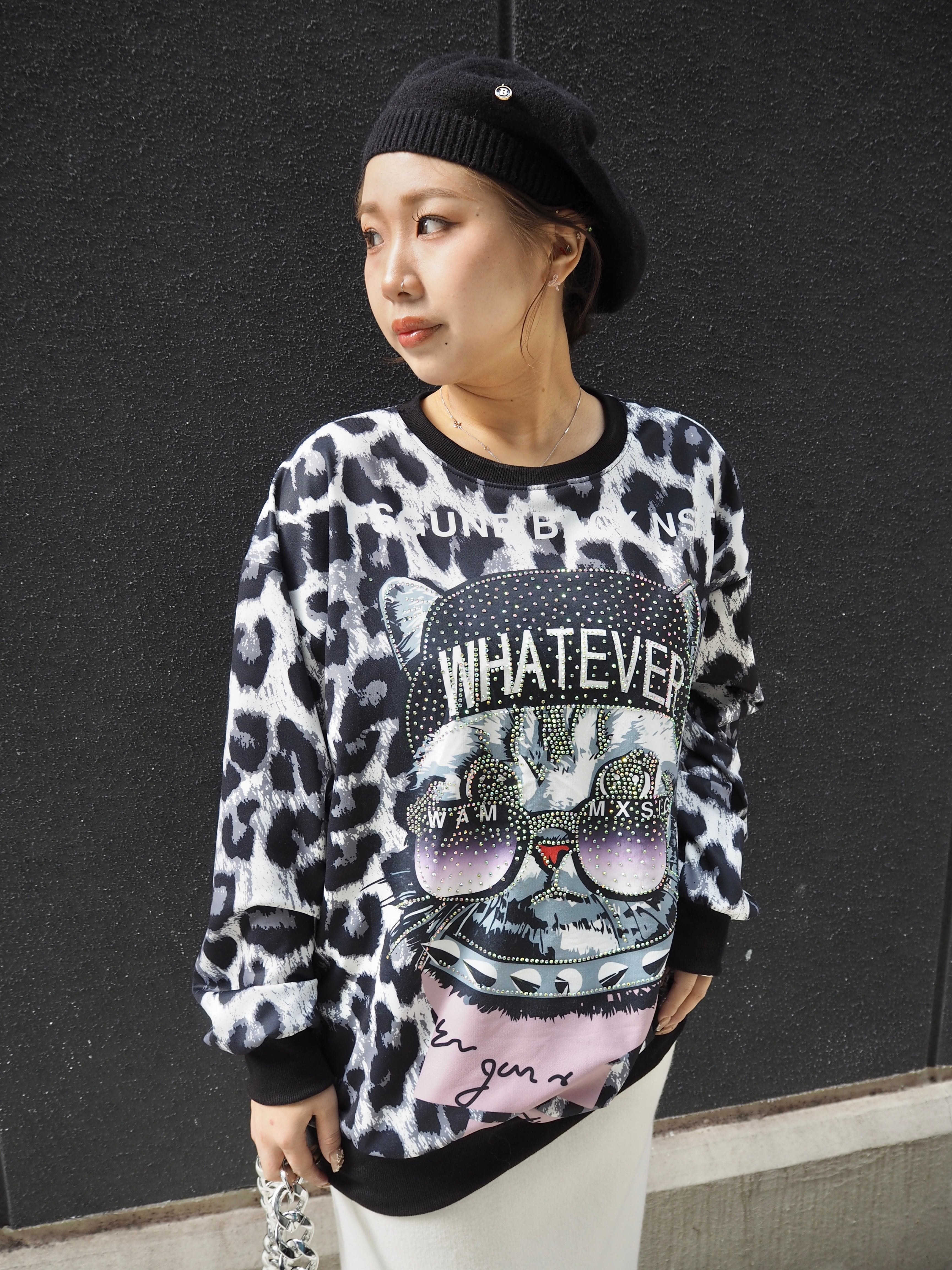 leopard print bijou design pullover tops トップス プルオーバー レオパード 豹柄 ひょう ビジュー キラキラ