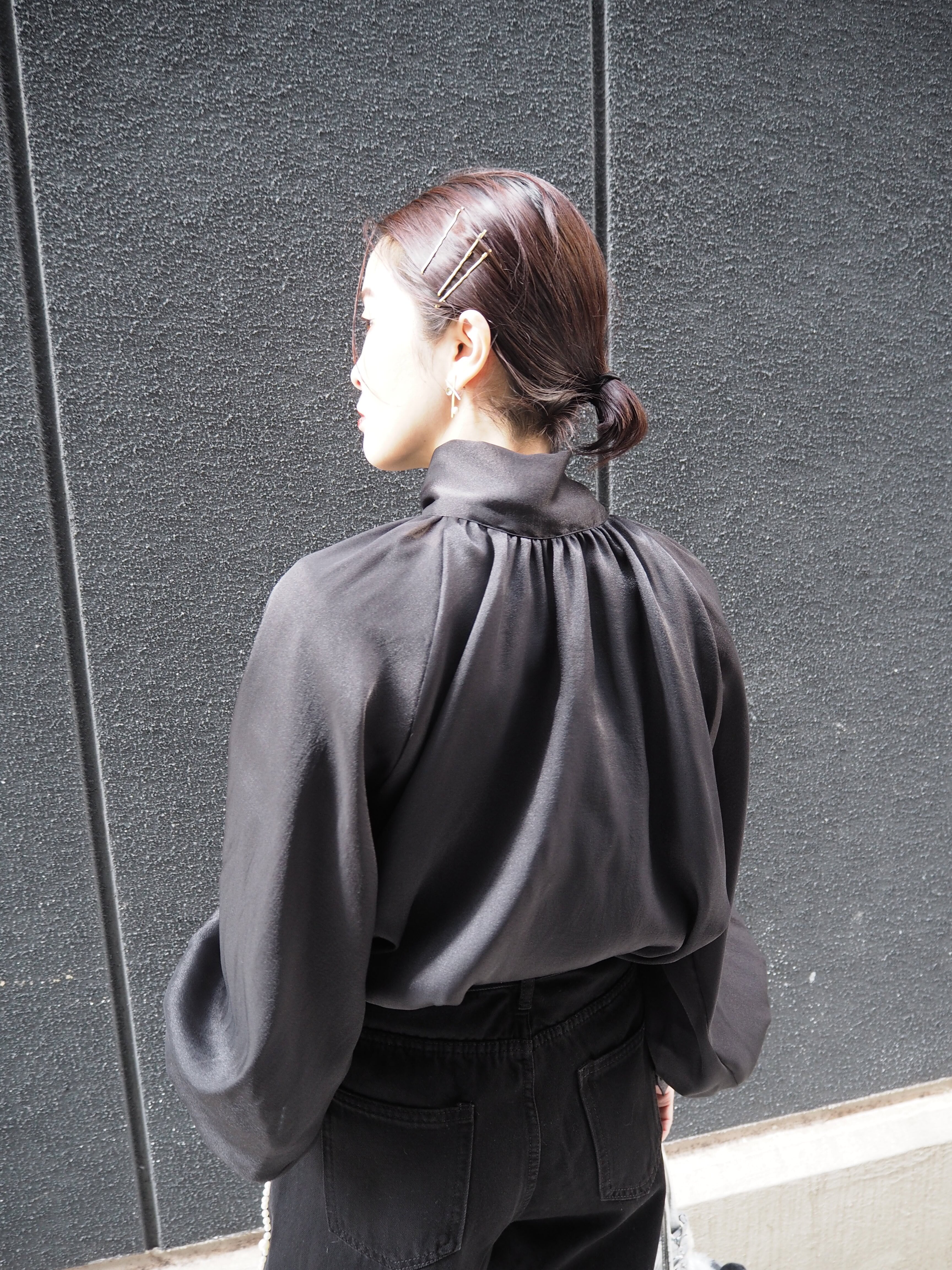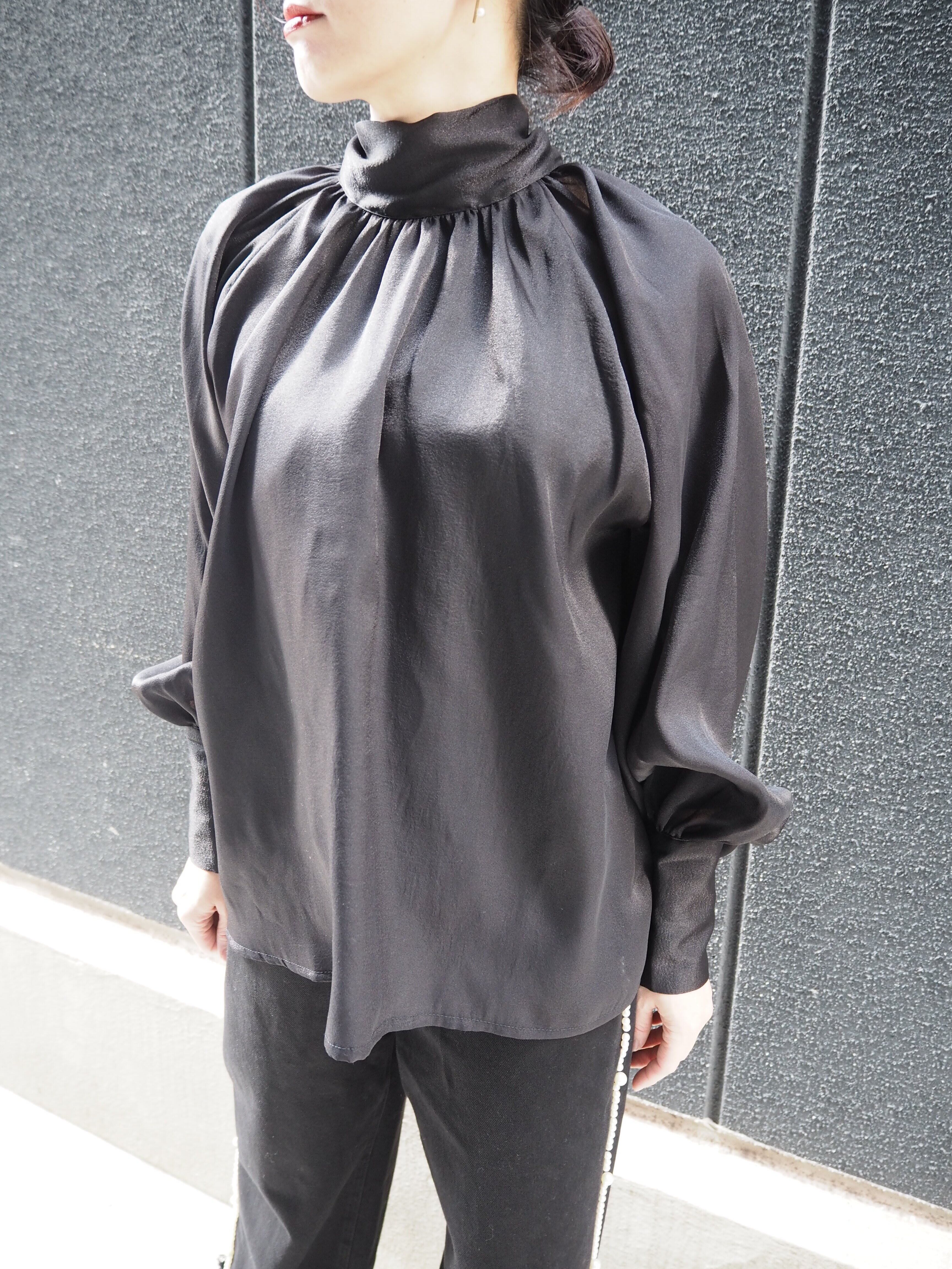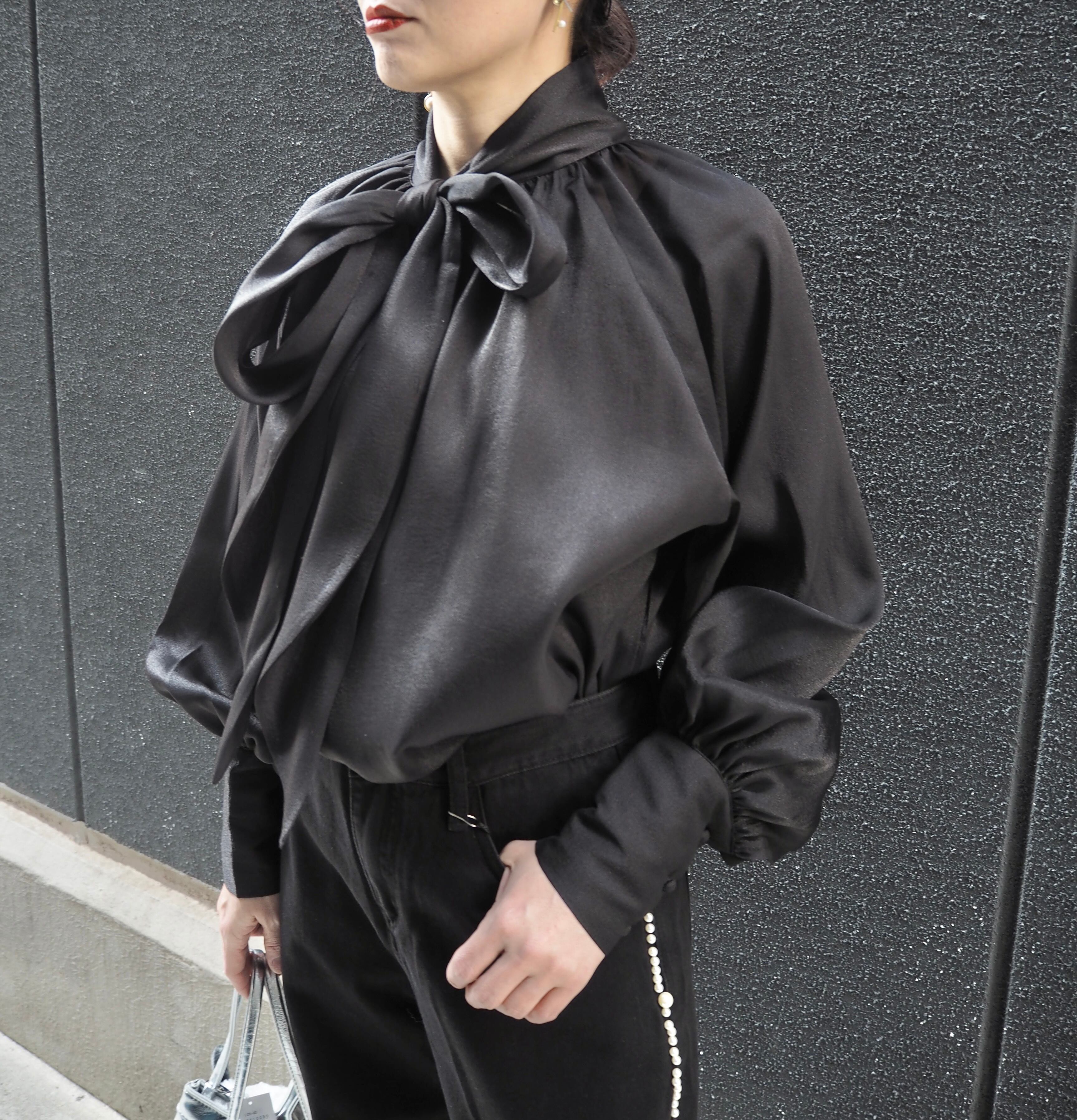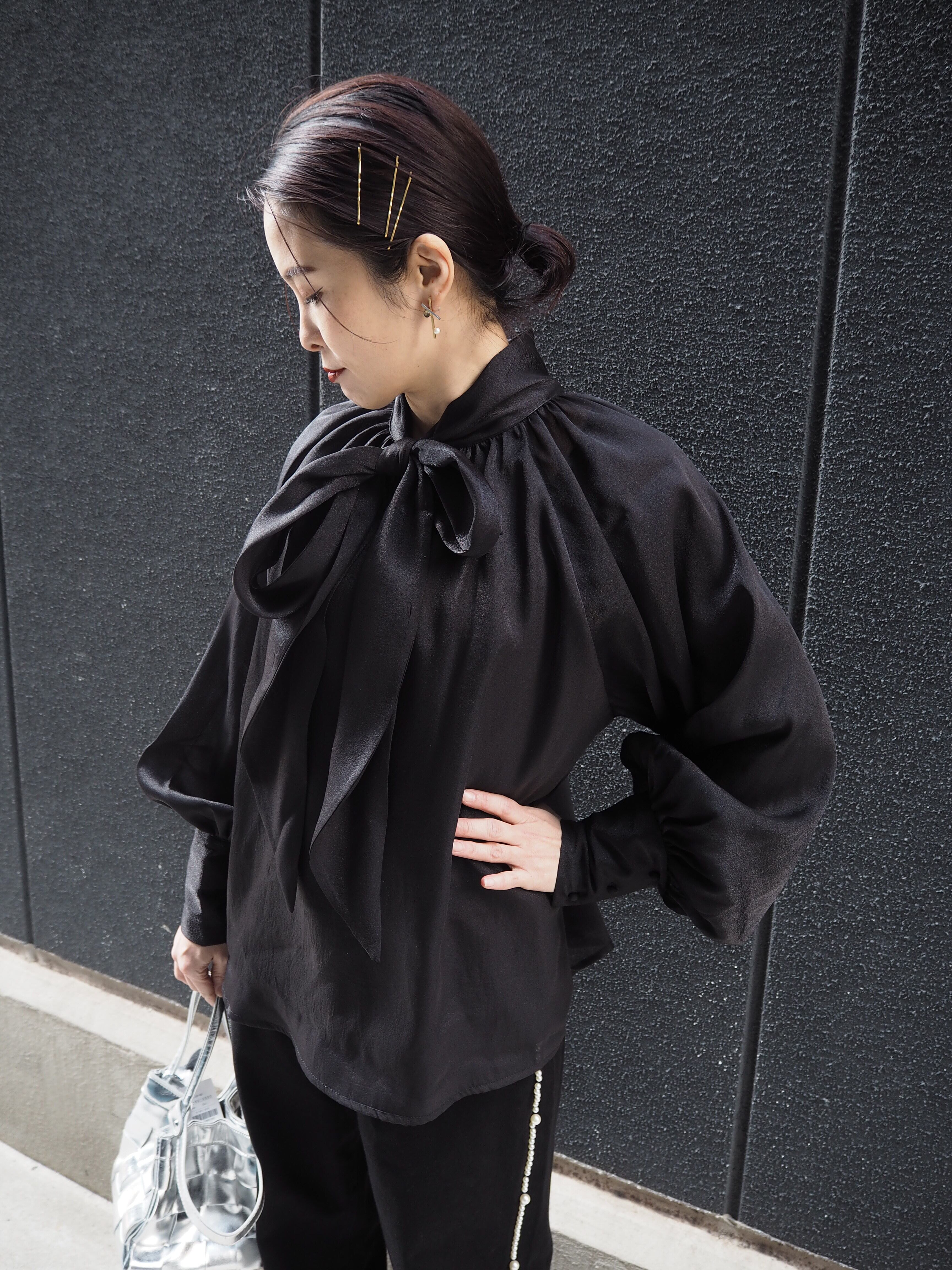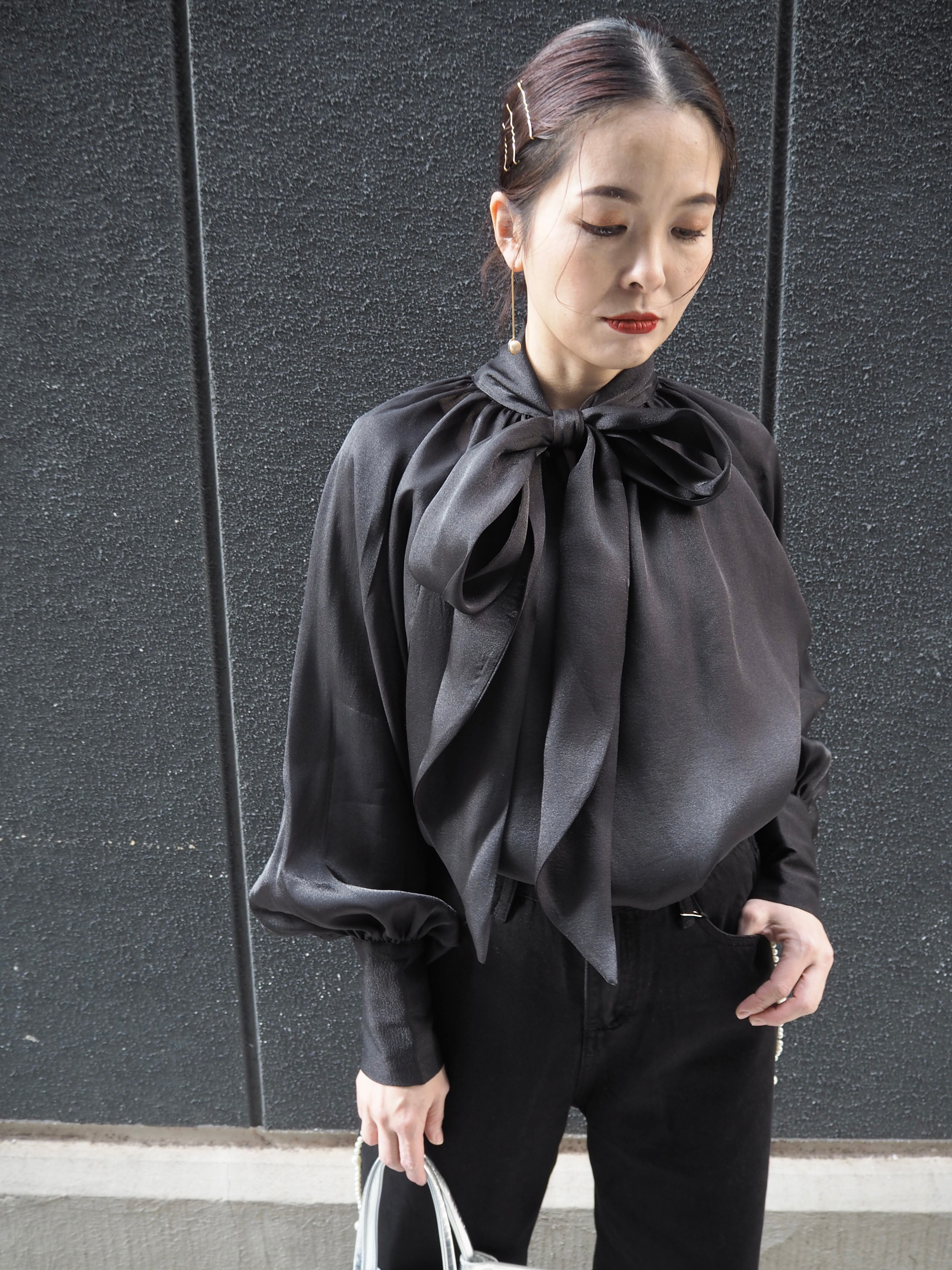 organdy ribbon neck design tops トップス オーガンジー リボン ブラック 黒 きれいめ