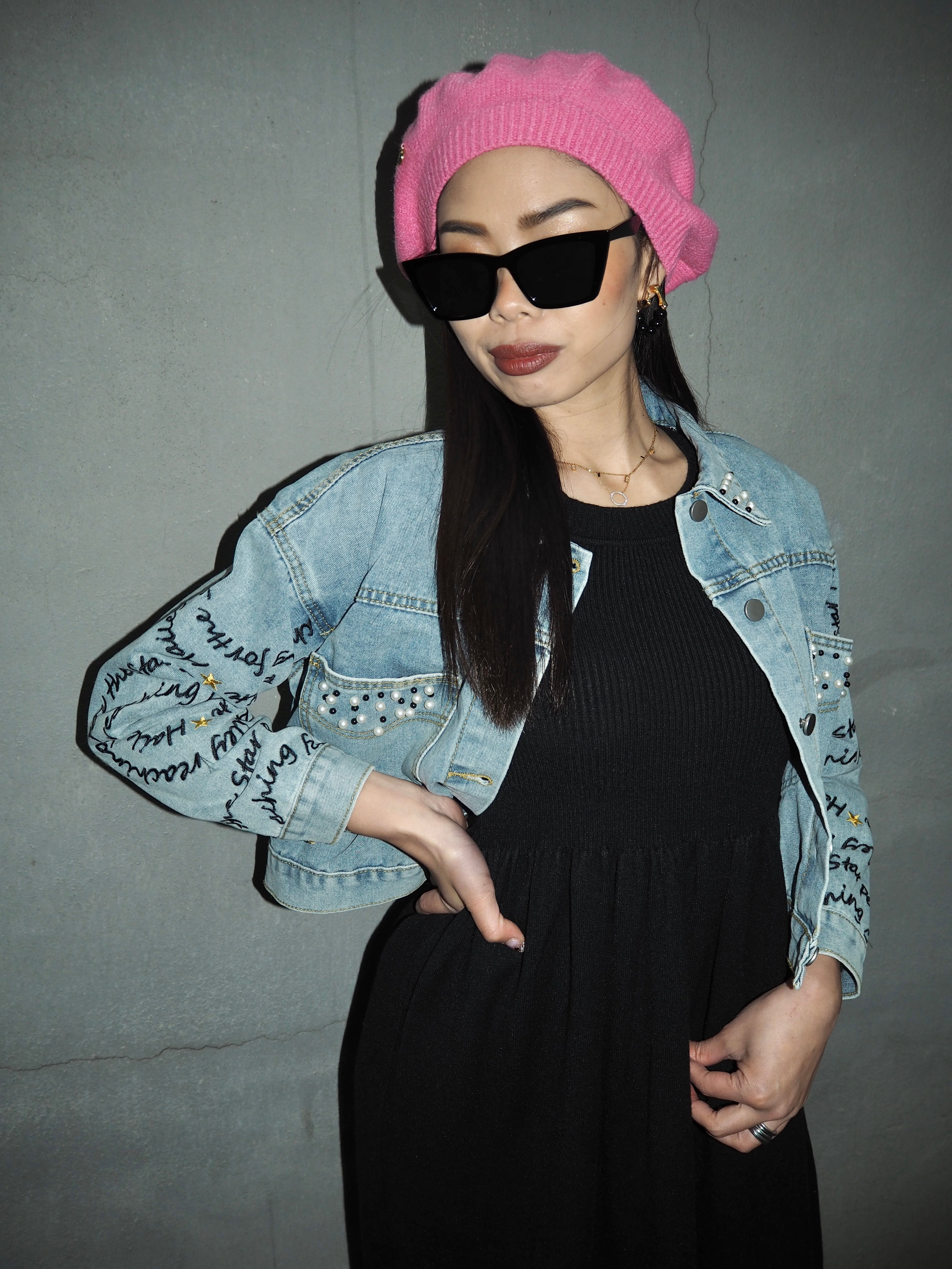 pearl × embroidery design denim short jacket ジャケット デニム Gジャン ショート丈 パール 刺繍