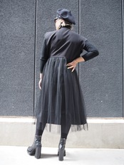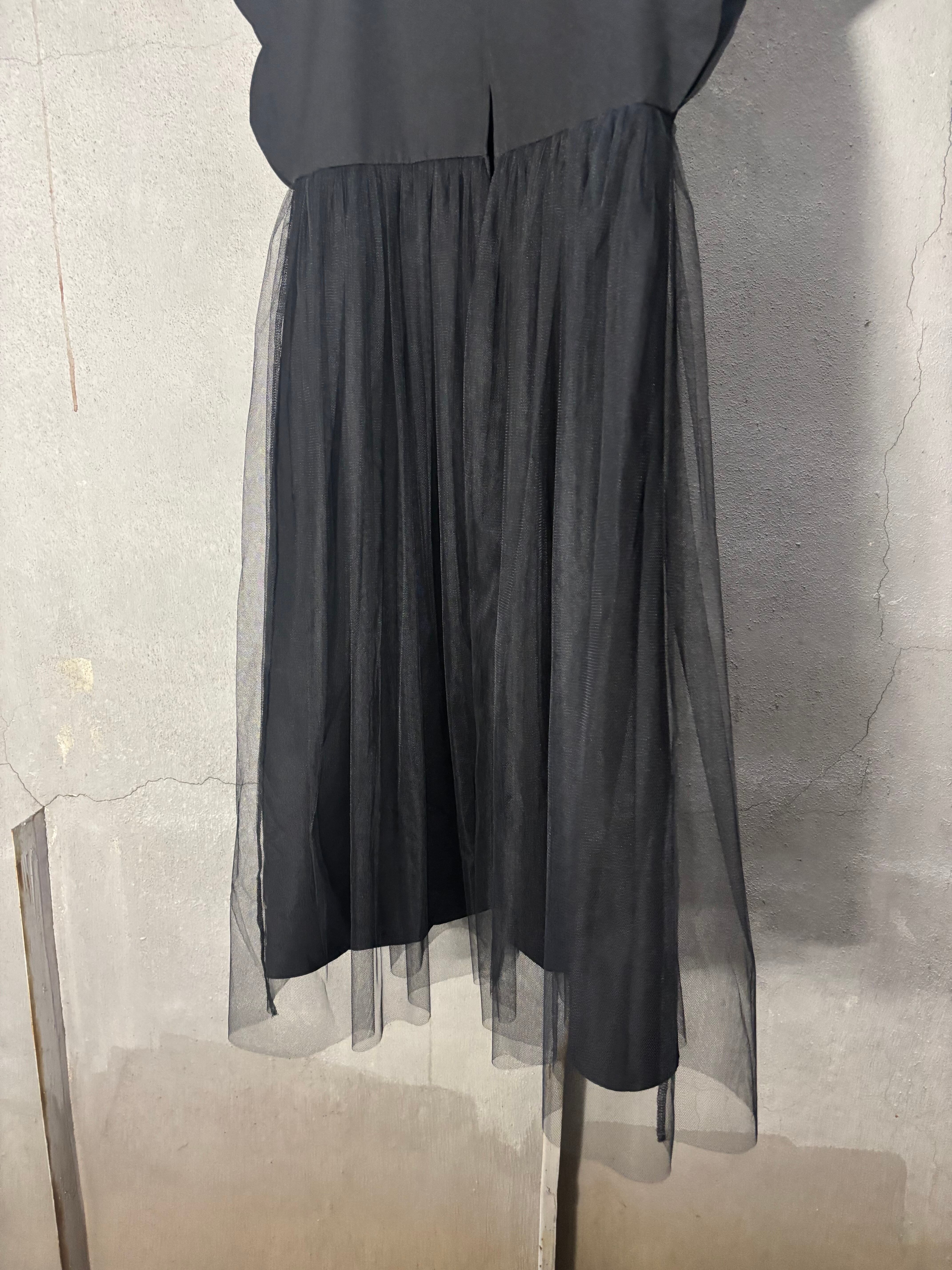 ウエストから下には軽やかなチュールがドッキングされ、