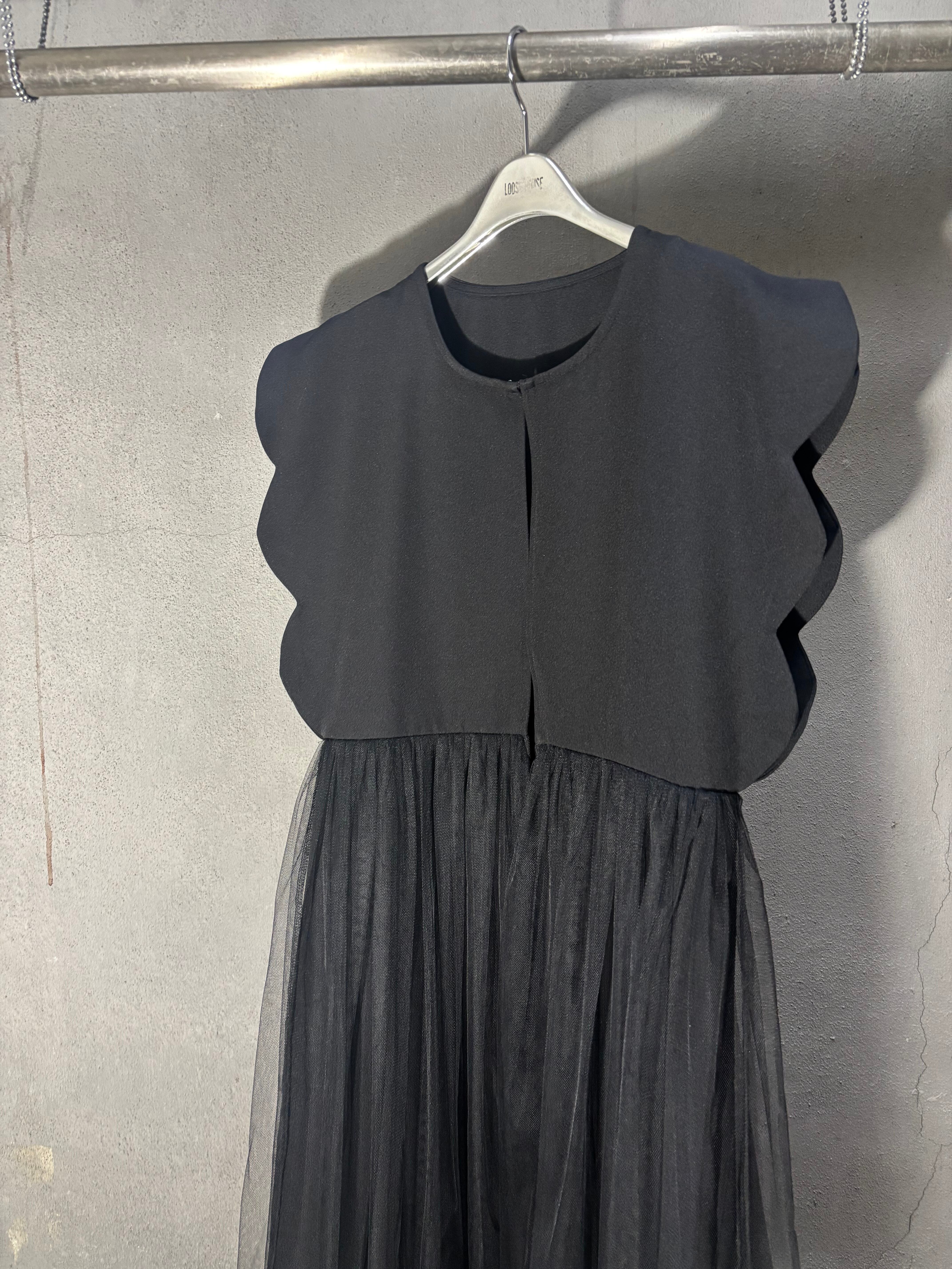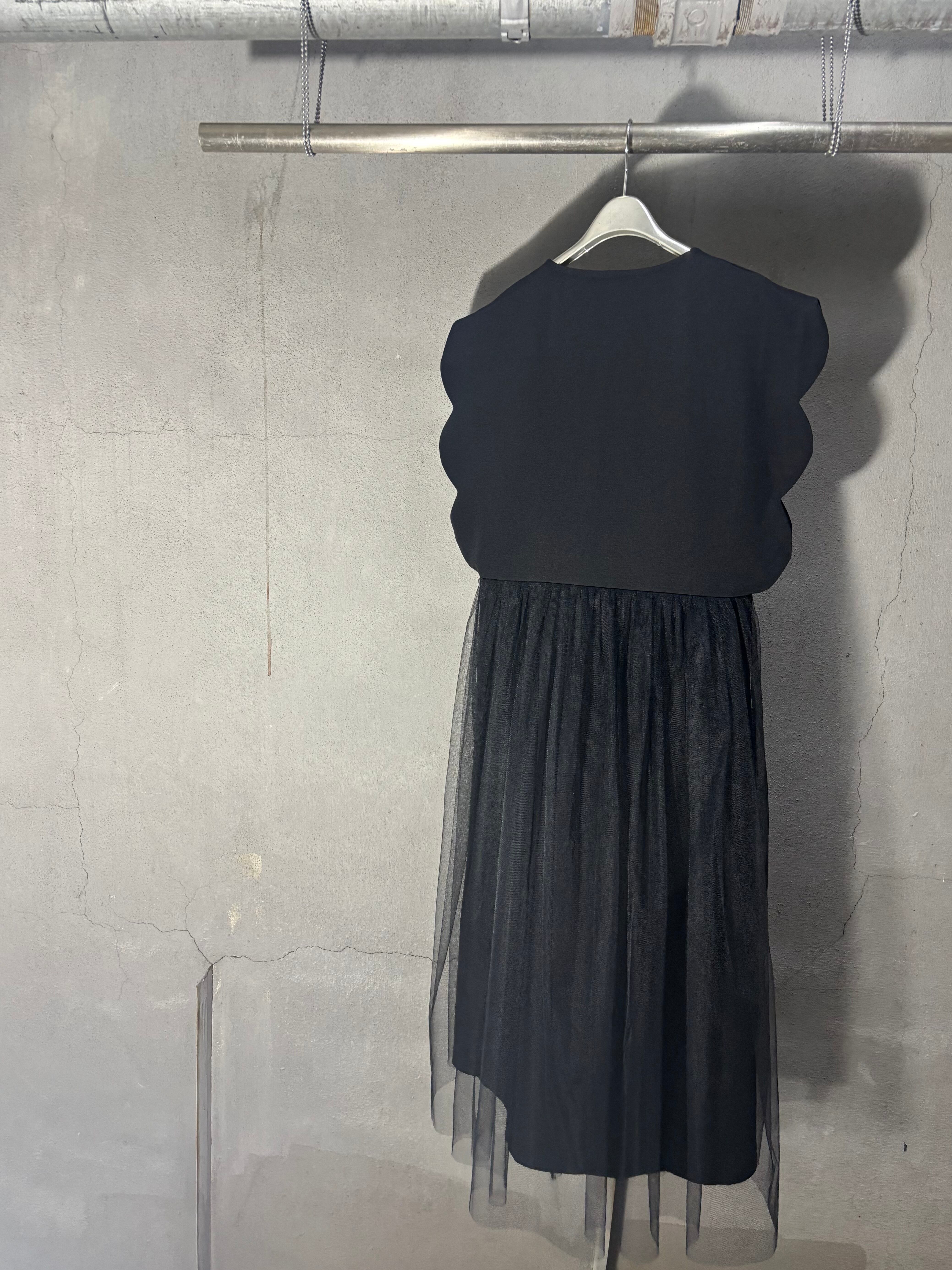 tulle cover design long vest ベスト ジレ スカラ チュール カバー ブラック 黒 重ね着