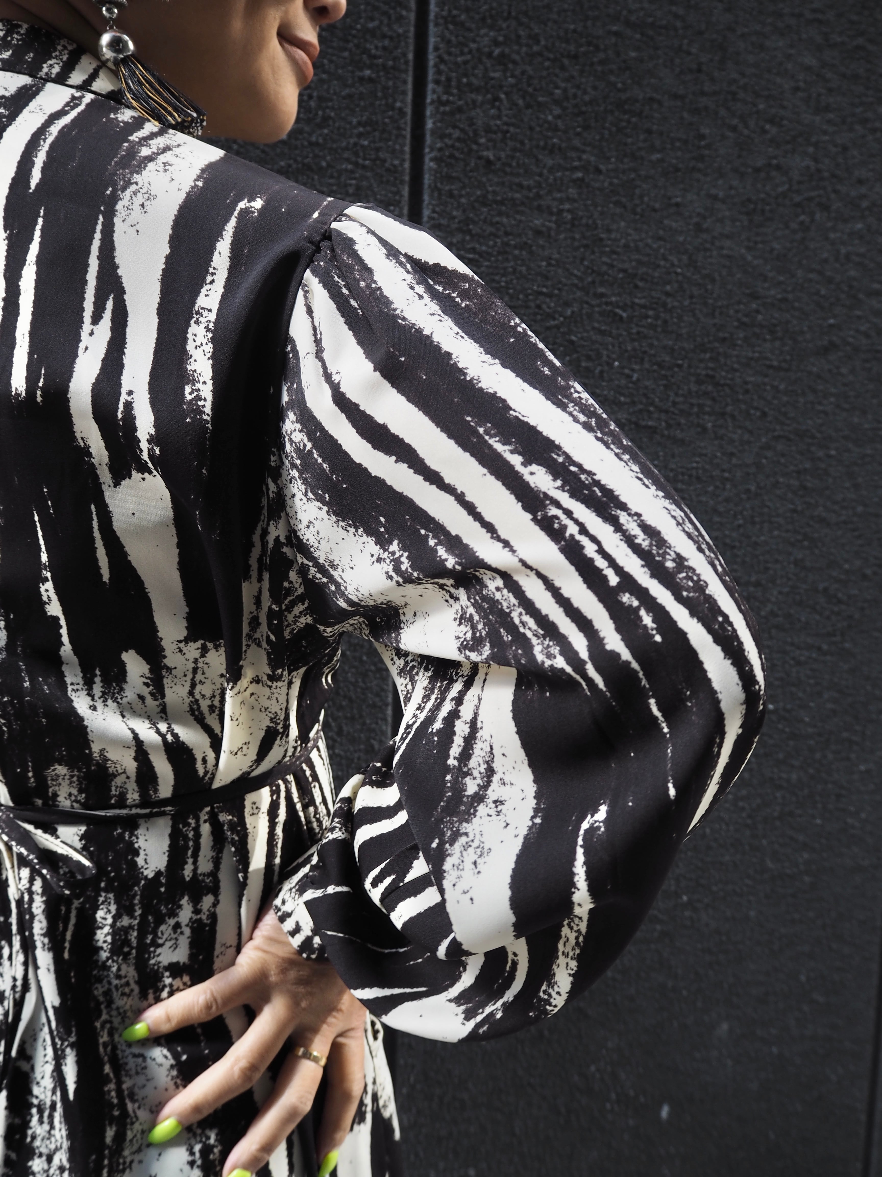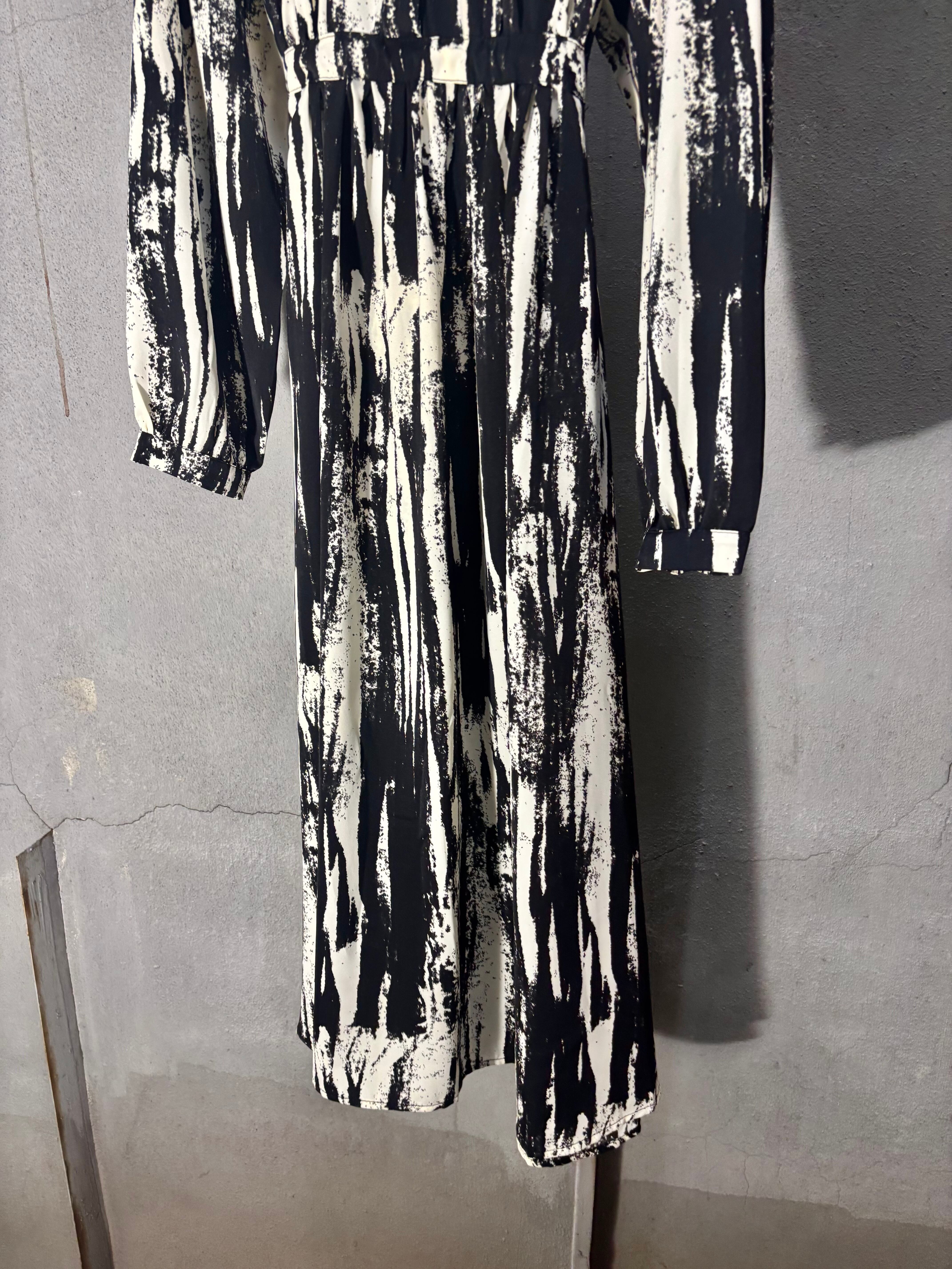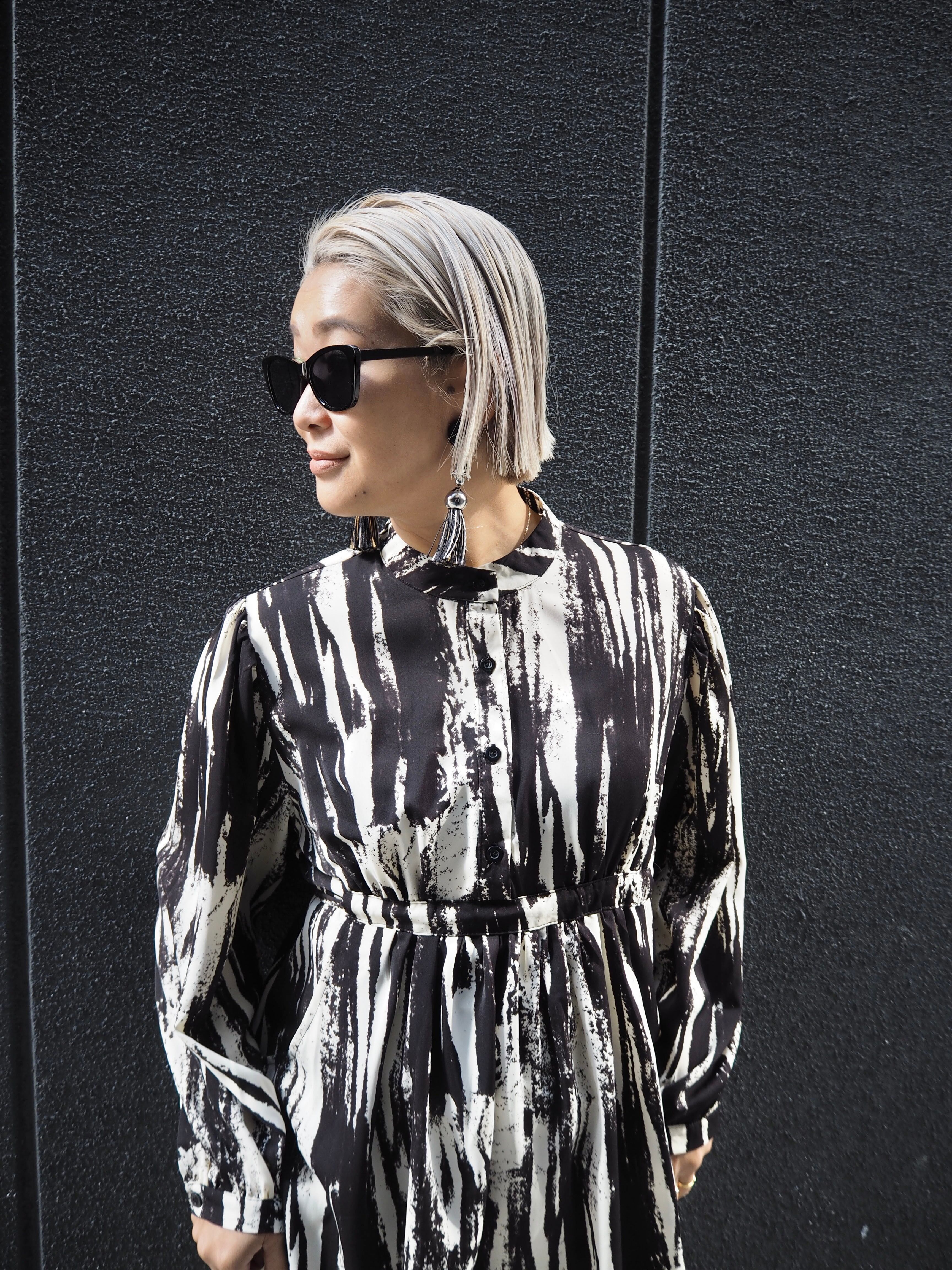 monochro print change design one-piece ワンピース ワンピ モノクロ ウエスト切替 柄ワンピ