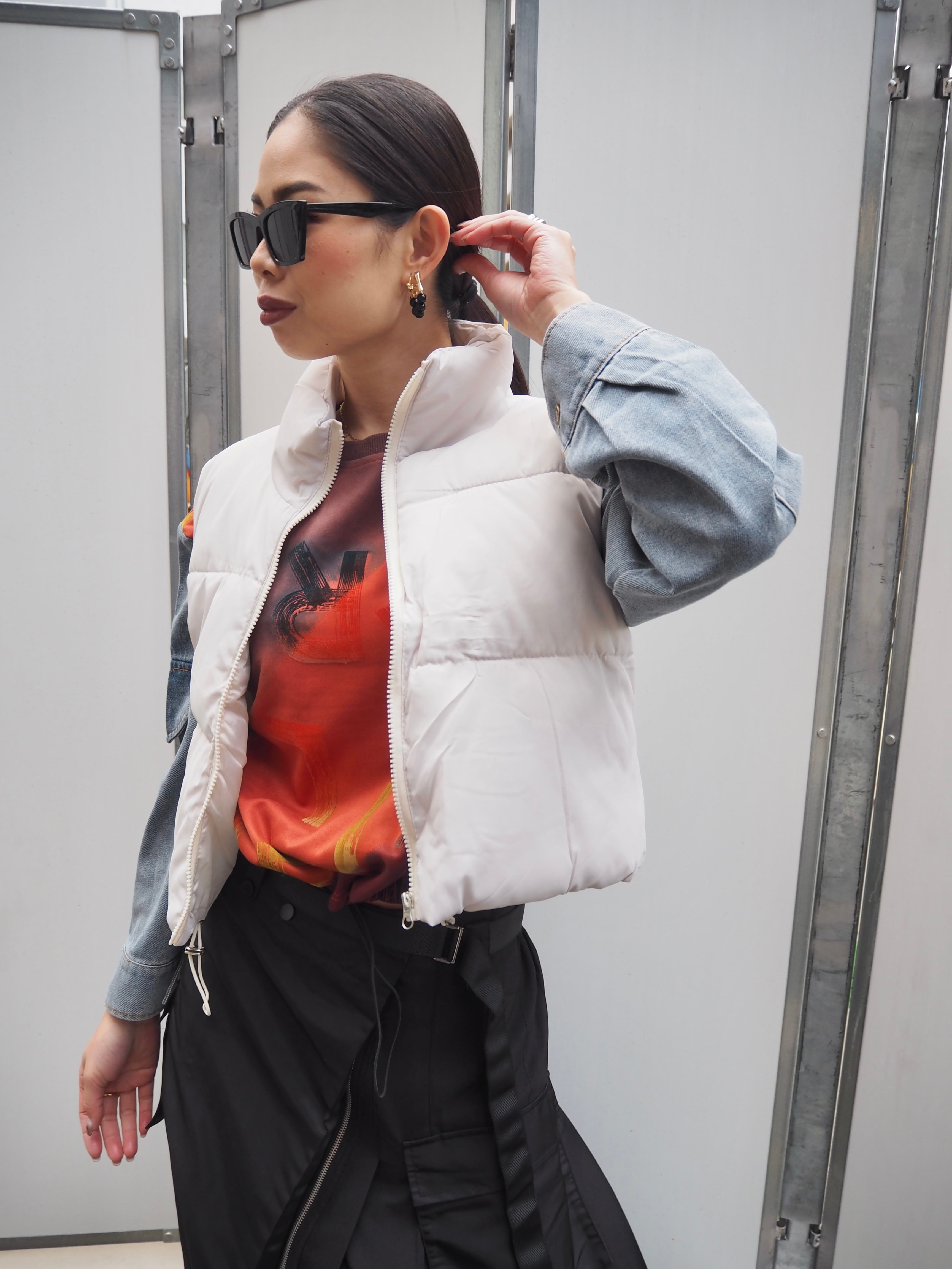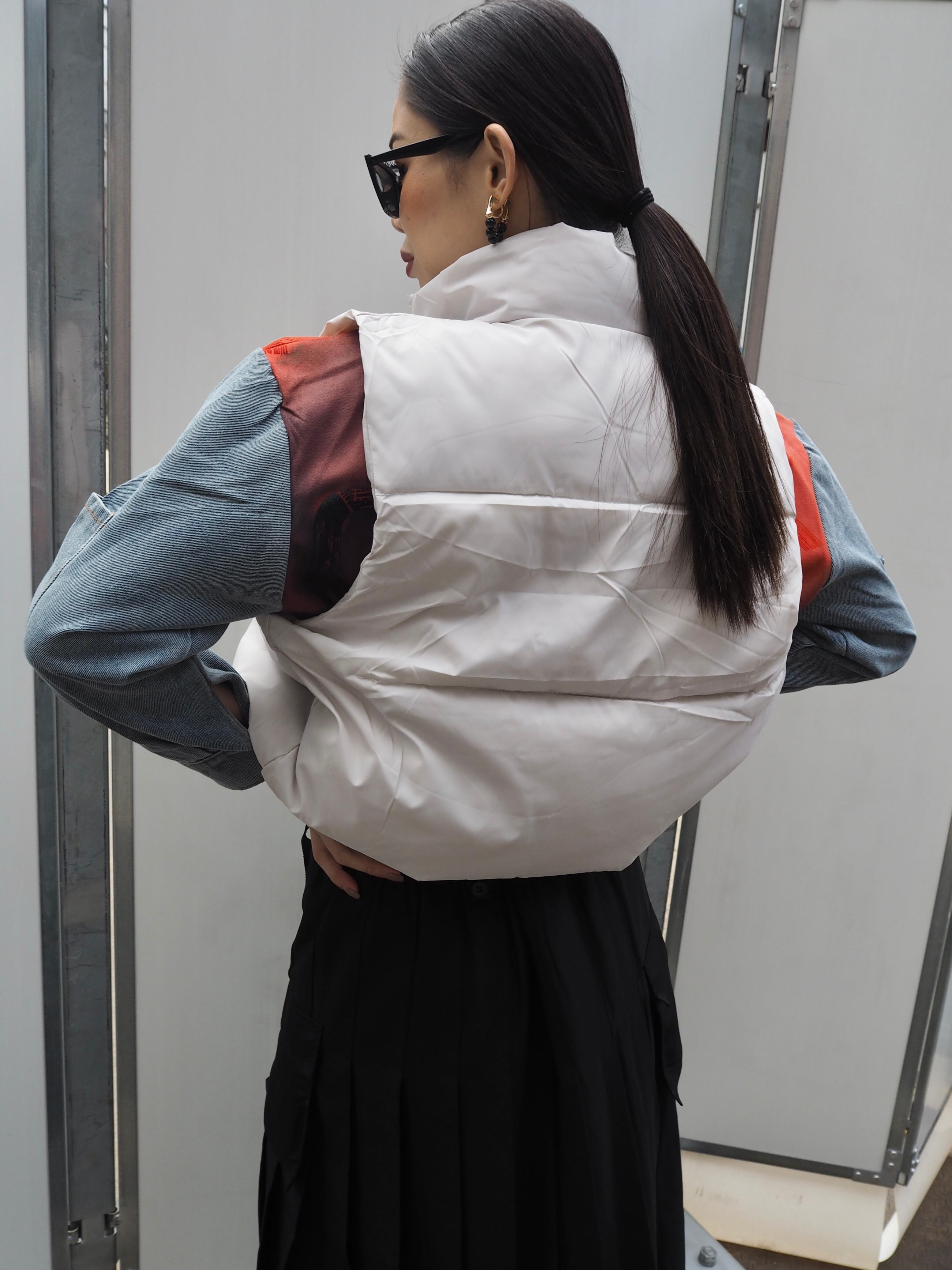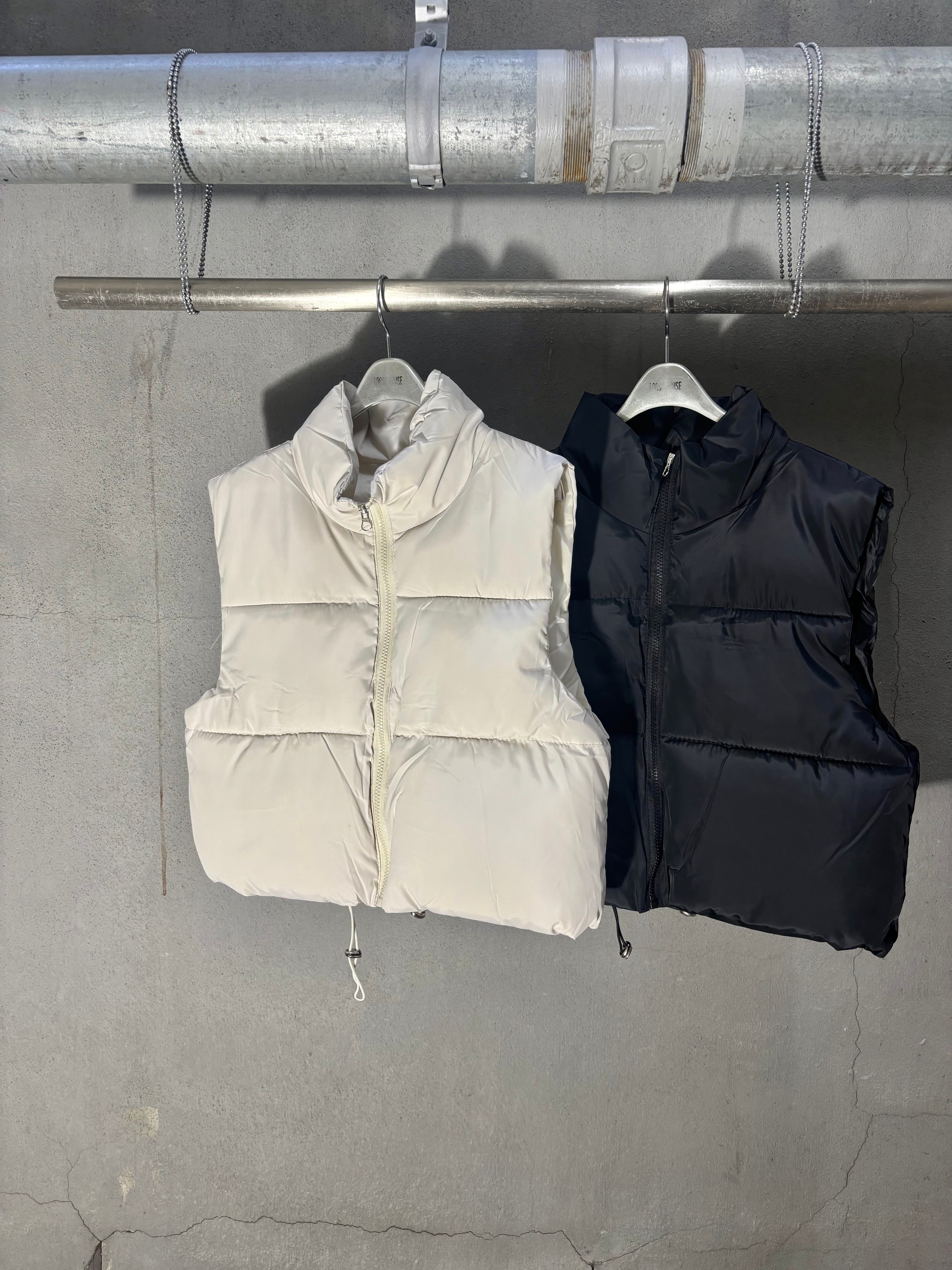 padded quilting short vest ベスト 中綿 キルティング スタンドネック ショート丈