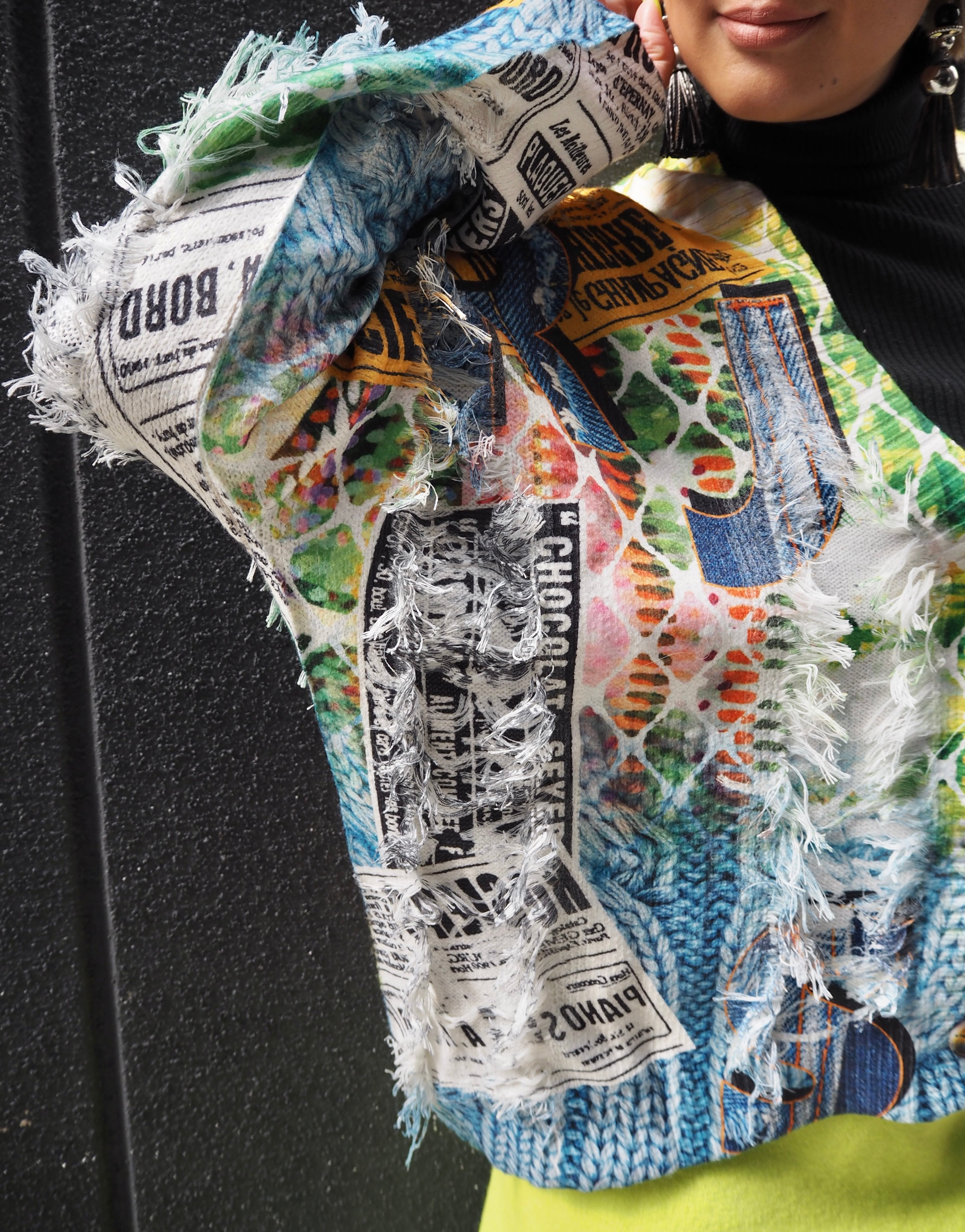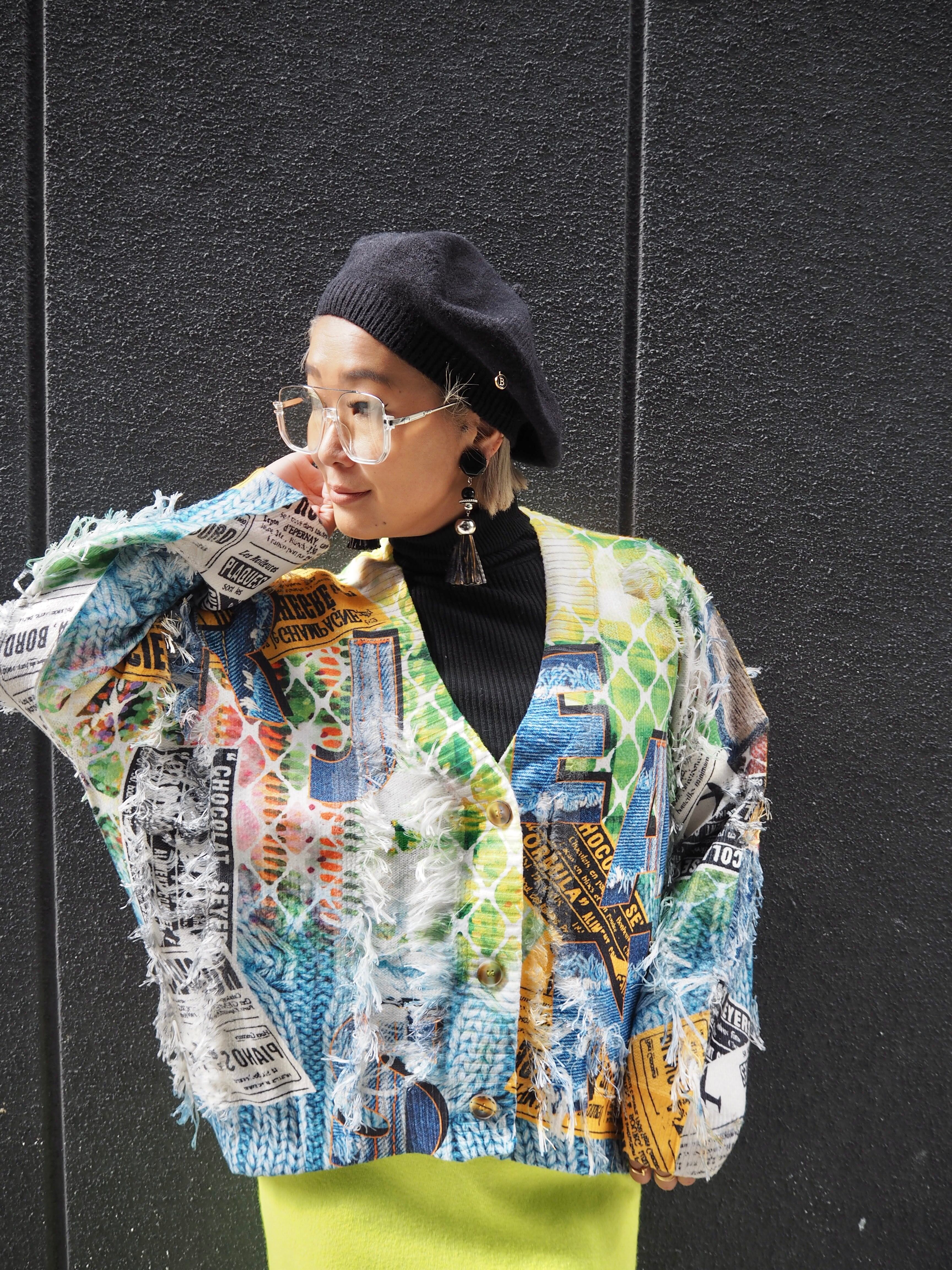 ダメージ加工とミックスプリントが魅力のニットカーディガンが登場!